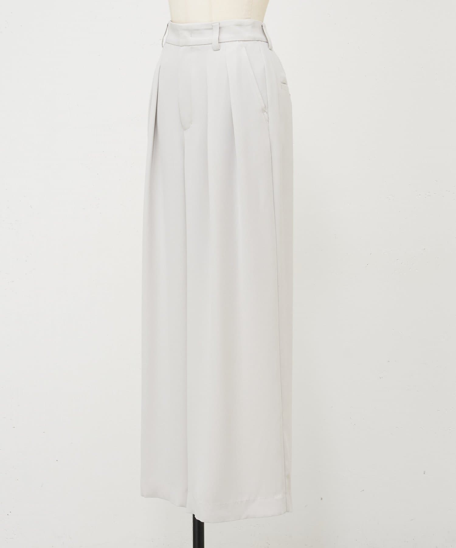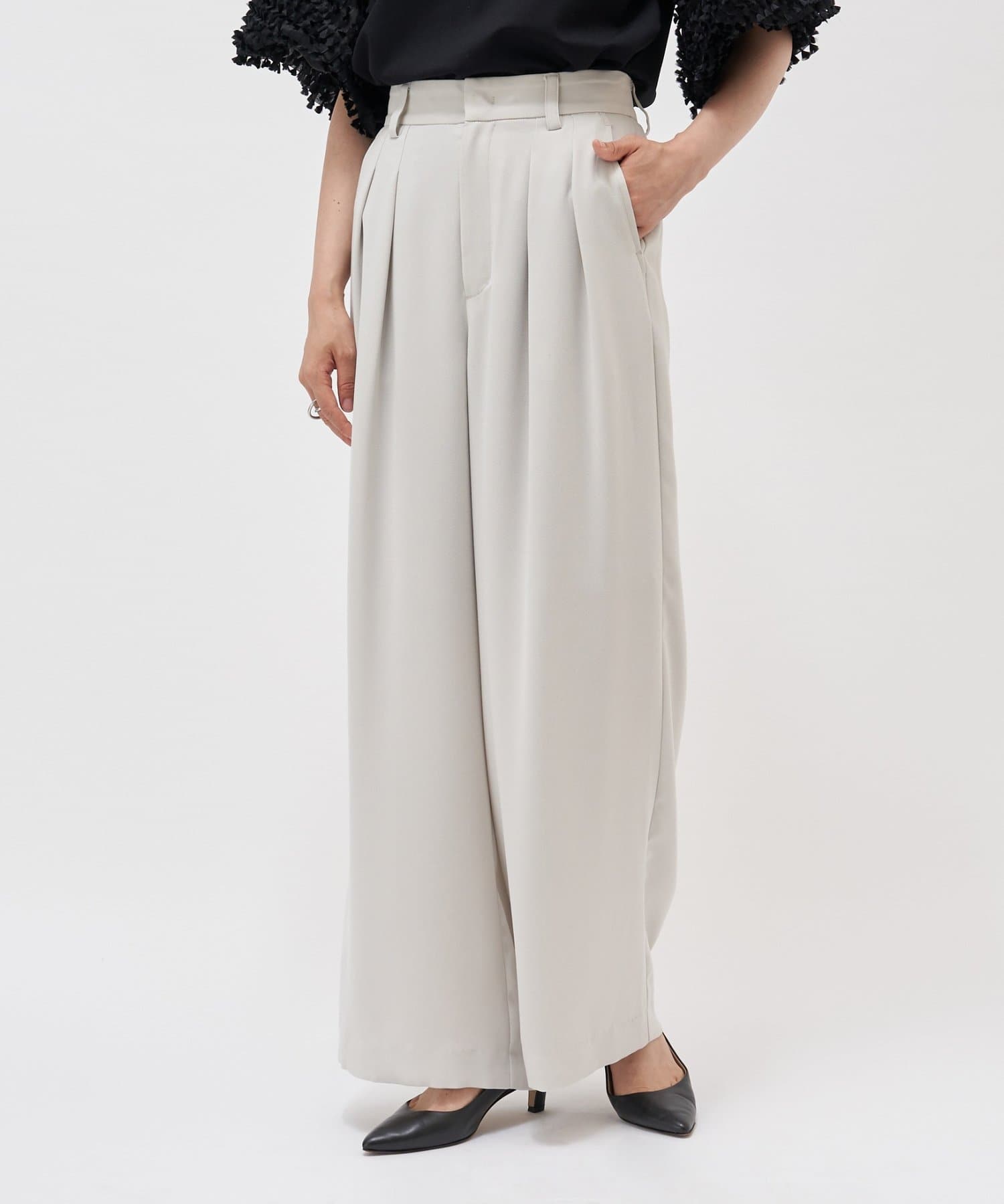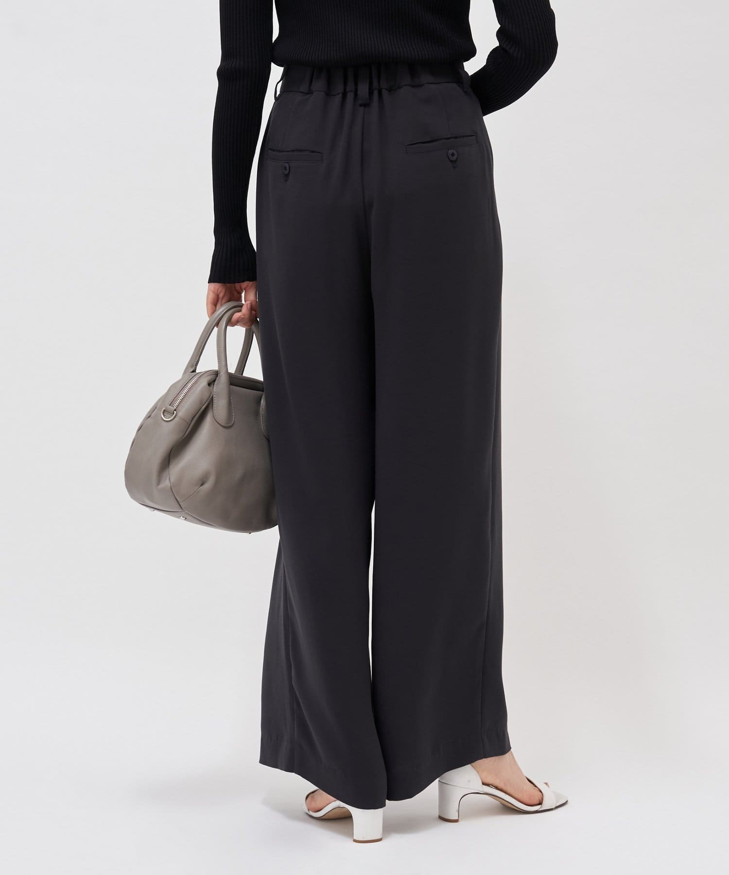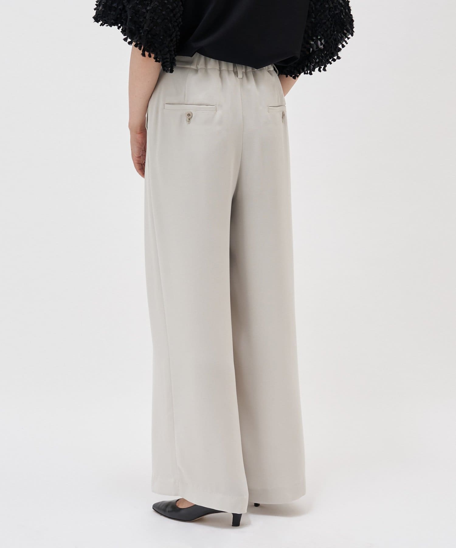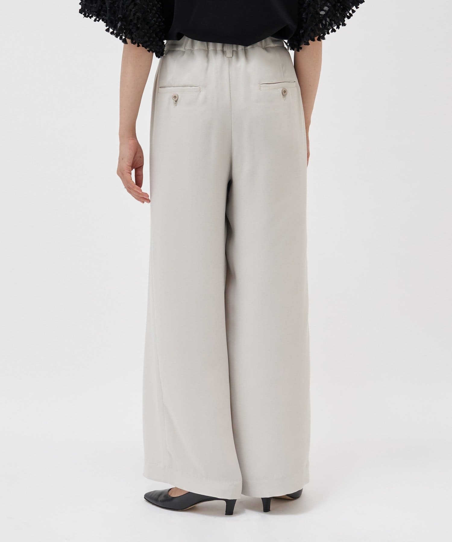 上品な光沢感と落ち感のあるバックサテン素材を使用したワイドパンツ。