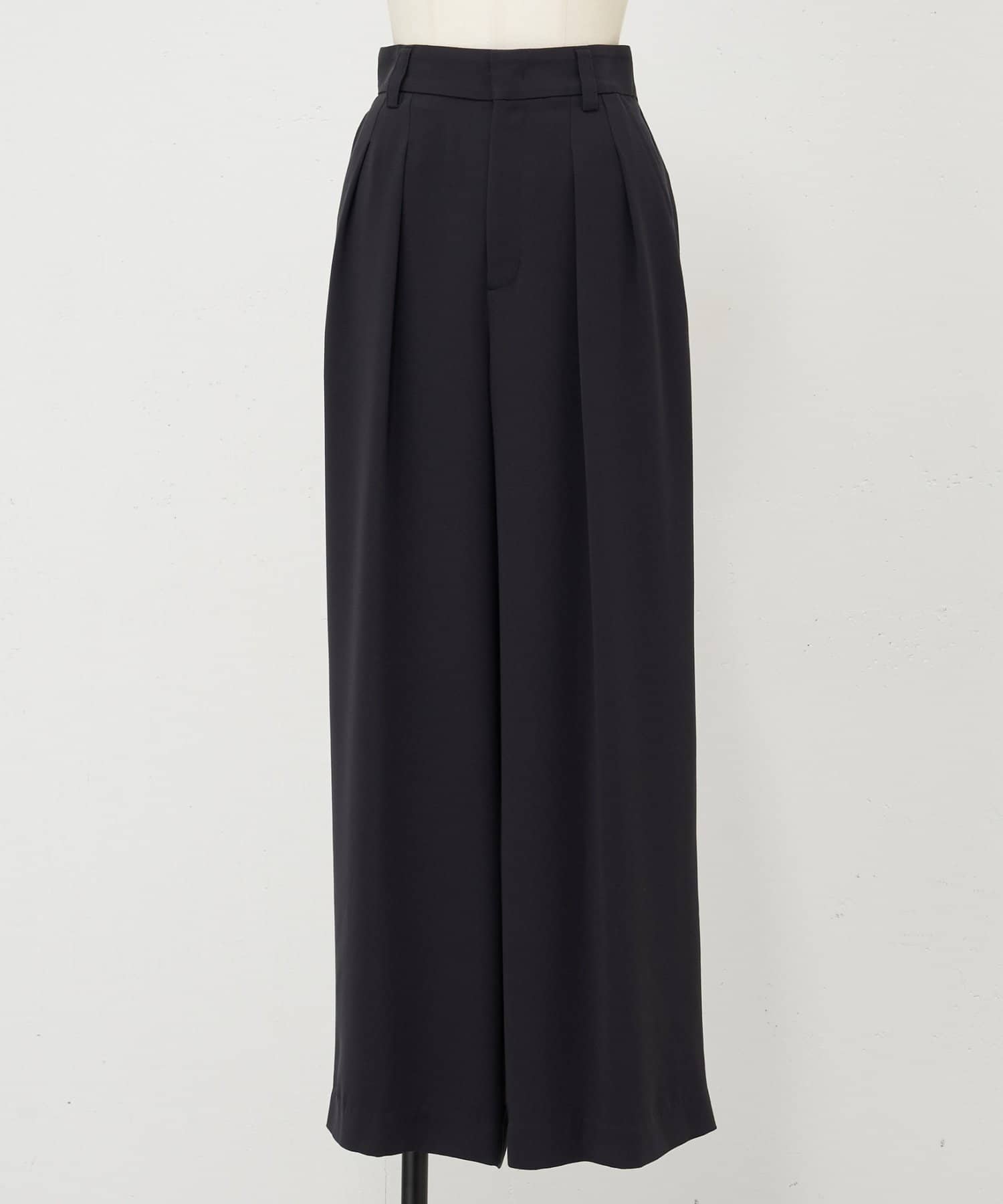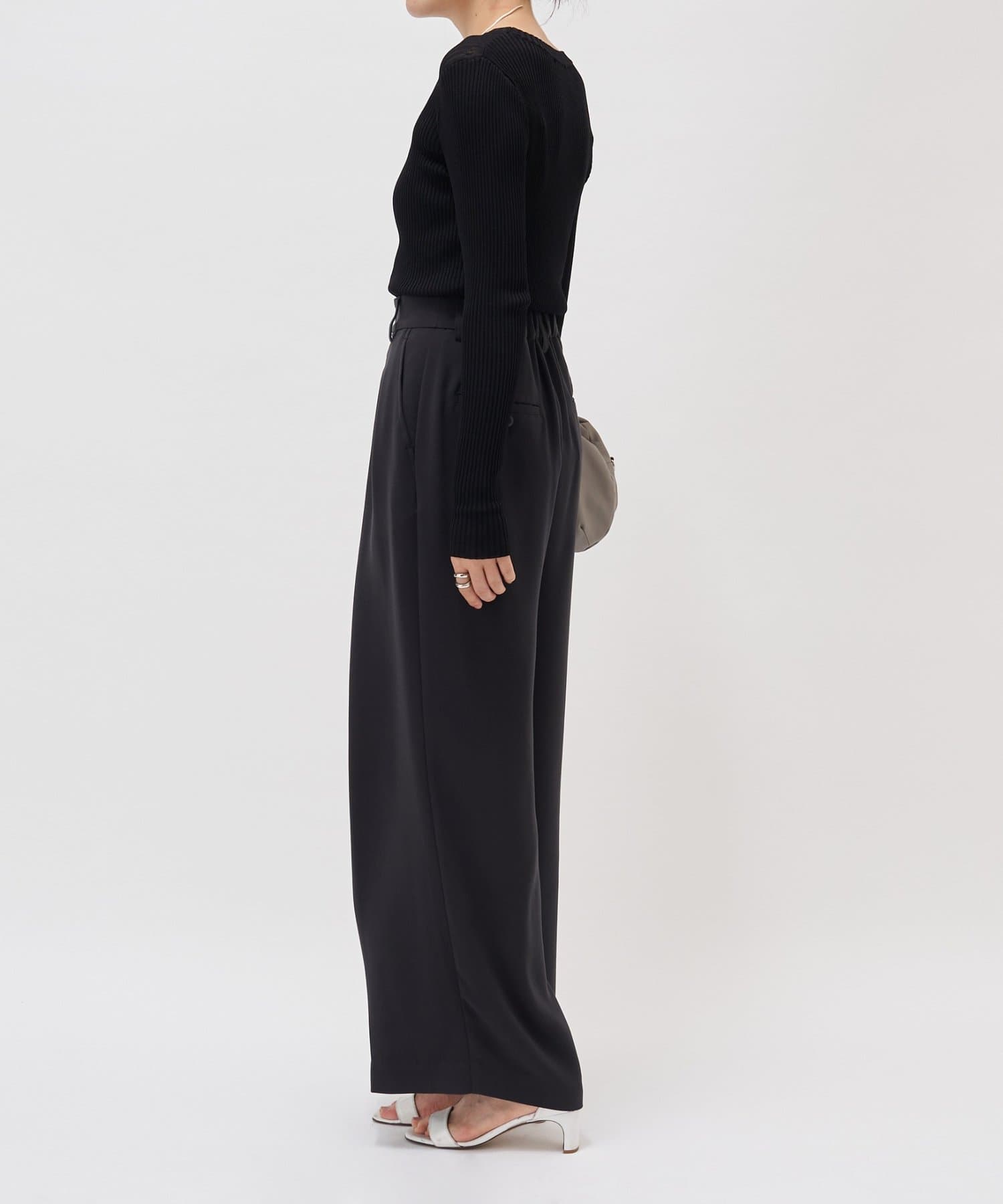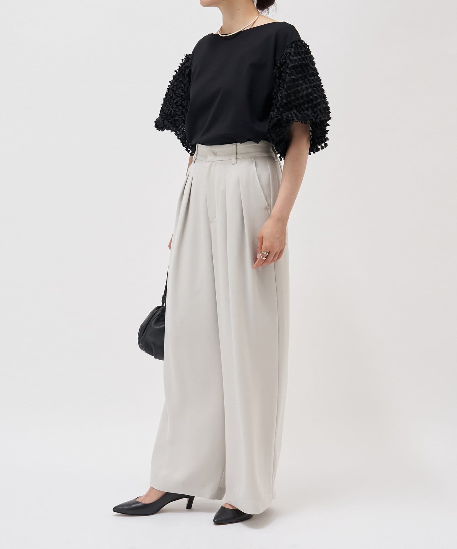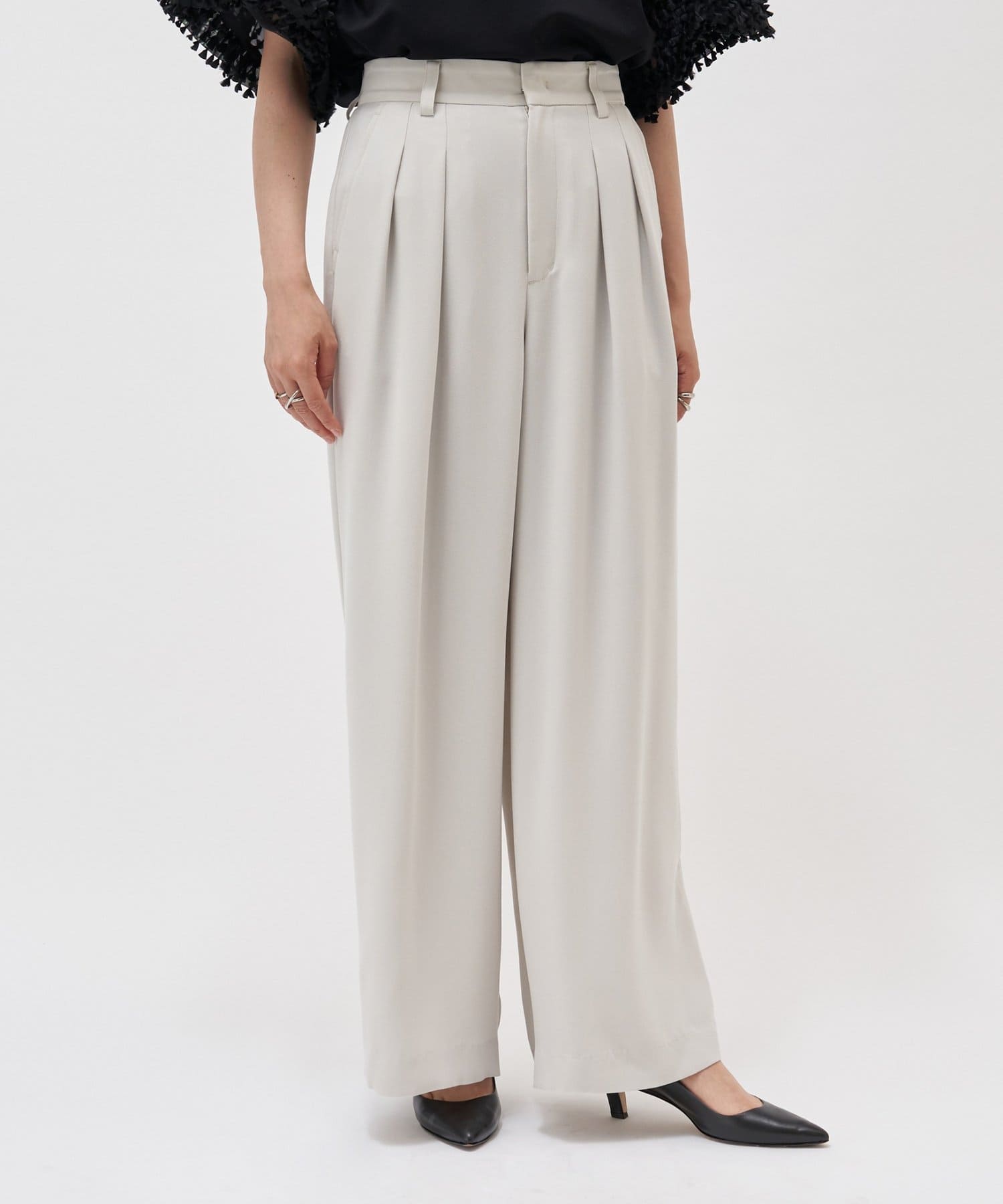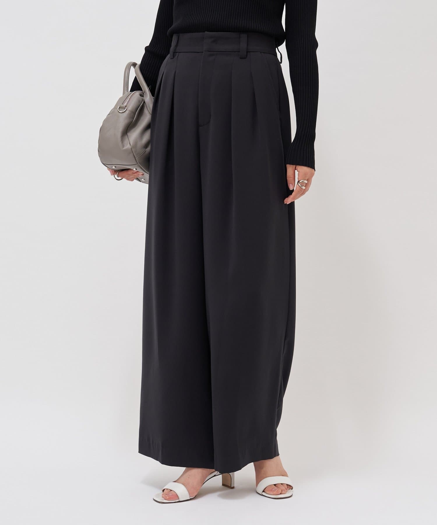 上品な光沢感と落ち感のあるバックサテン素材を使用したワイドパンツ。