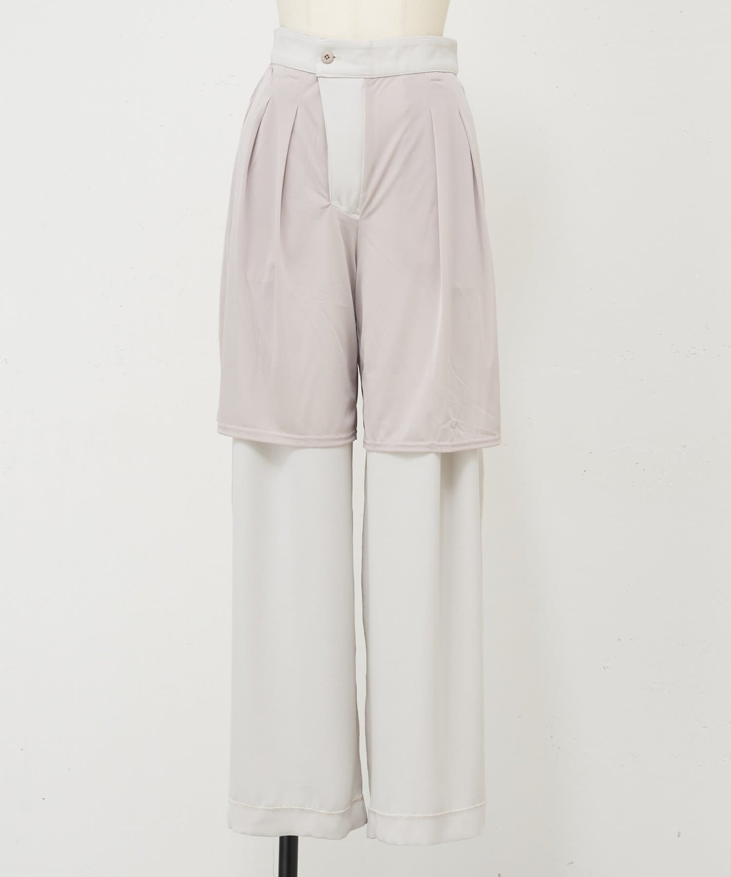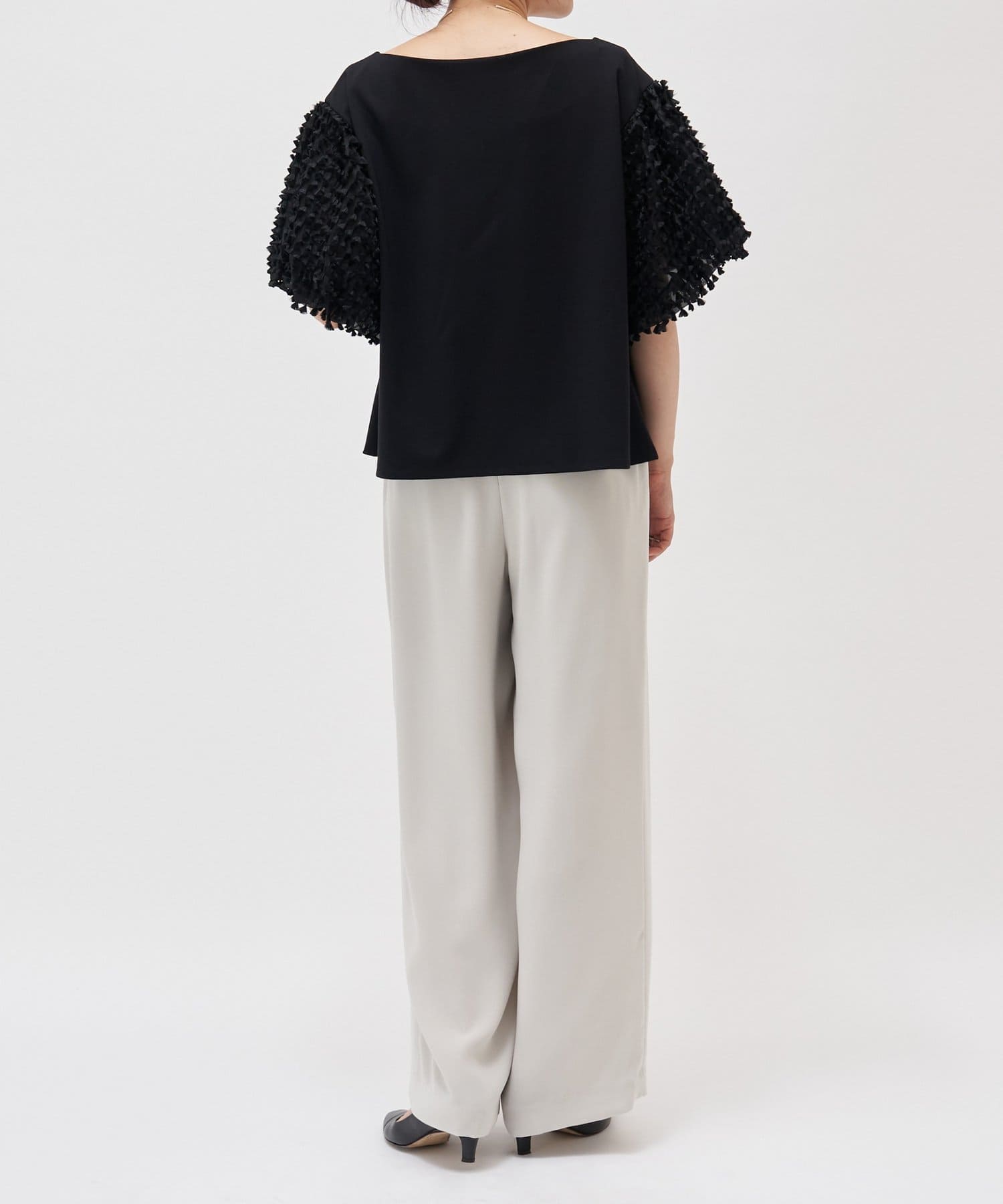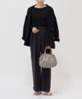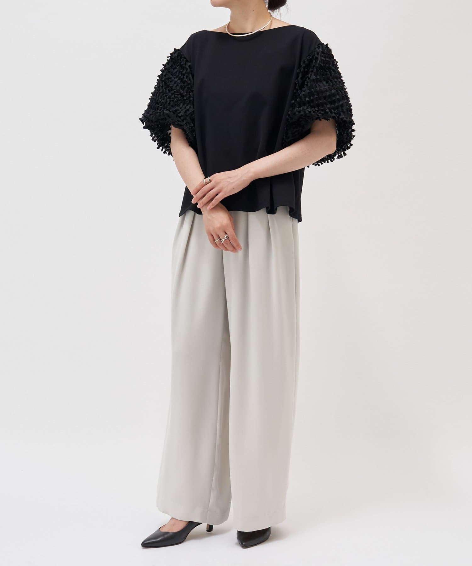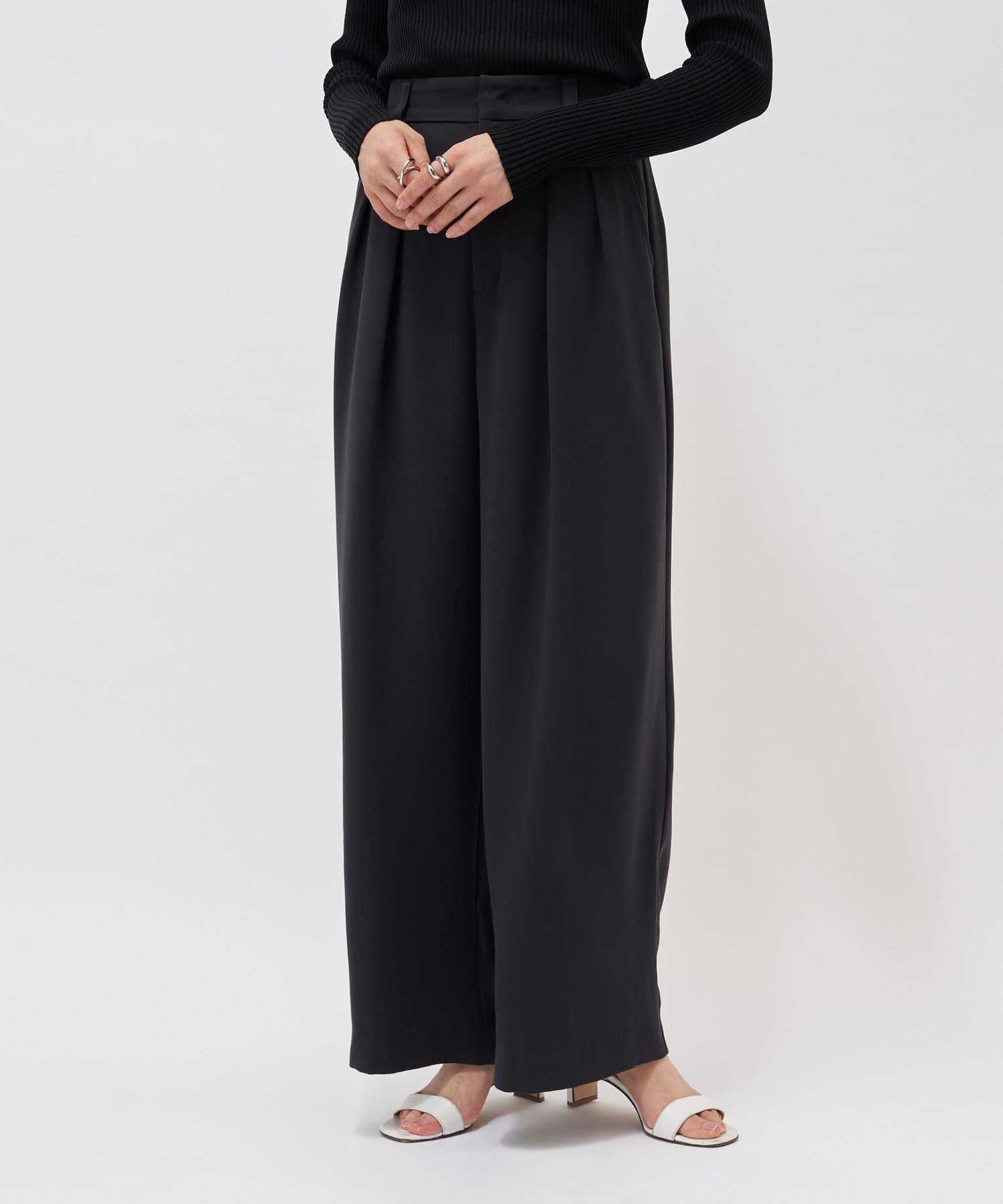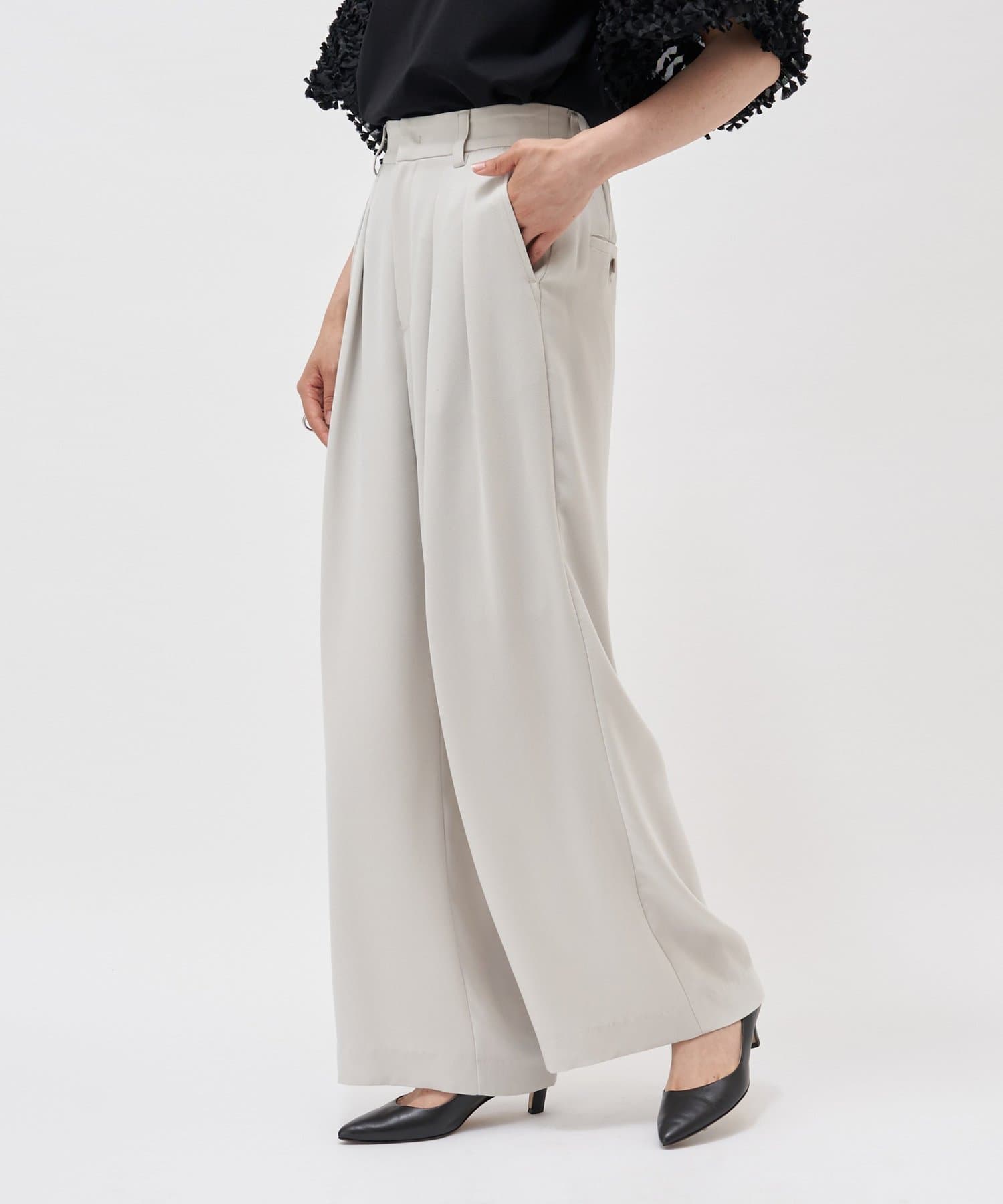 上品な光沢感と落ち感のあるバックサテン素材を使用したワイドパンツ。
