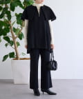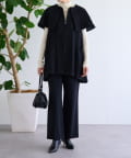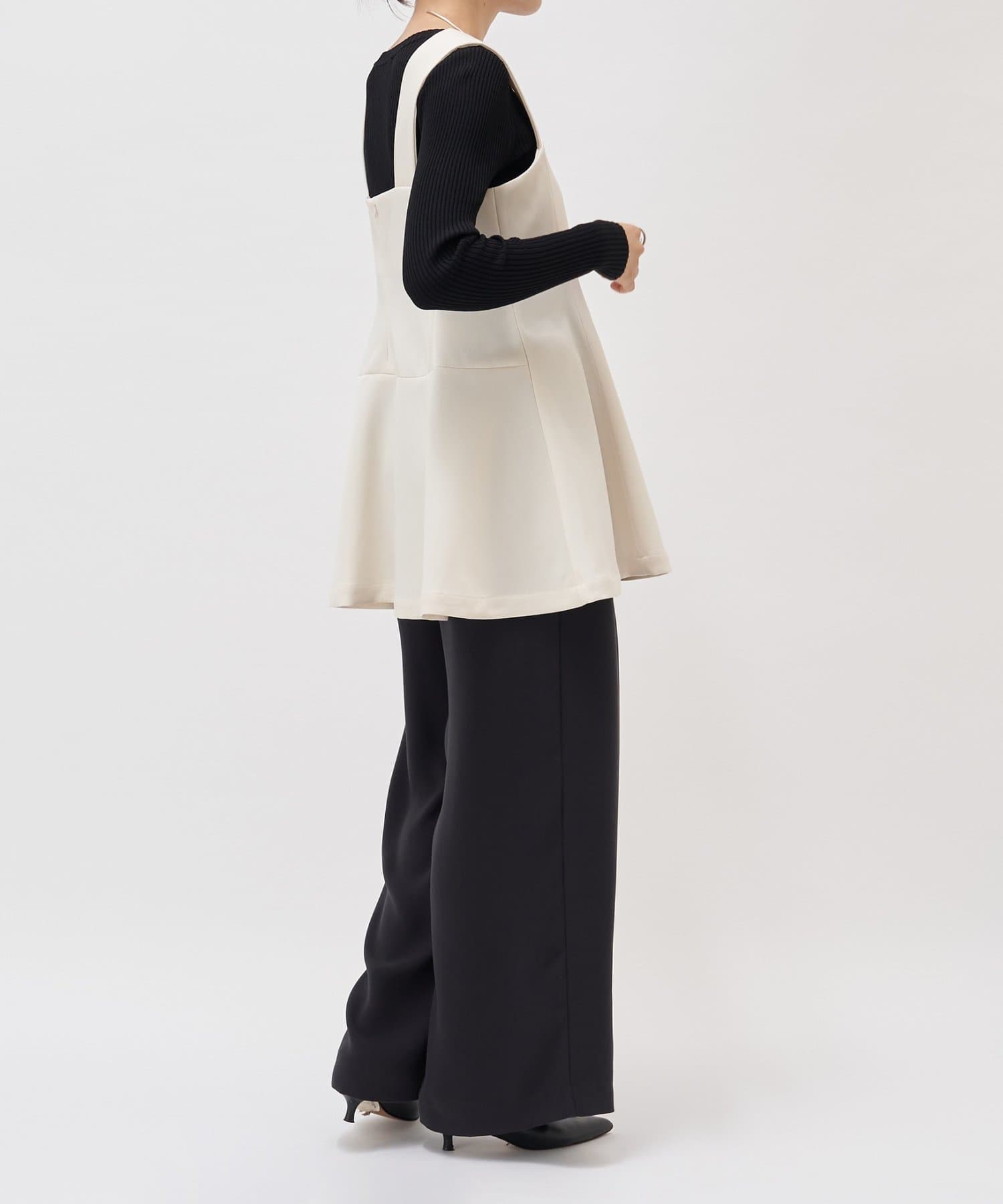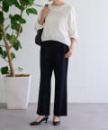 ウエストまわりはすっきりと仕上げ、トップスインもきれいに決まるシルエットです。