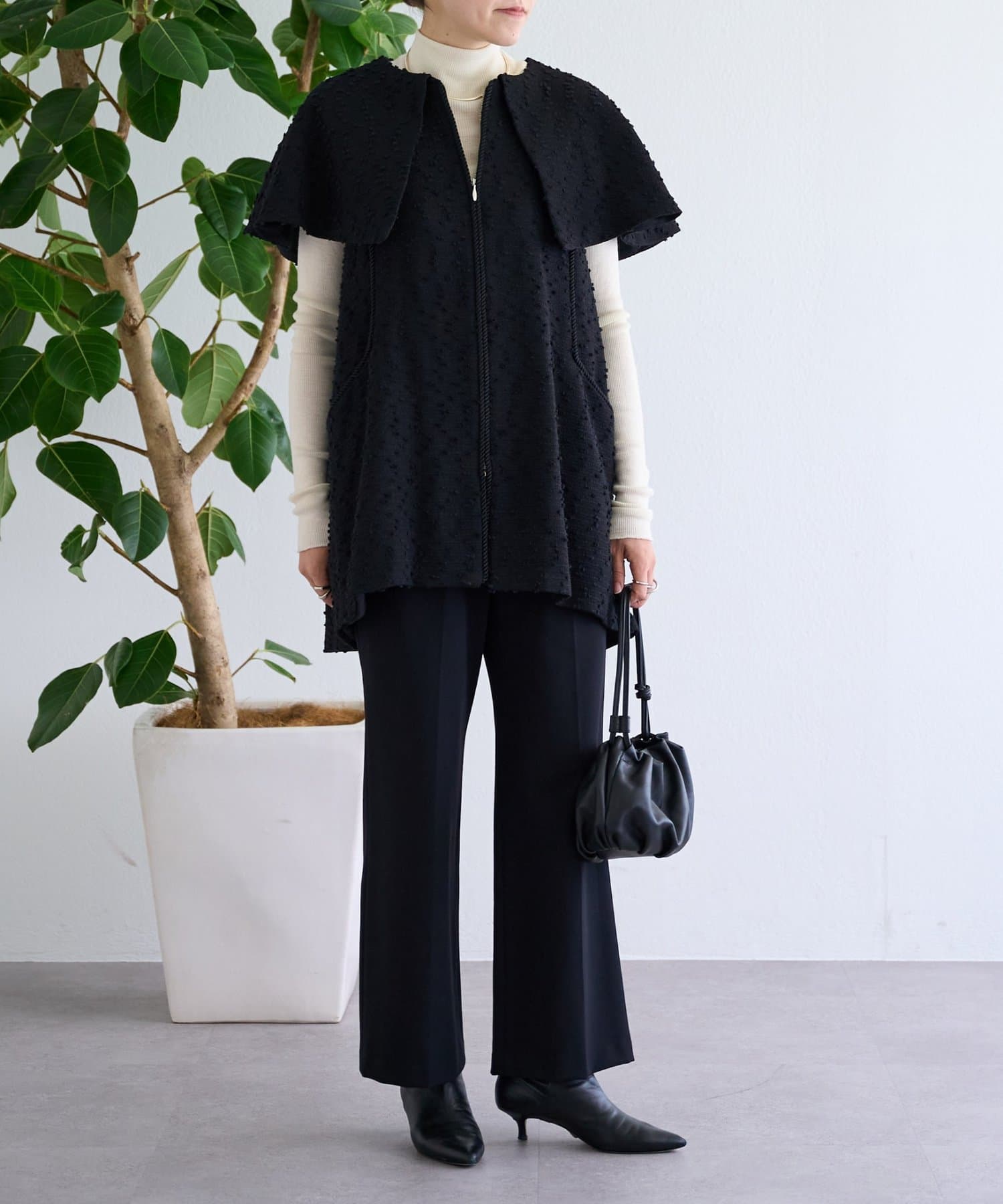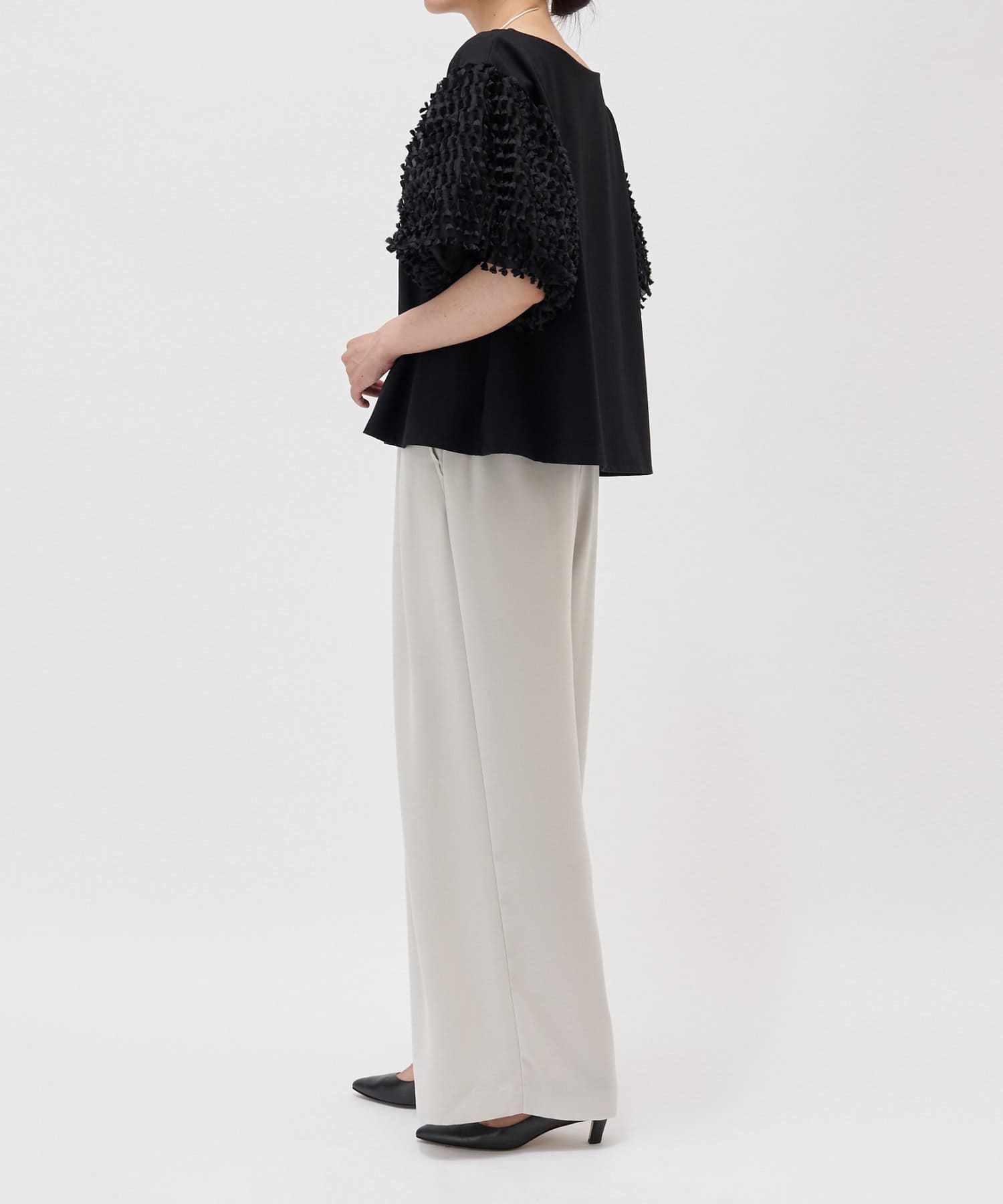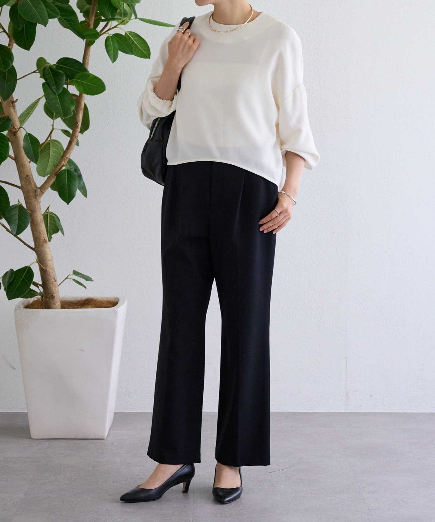 しなやかな生地が動くたびに美しいドレープを描き、きちんと感がありながらも快適な履き心地。