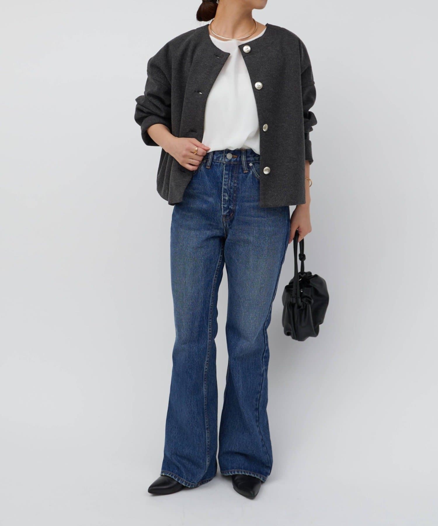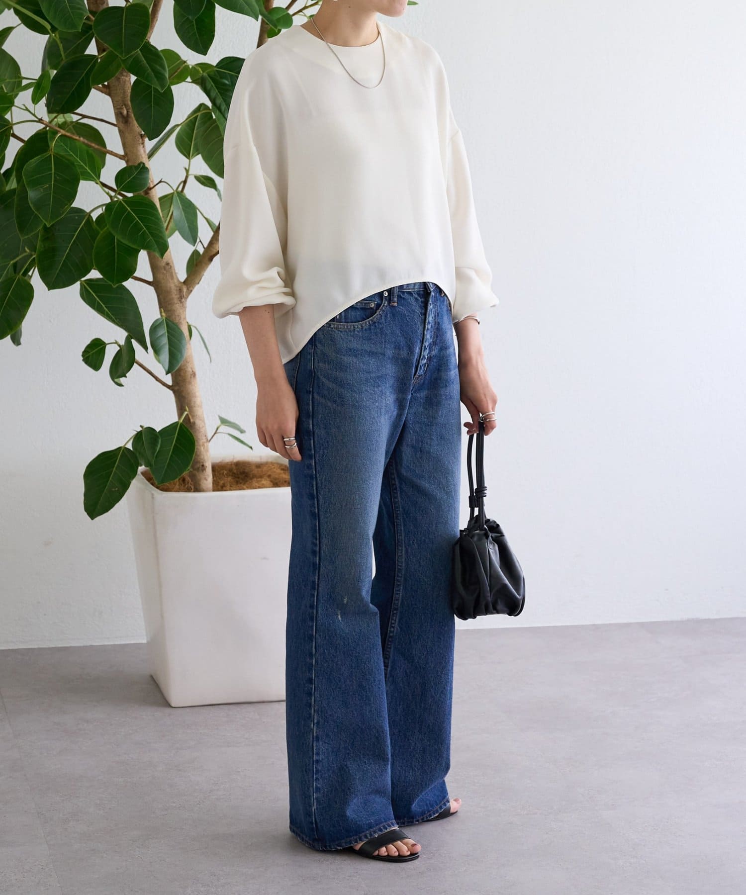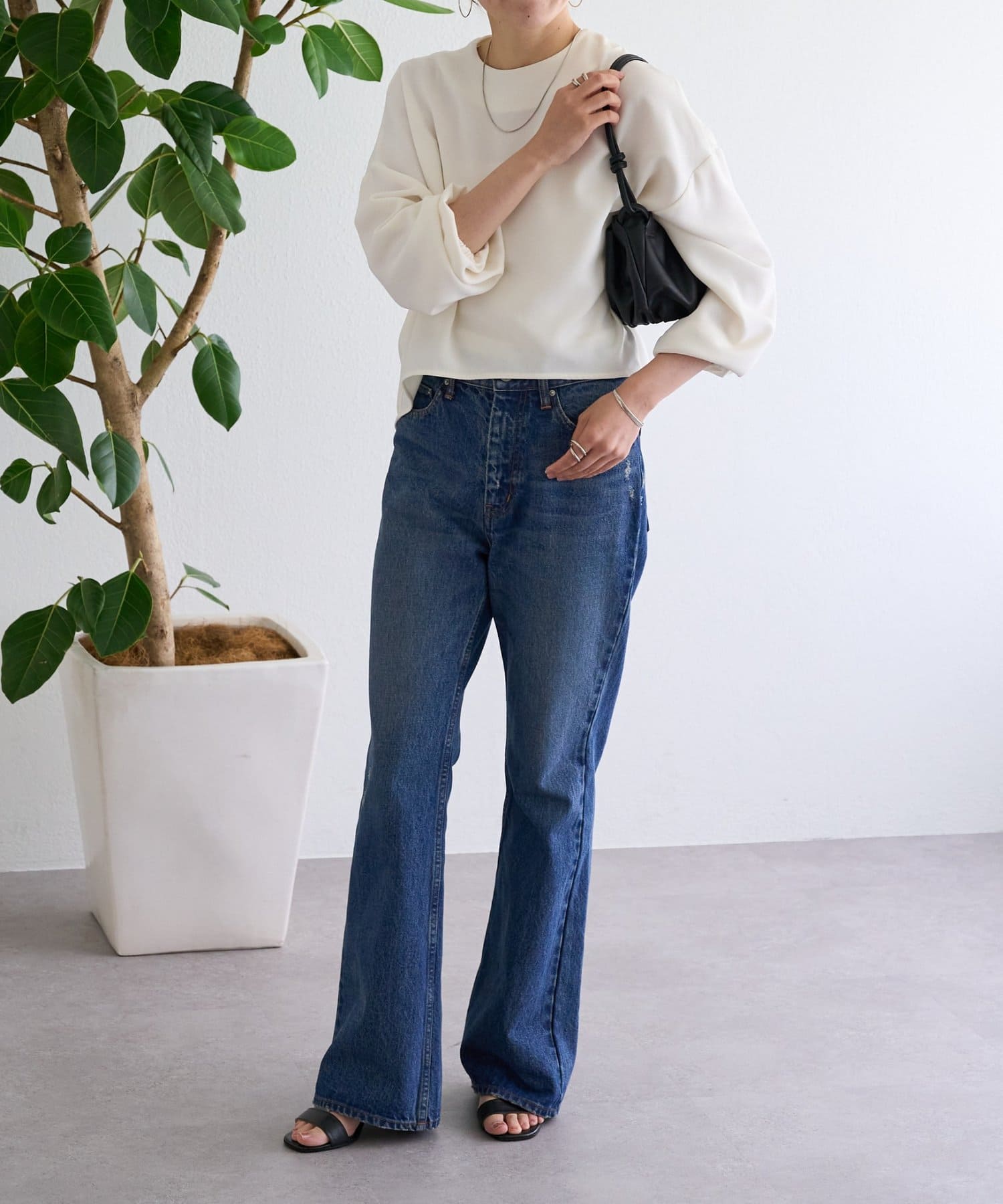 腰回りは程よくフィットし、裾に向けて広がるラインが美しい脚長シルエットを演出します。