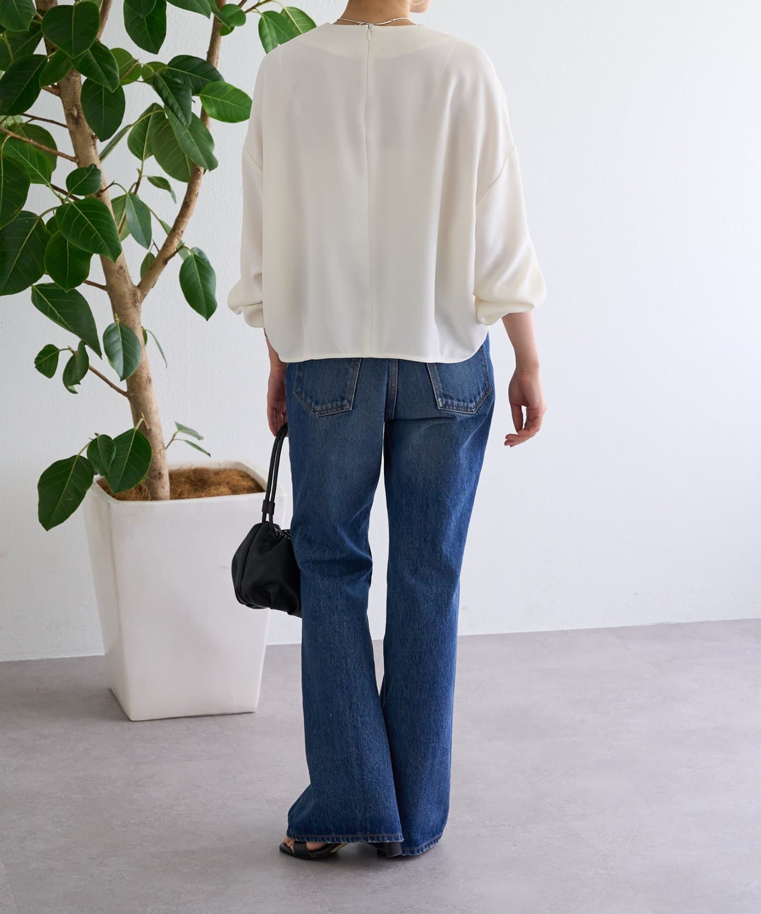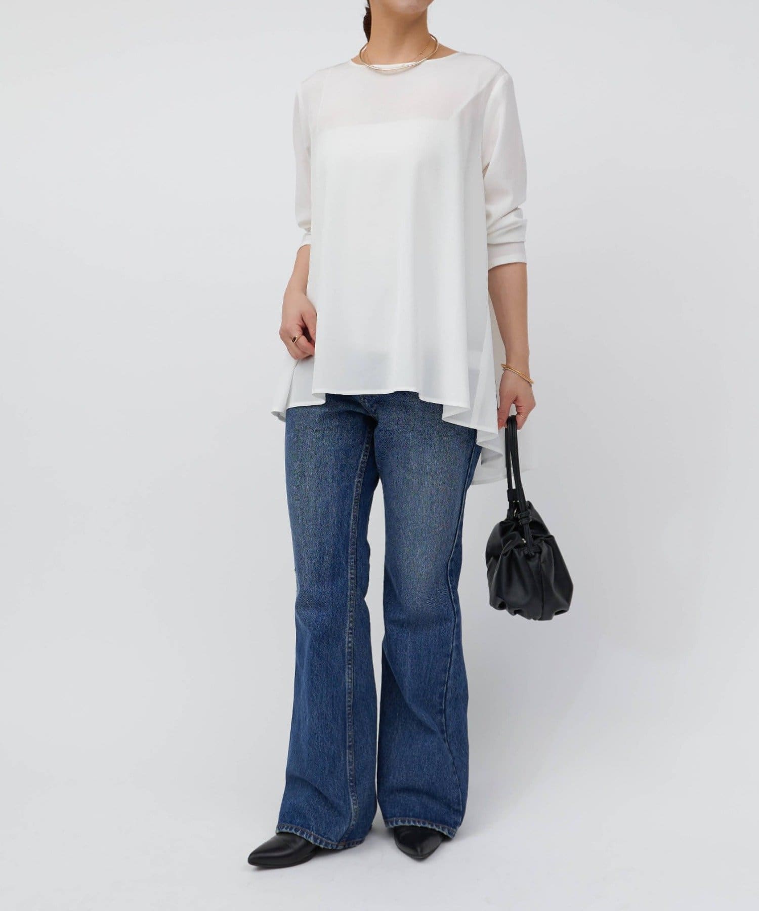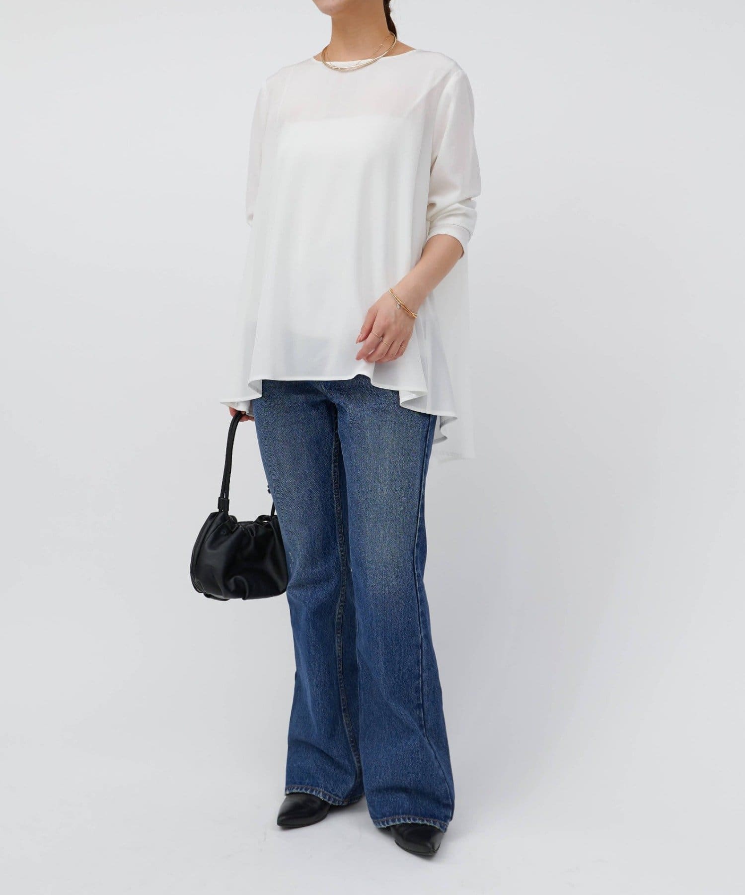 腰回りは程よくフィットし、裾に向けて広がるラインが美しい脚長シルエットを演出します。