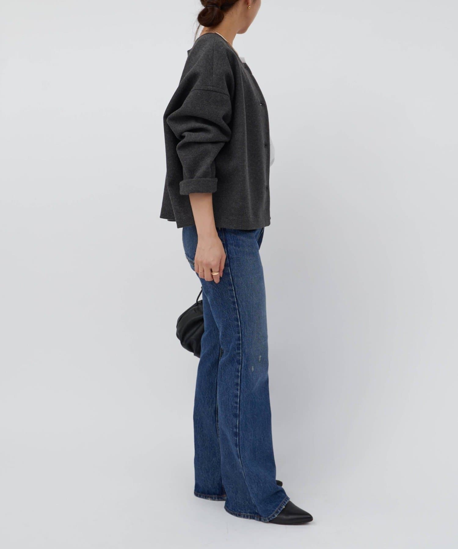 ・この製品は染色の特性上、着用中の摩擦や汗などにより他の衣料や下着、淡い色のベルトやカバン、靴、ソファーなどに色移りする場合がありますのでコーディネートや取扱いにご注意下さい。