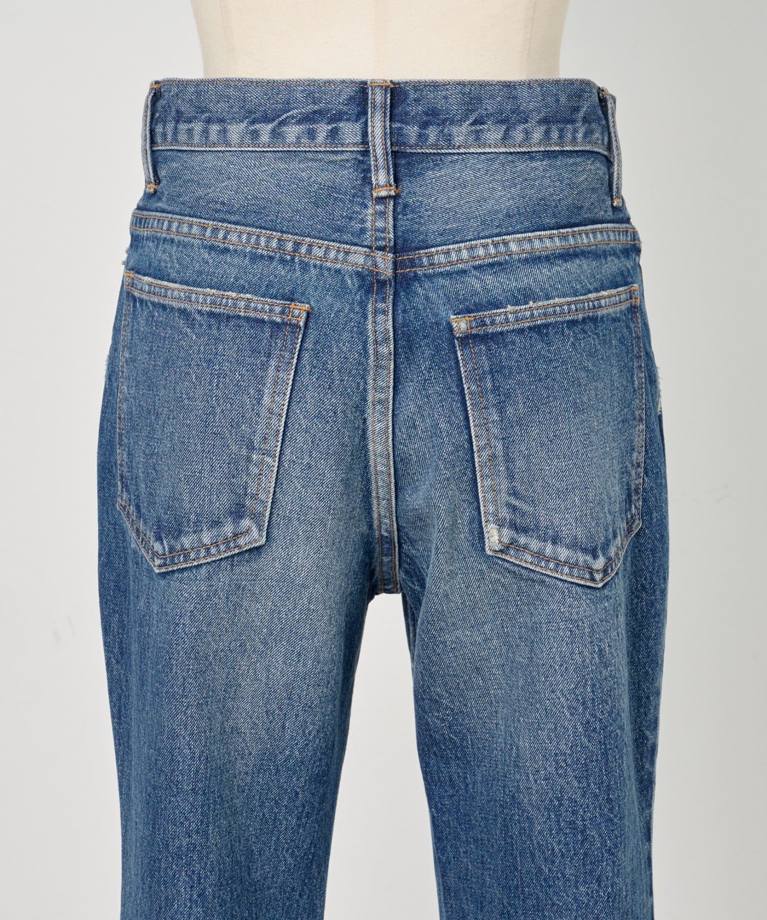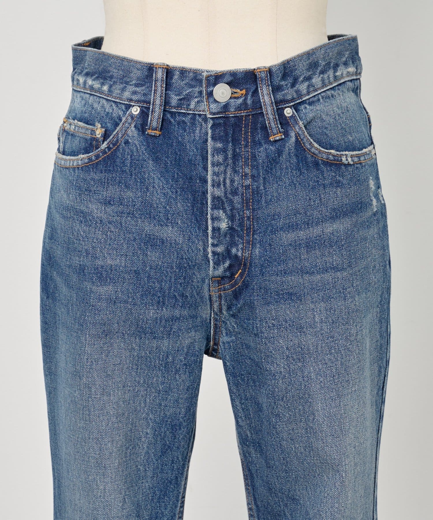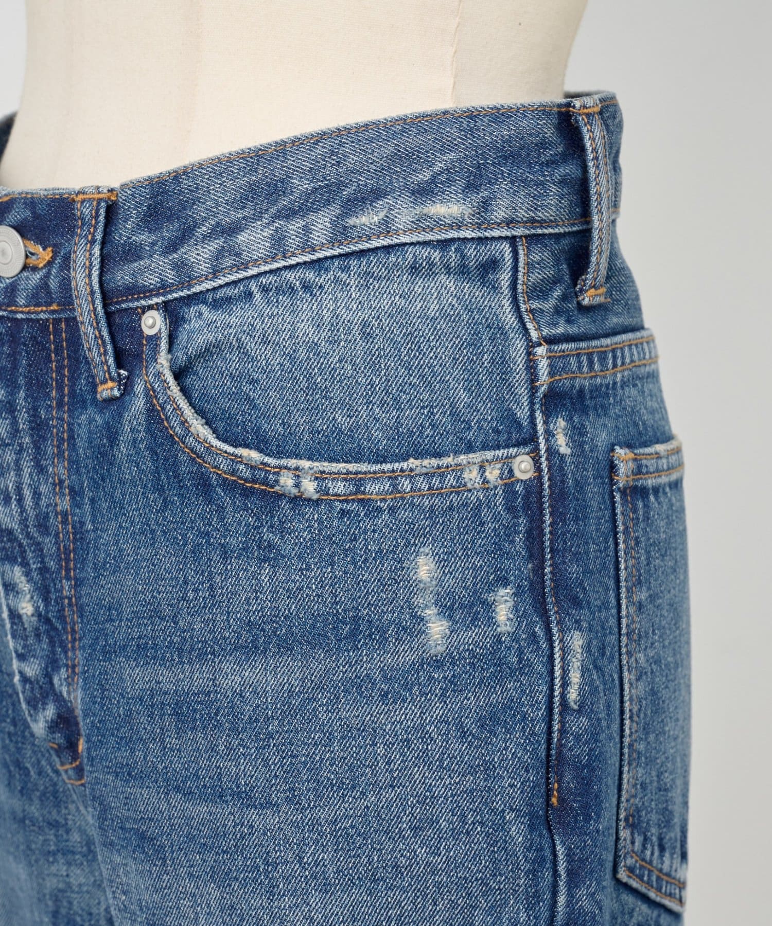 ロープ染色による深みのある色合いは、ダメージ加工によって奥行きのある表情に。