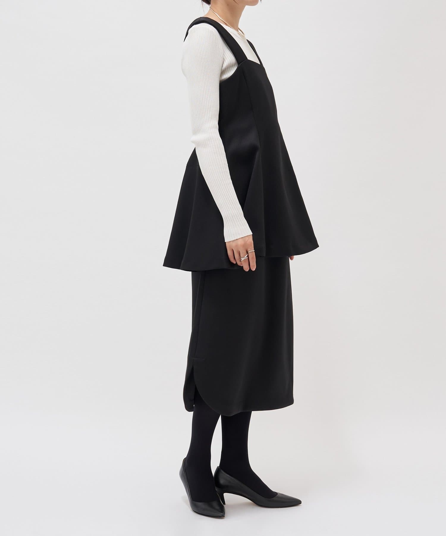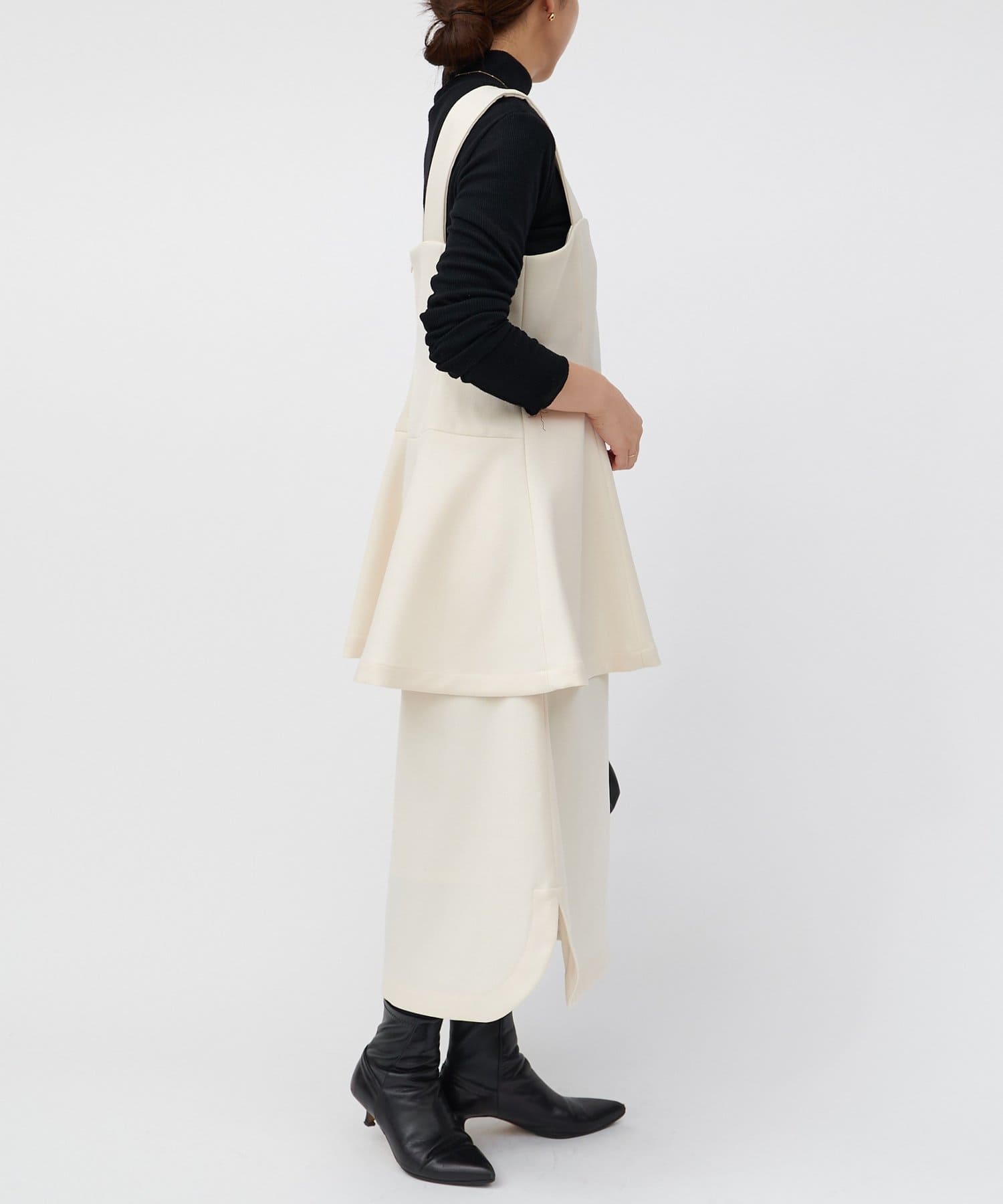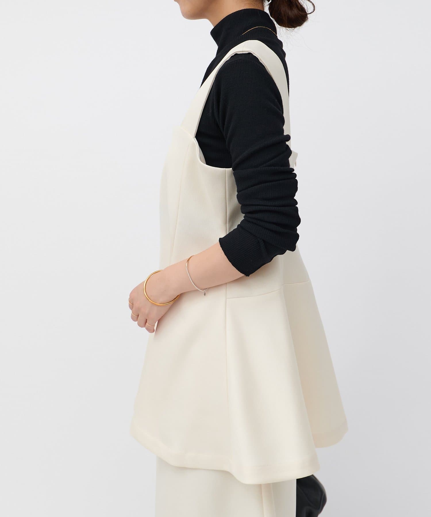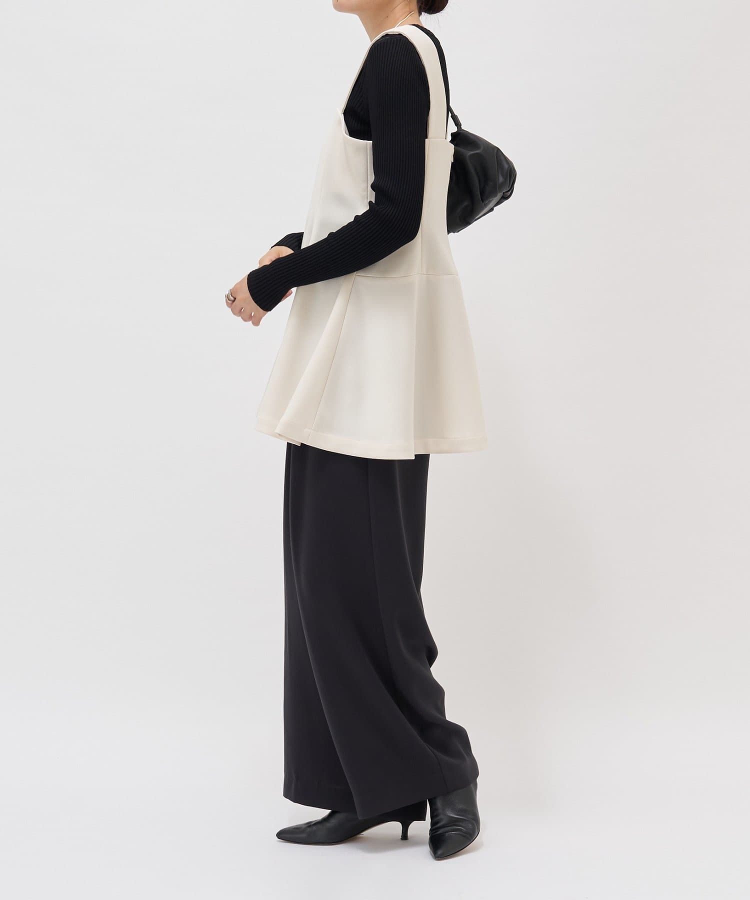 ウエストの高い位置から裾へ広がるデザインが絶妙で、腰回りのラインをカバーしつつすっきりと見せてくれます。