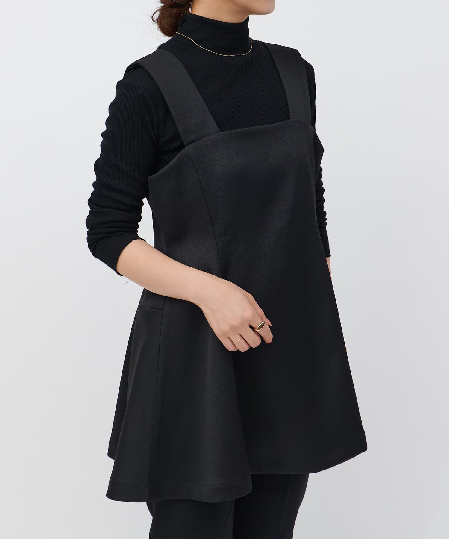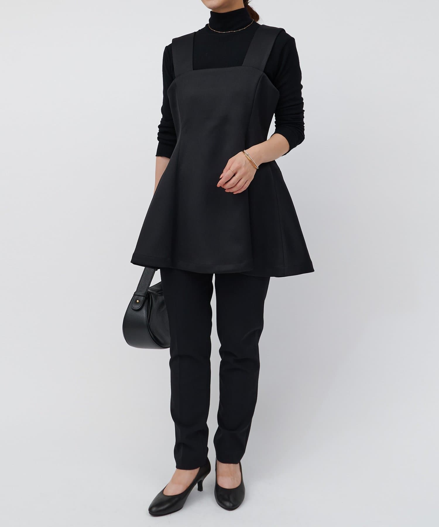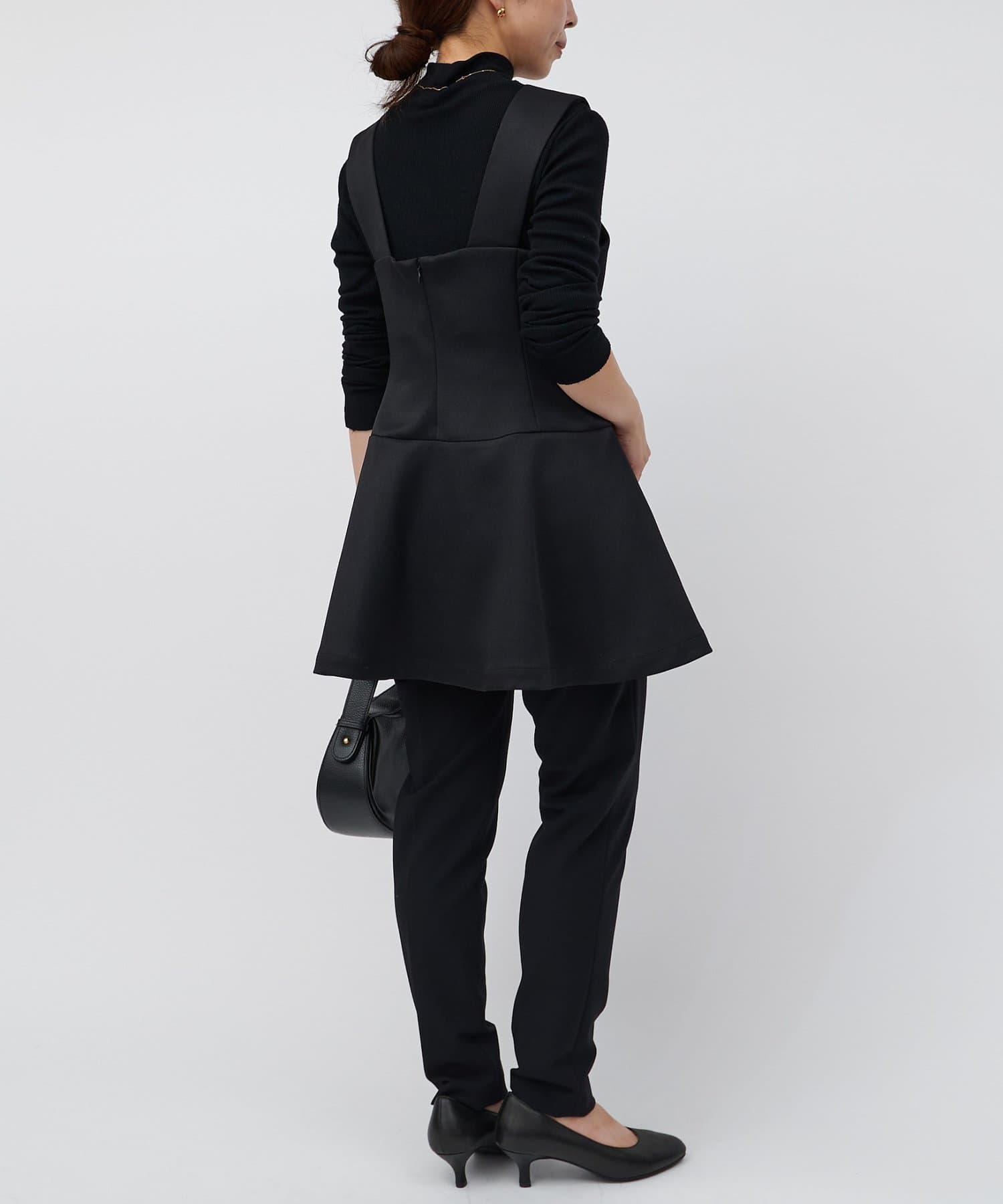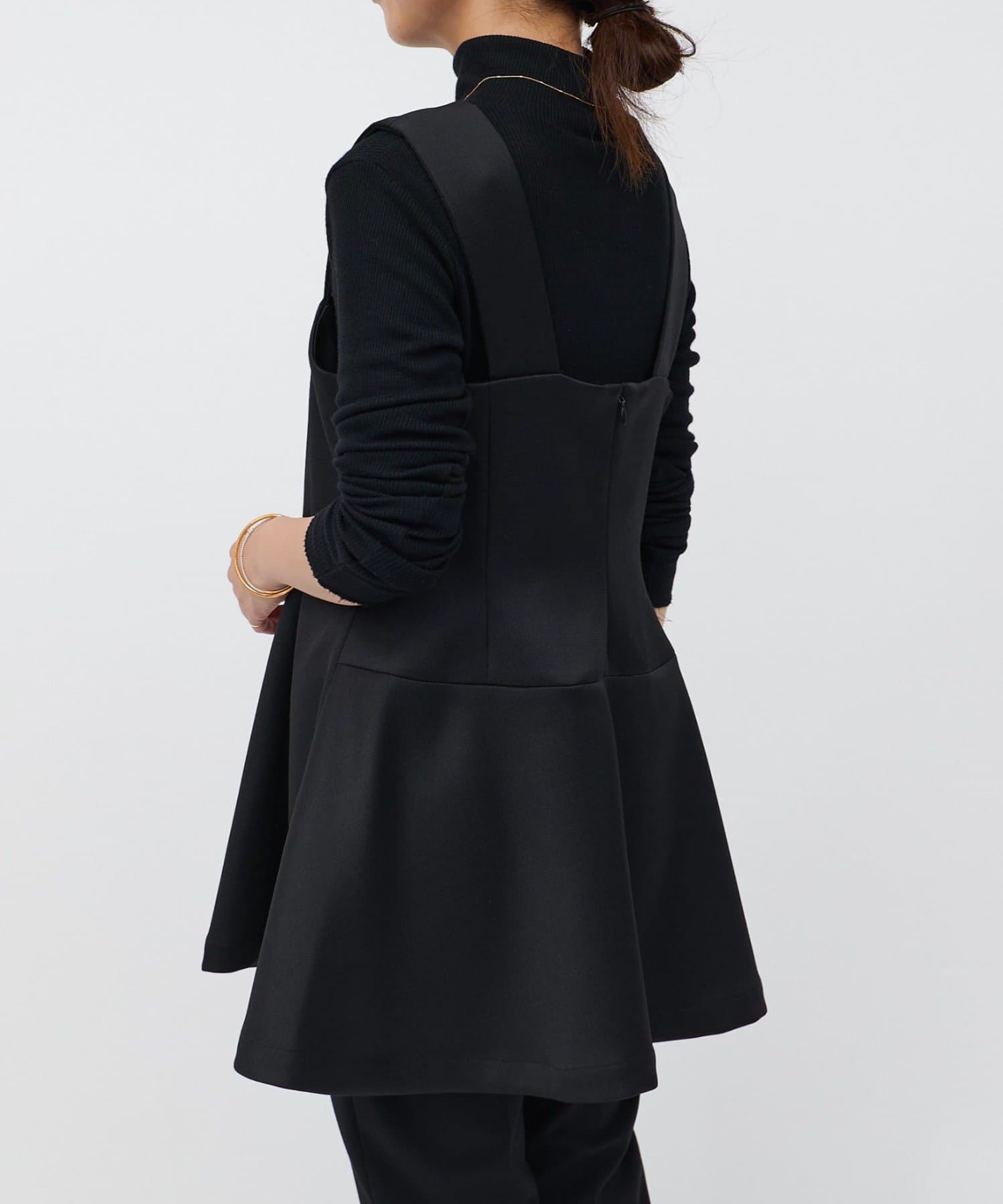 ウエストの高い位置から裾へ広がるデザインが絶妙で、腰回りのラインをカバーしつつすっきりと見せてくれます。