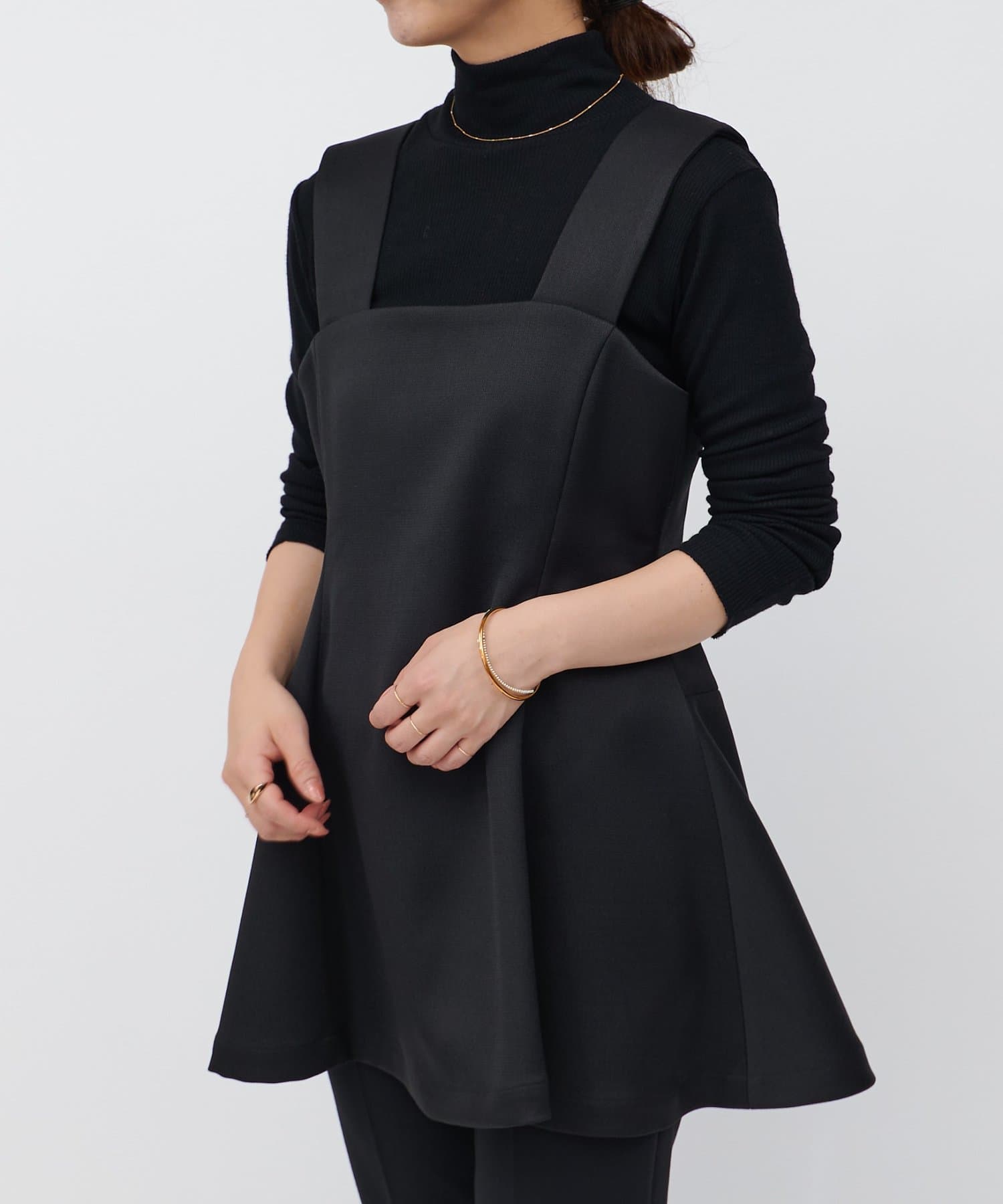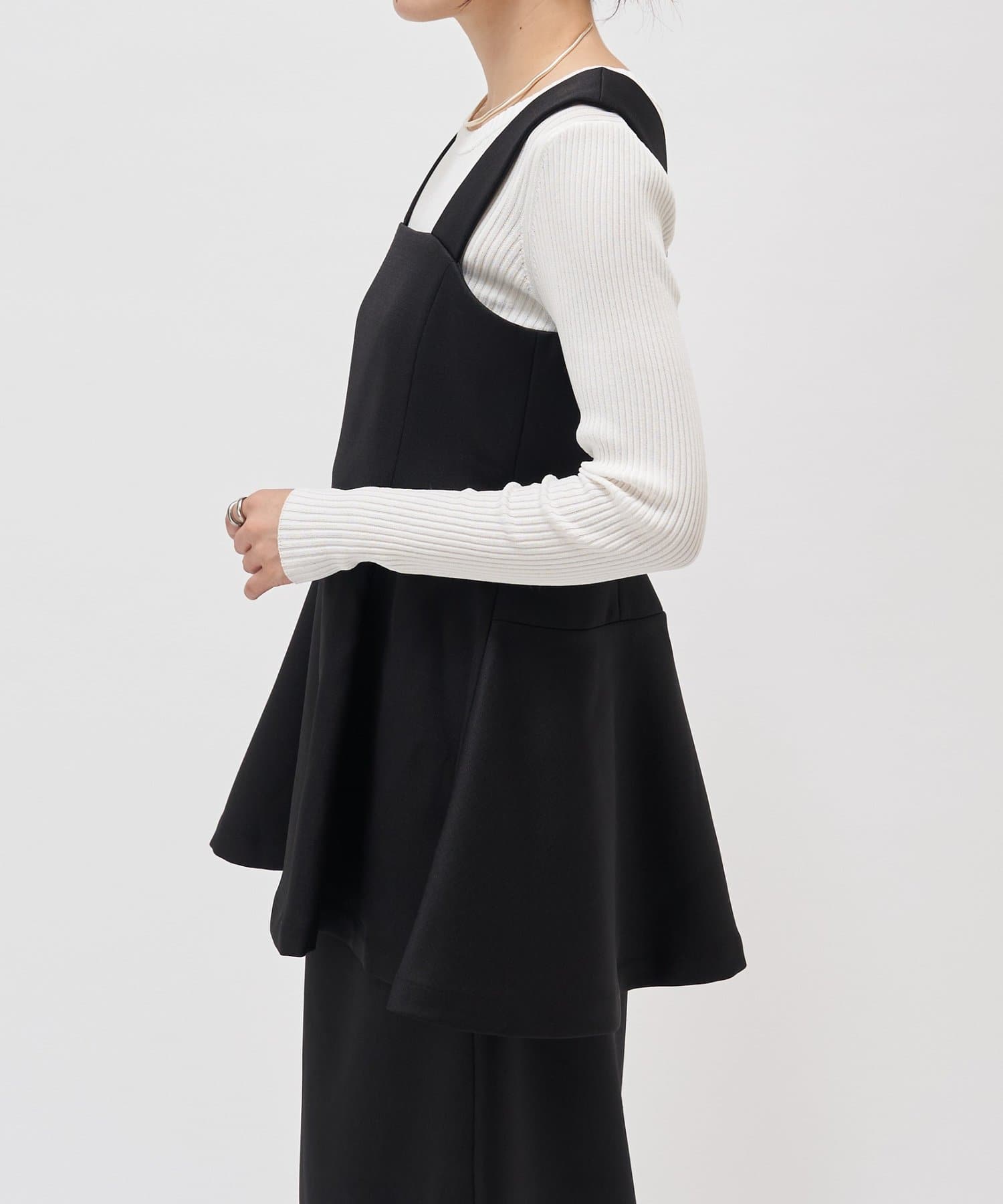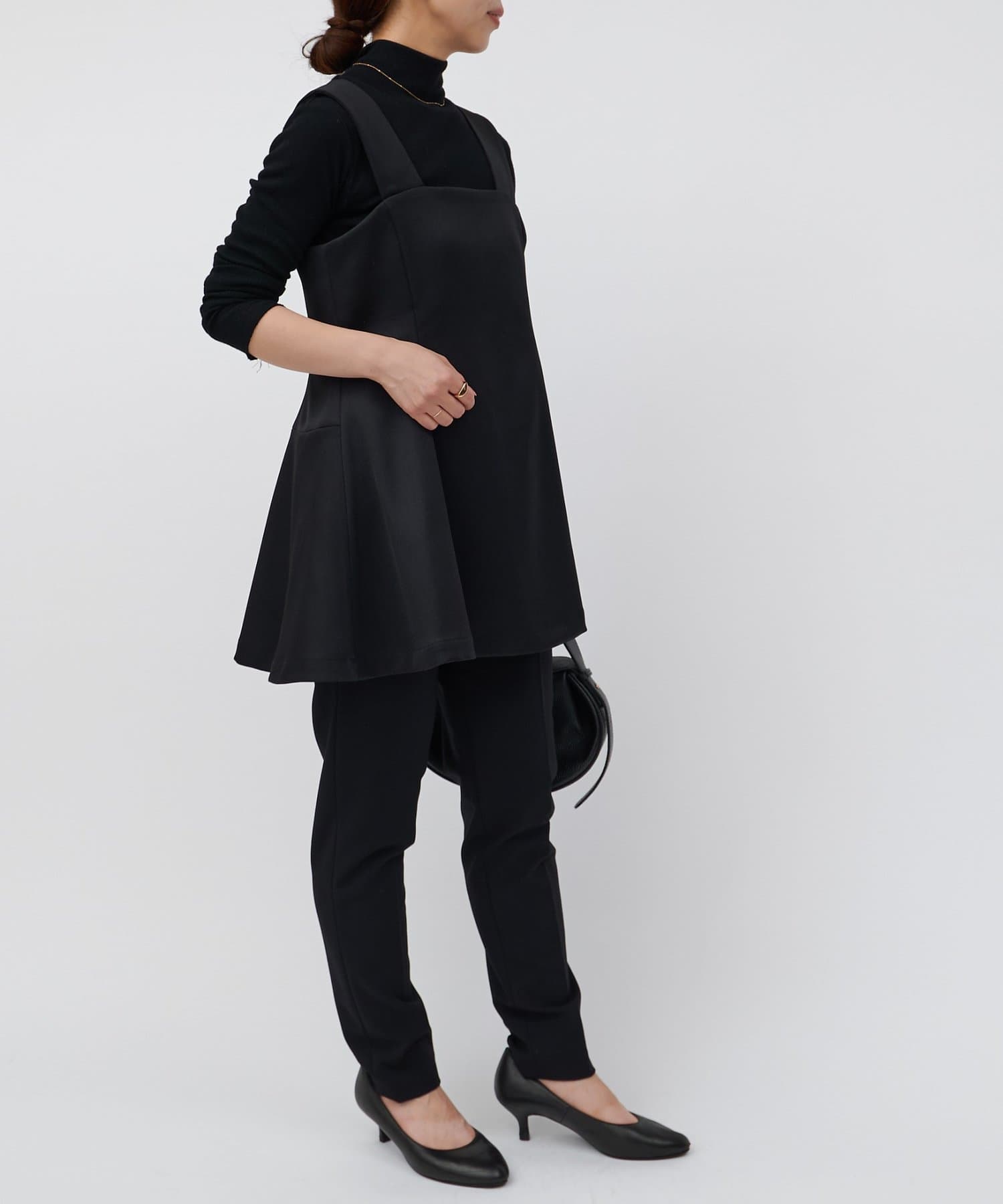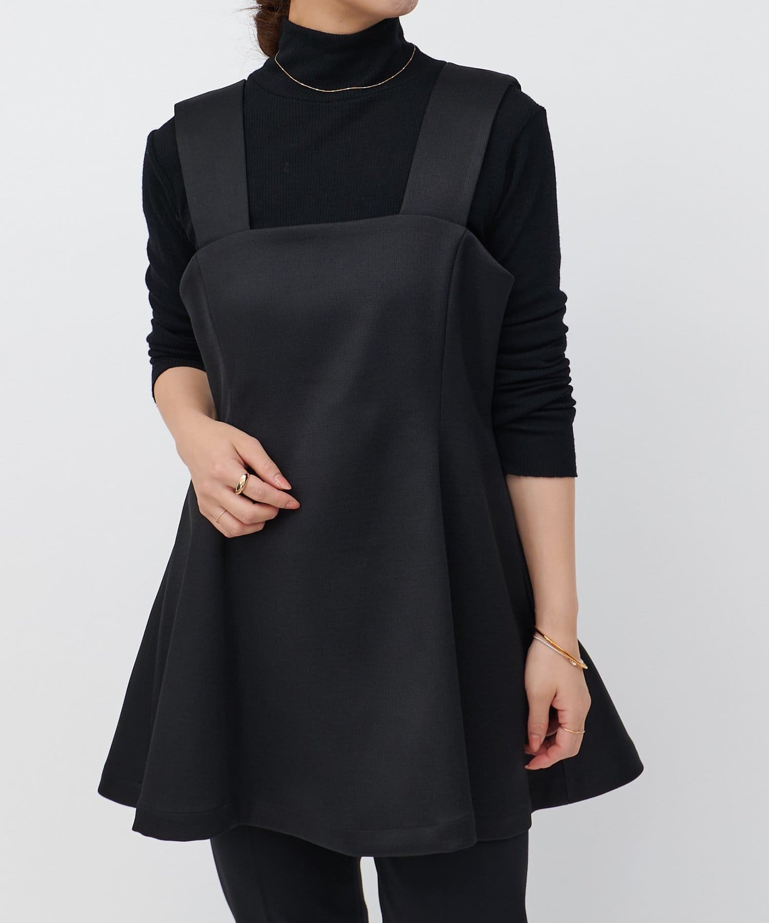 ウエストの高い位置から裾へ広がるデザインが絶妙で、腰回りのラインをカバーしつつすっきりと見せてくれます。
