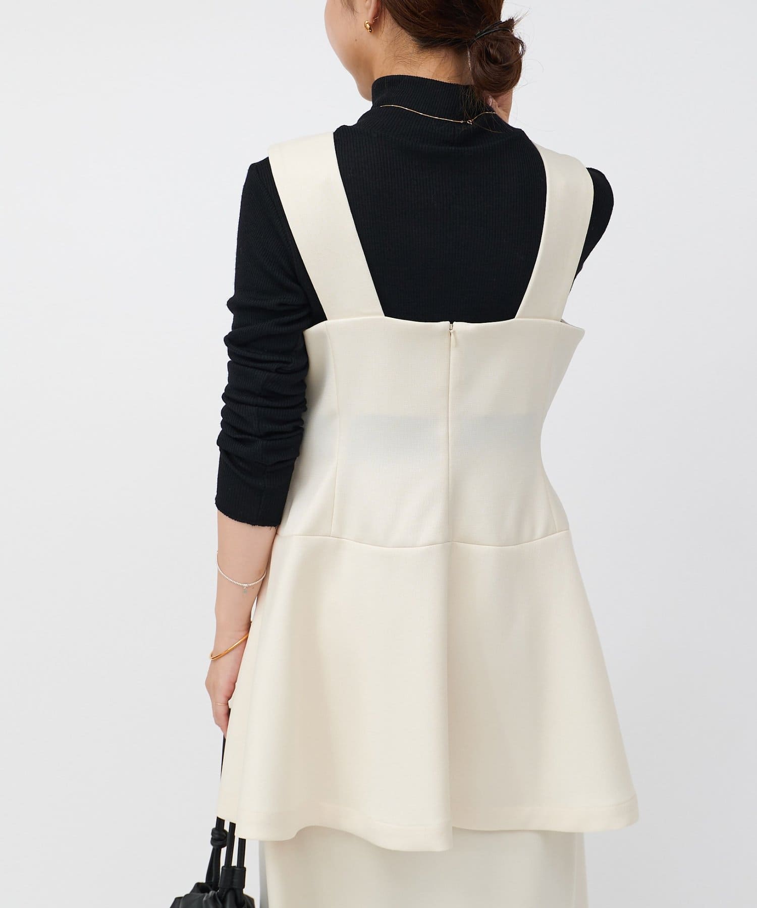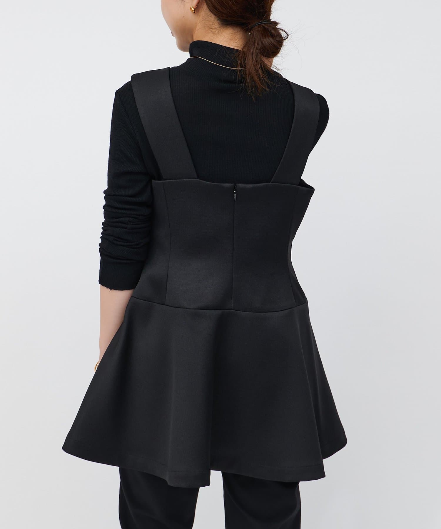 微光沢のある上品な素材で、きれいめな印象のビスチェ。