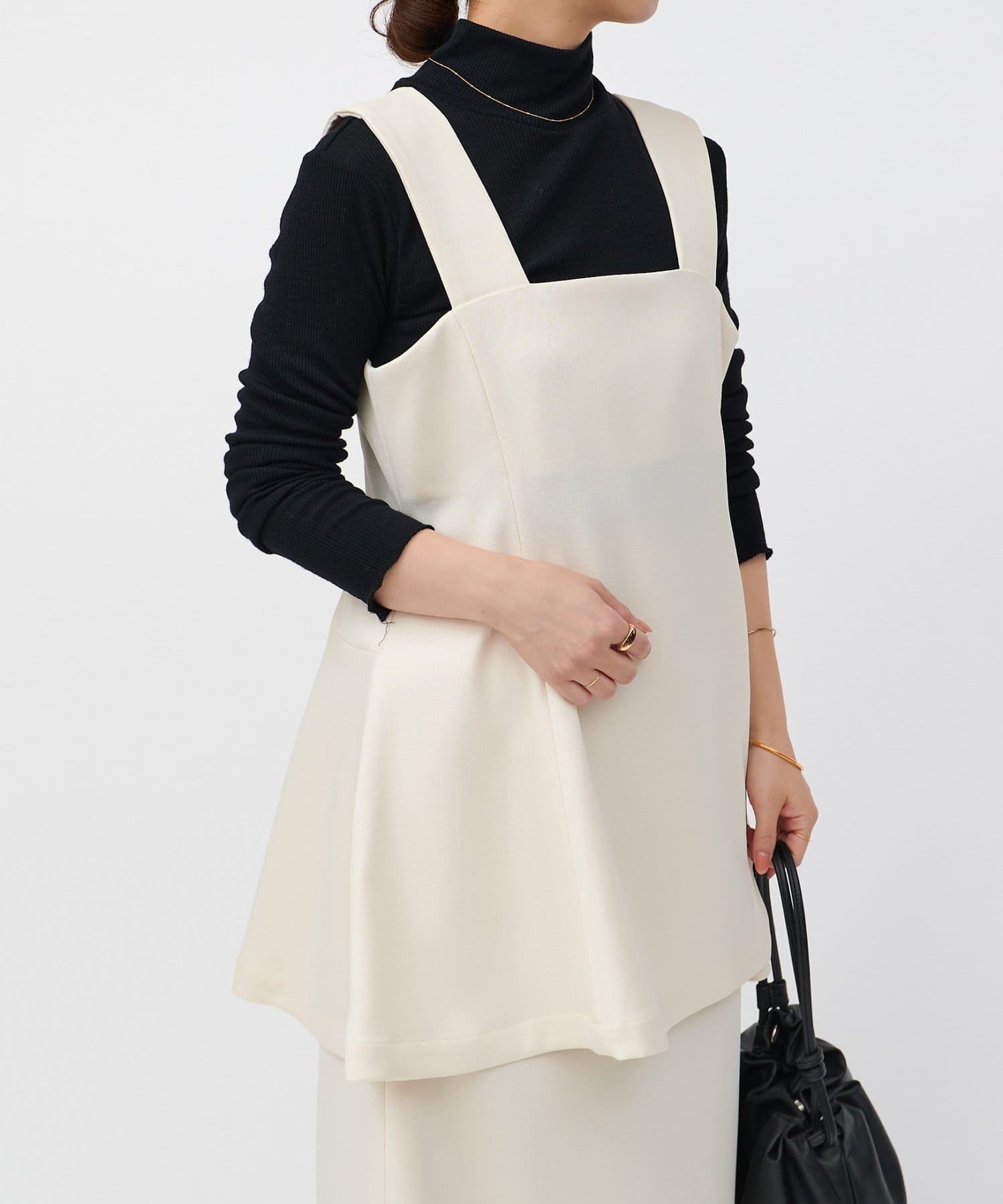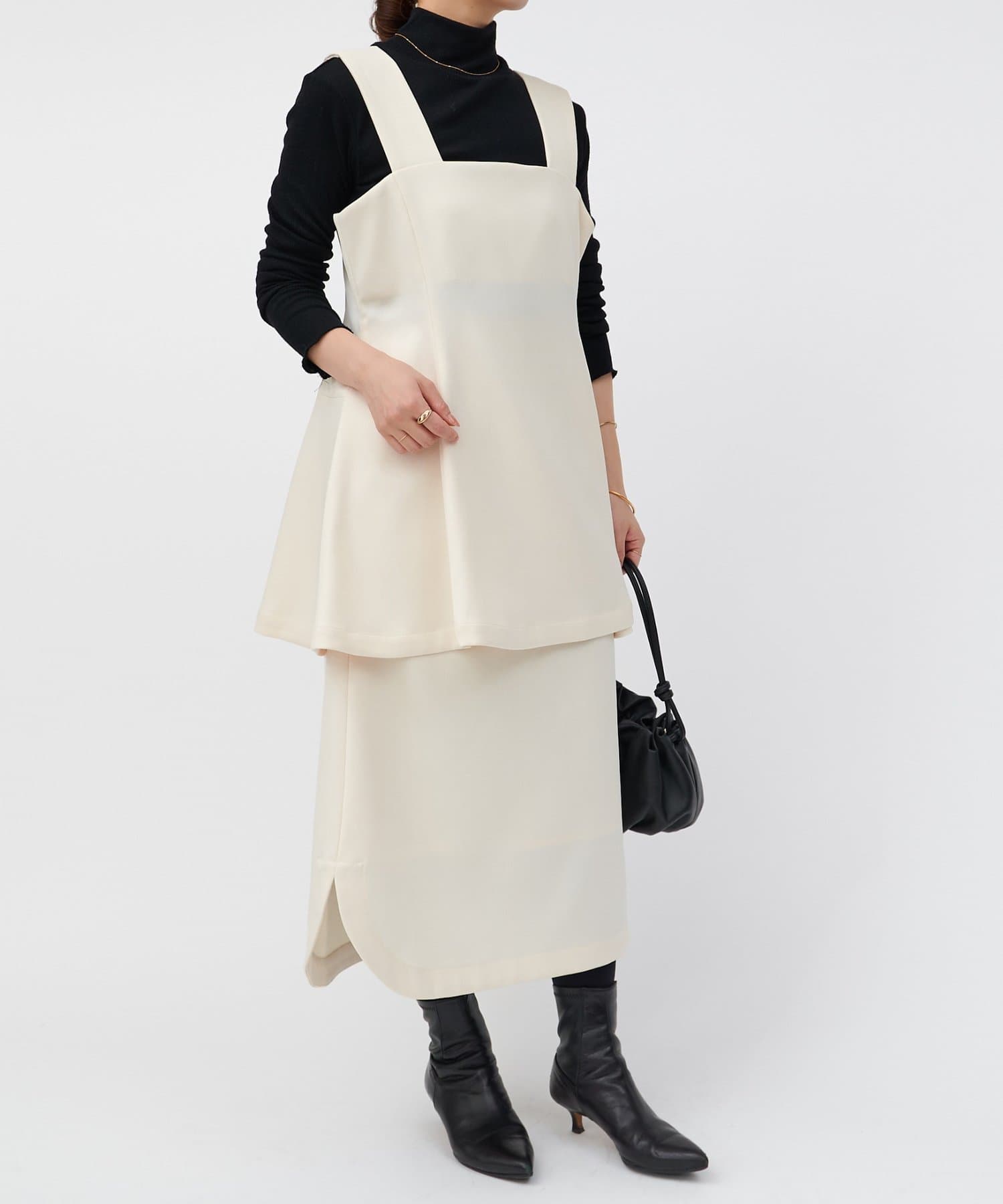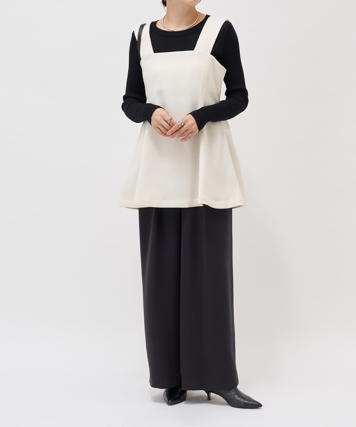 インナーは薄手のカットソーやニットで、シーズンごとにレイヤードスタイルのバリエーションを楽しめます。