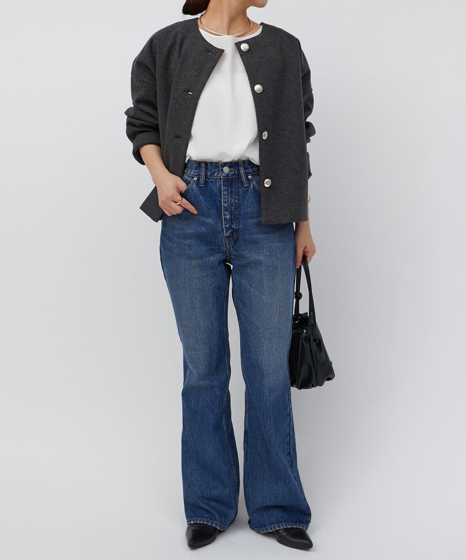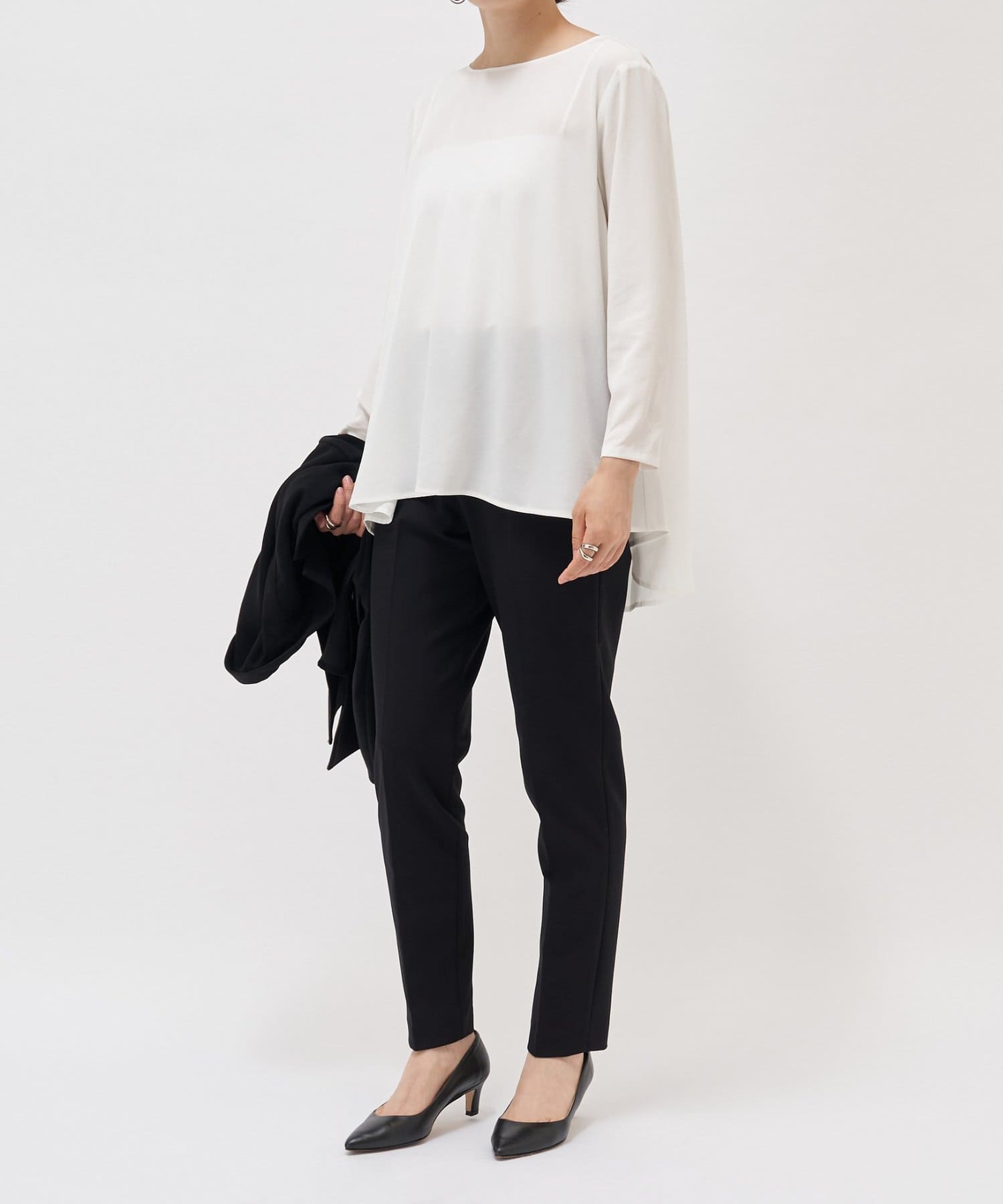 ボトムのシルエットを選ばず、デニムで普段使い、タックパンツでお仕事用などON/OFF問わずにお召いただけます。