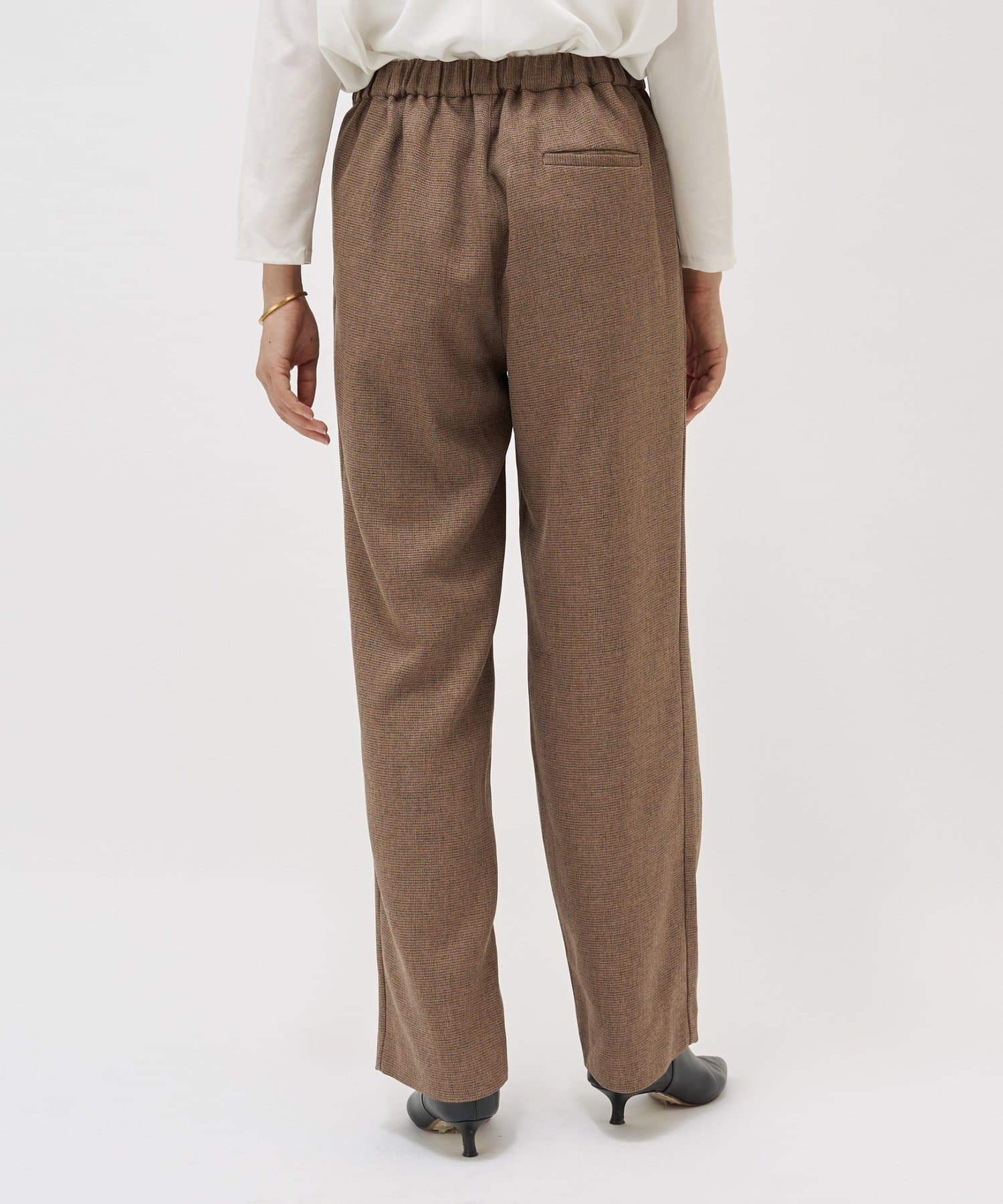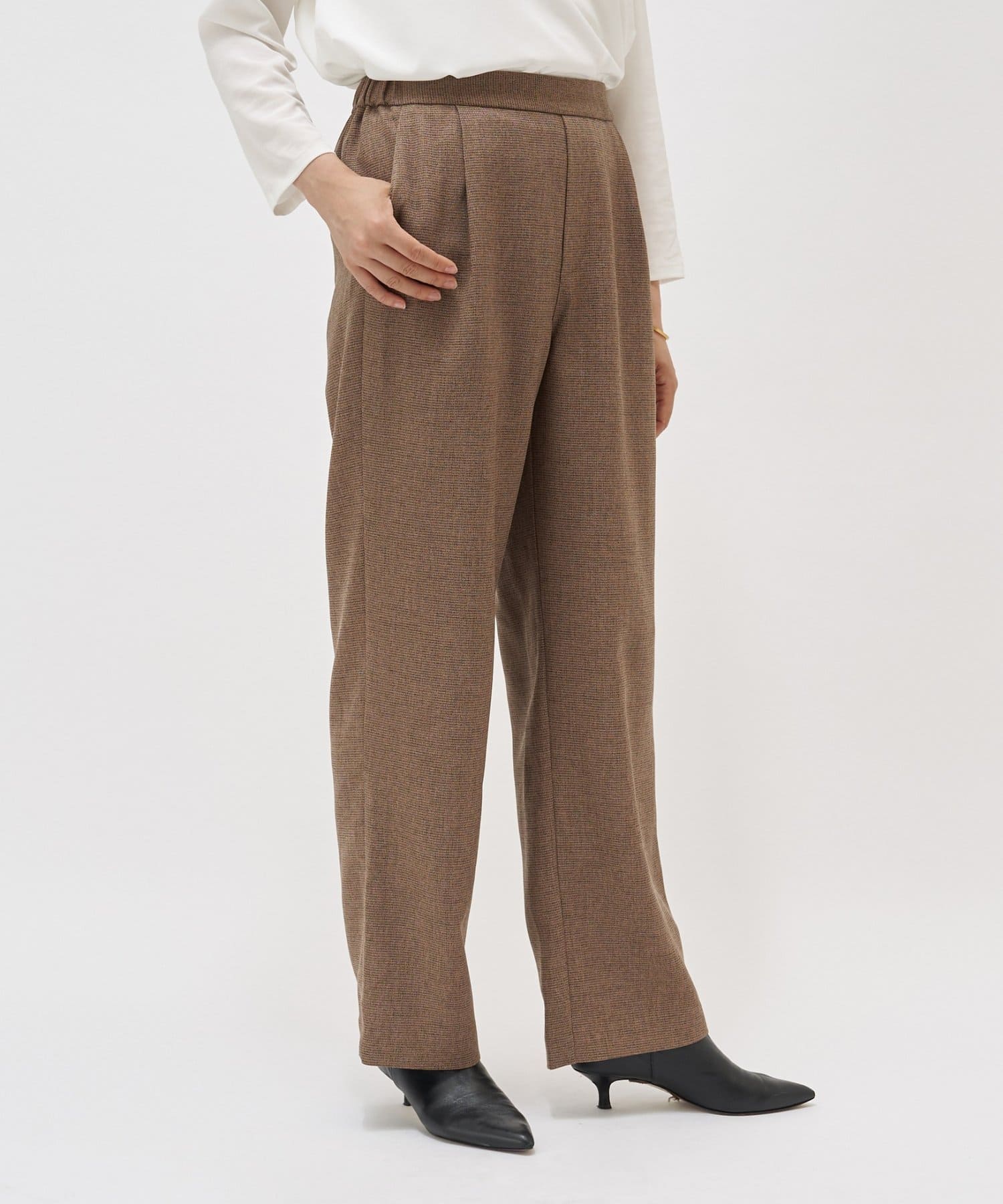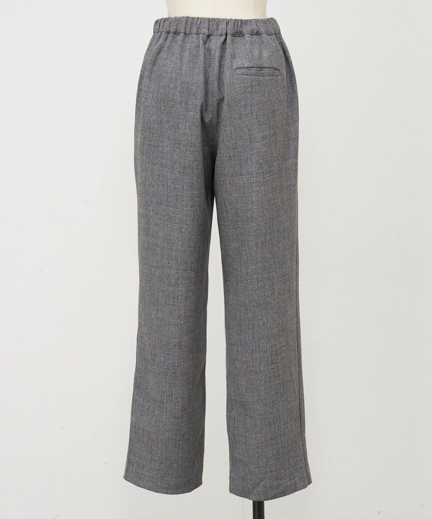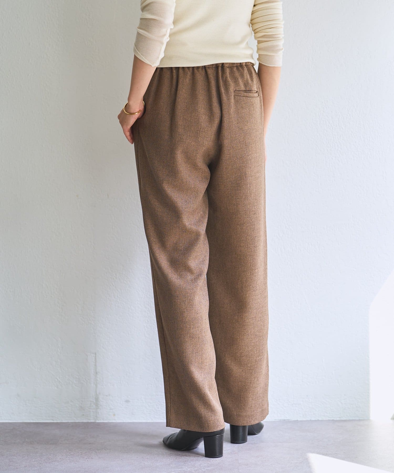 シルエットはすとんと落ちるストレート。タックが入っており、ウエストは後ろ部分のみゴム仕様のため快適に穿いていただけます。