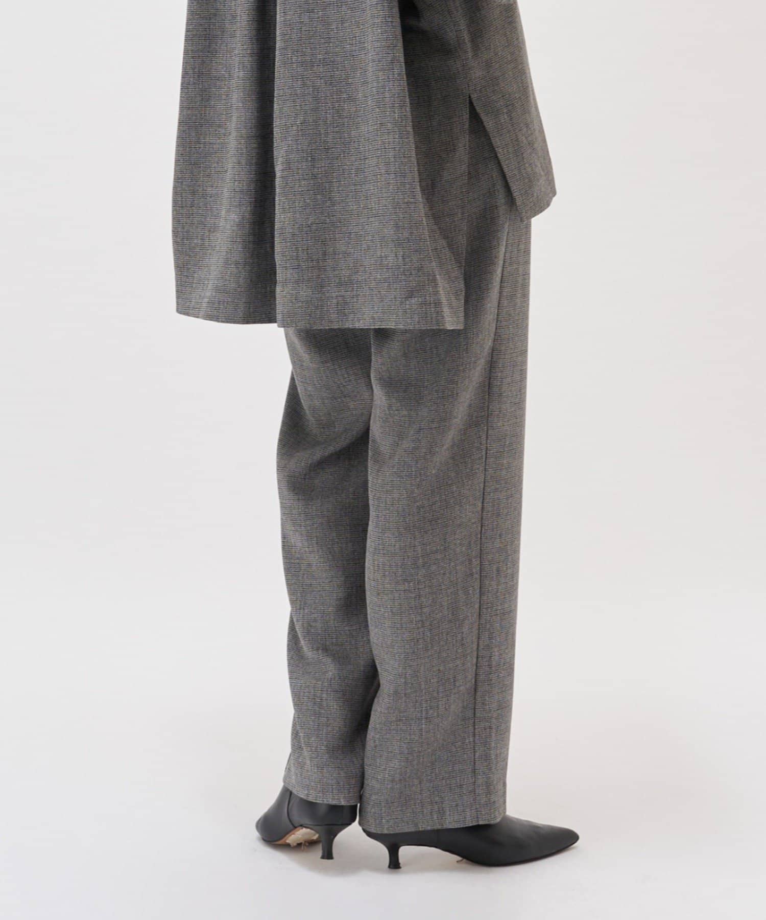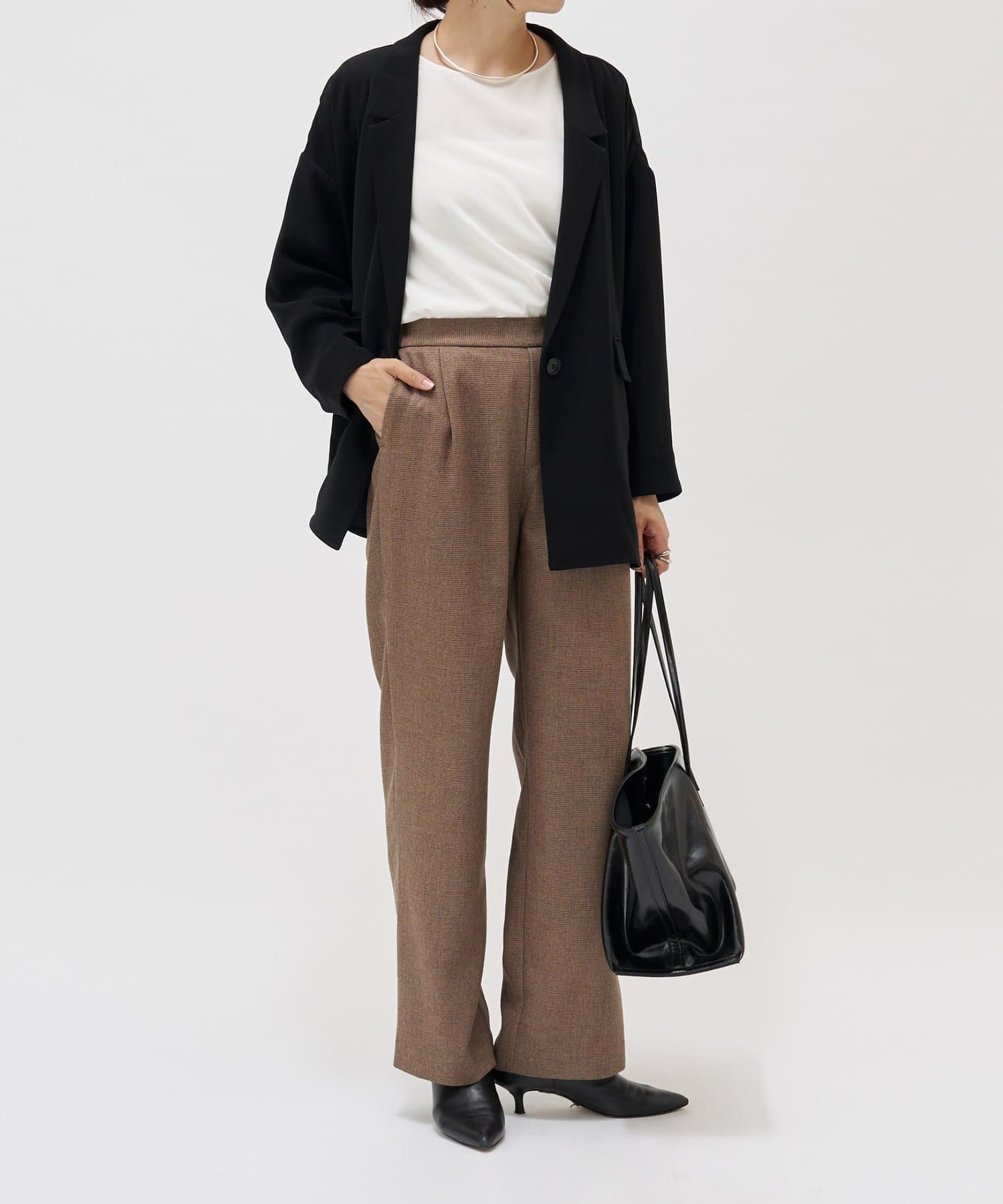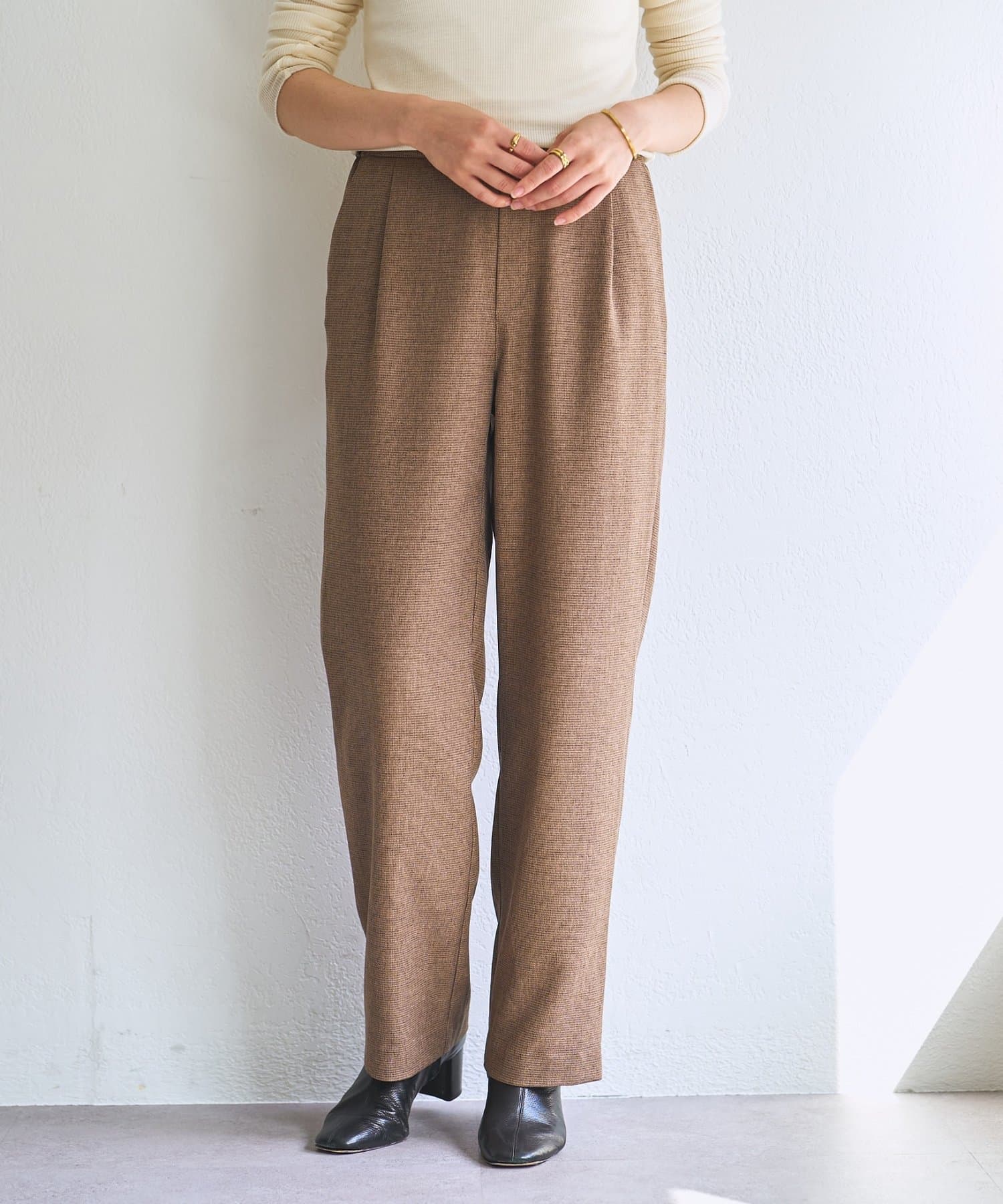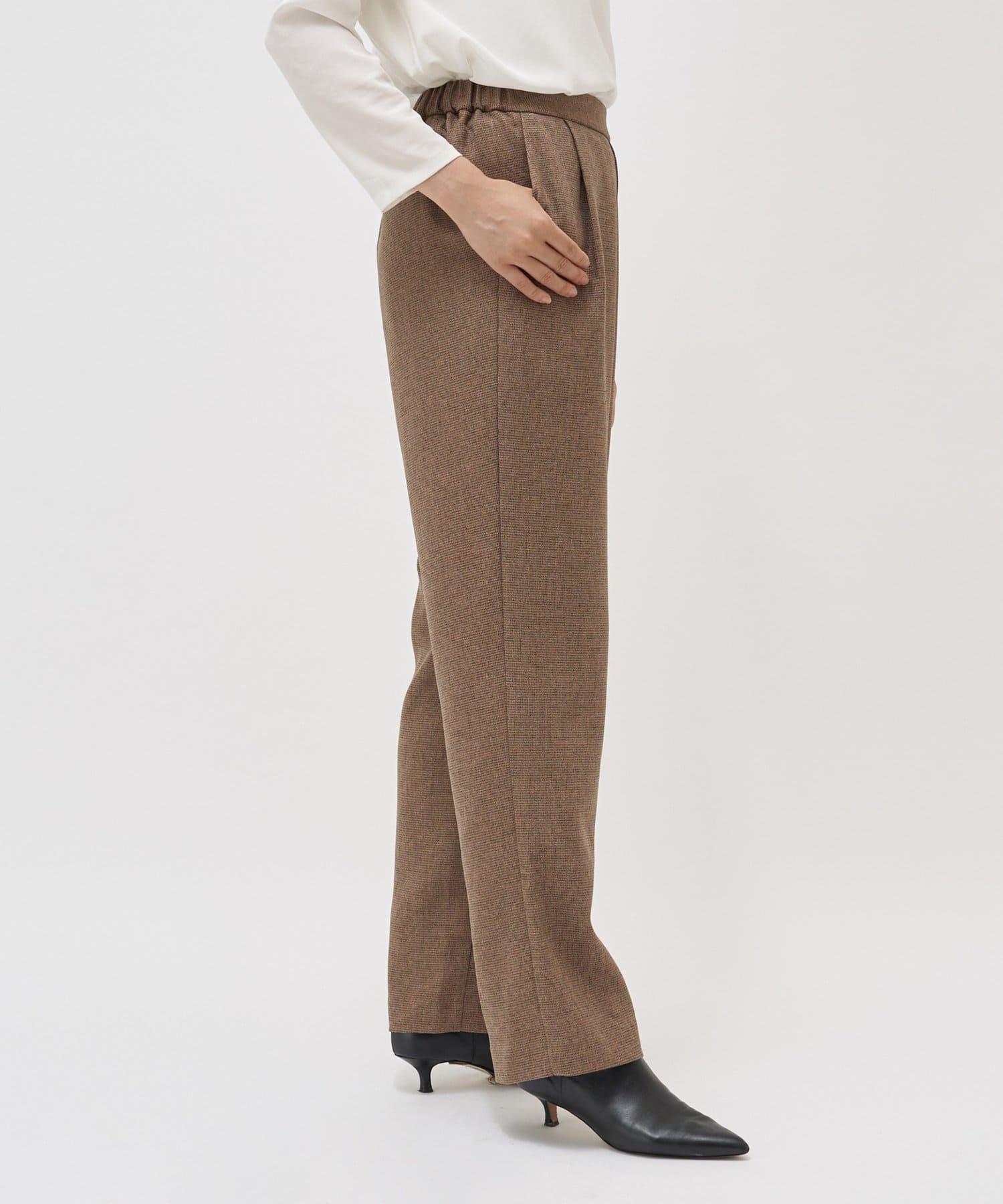 シルエットはすとんと落ちるストレート。タックが入っており、ウエストは後ろ部分のみゴム仕様のため快適に穿いていただけます。