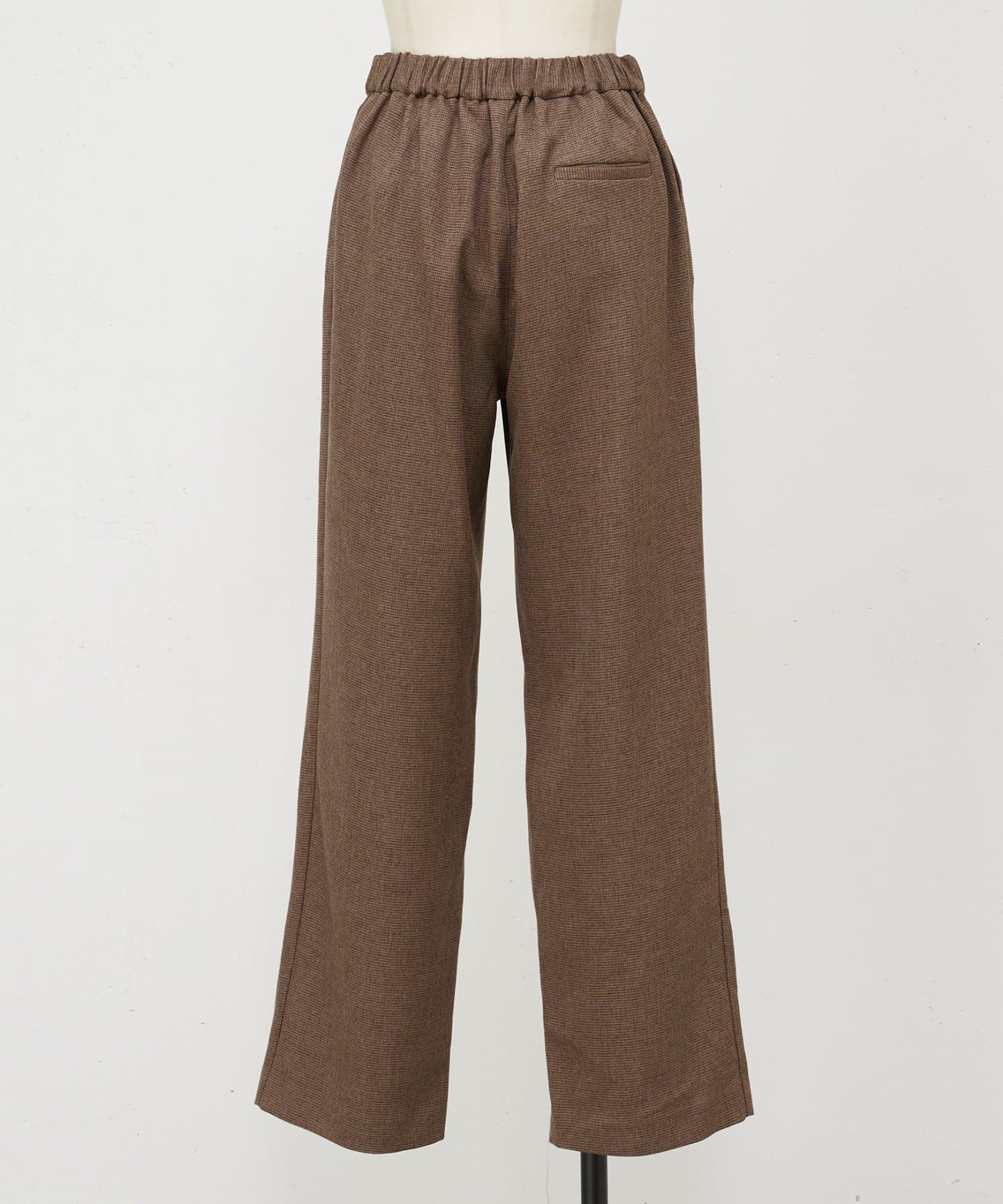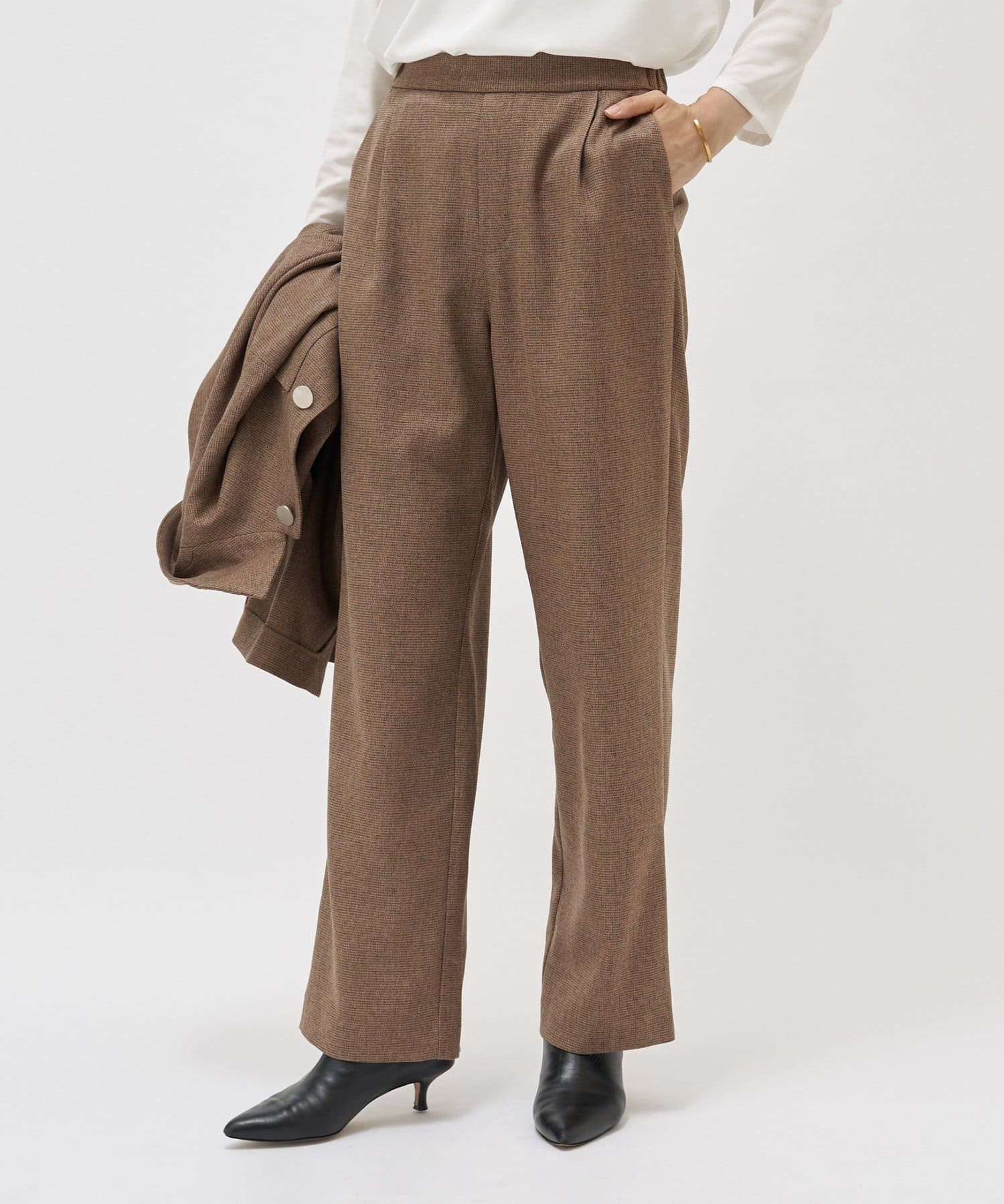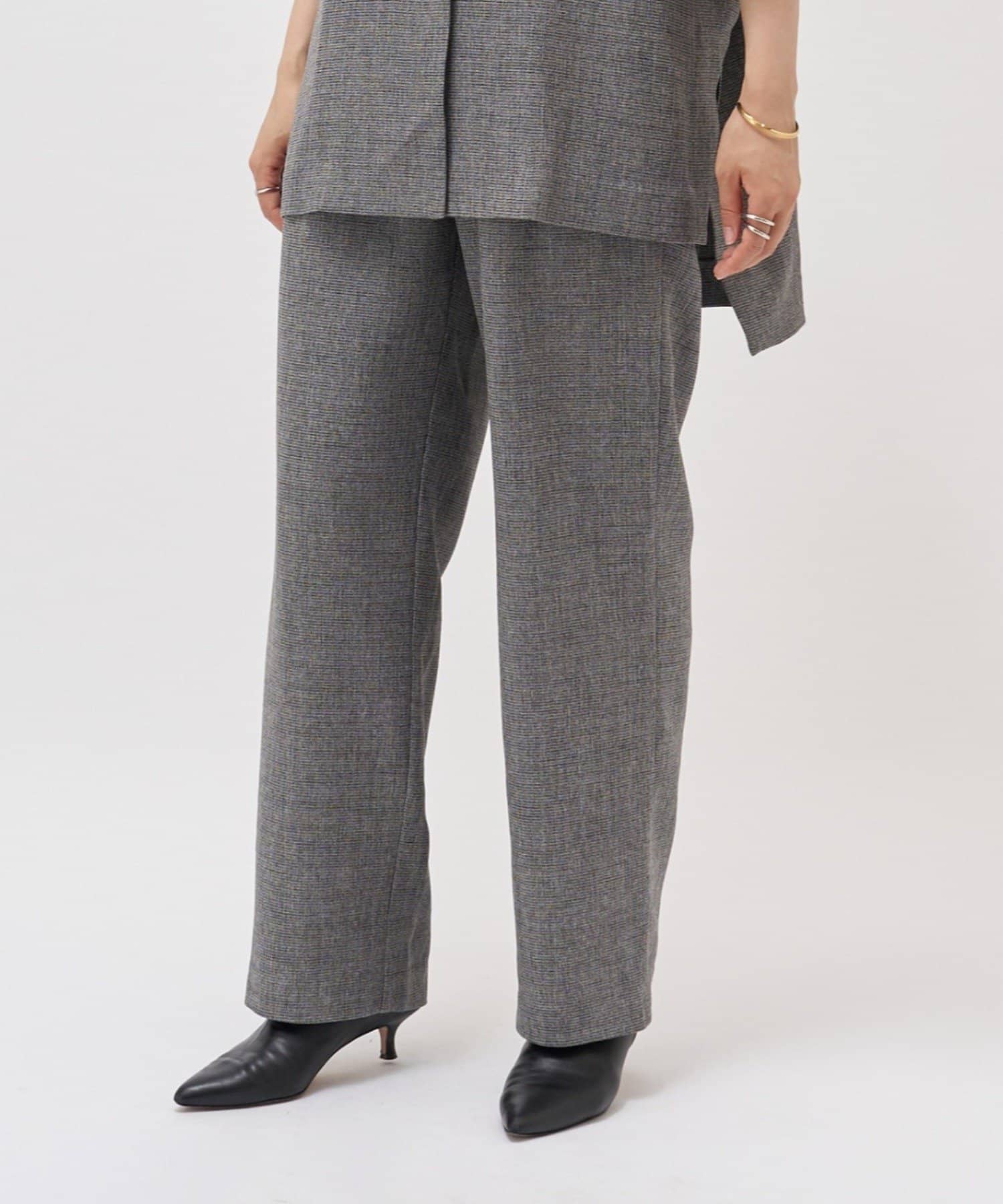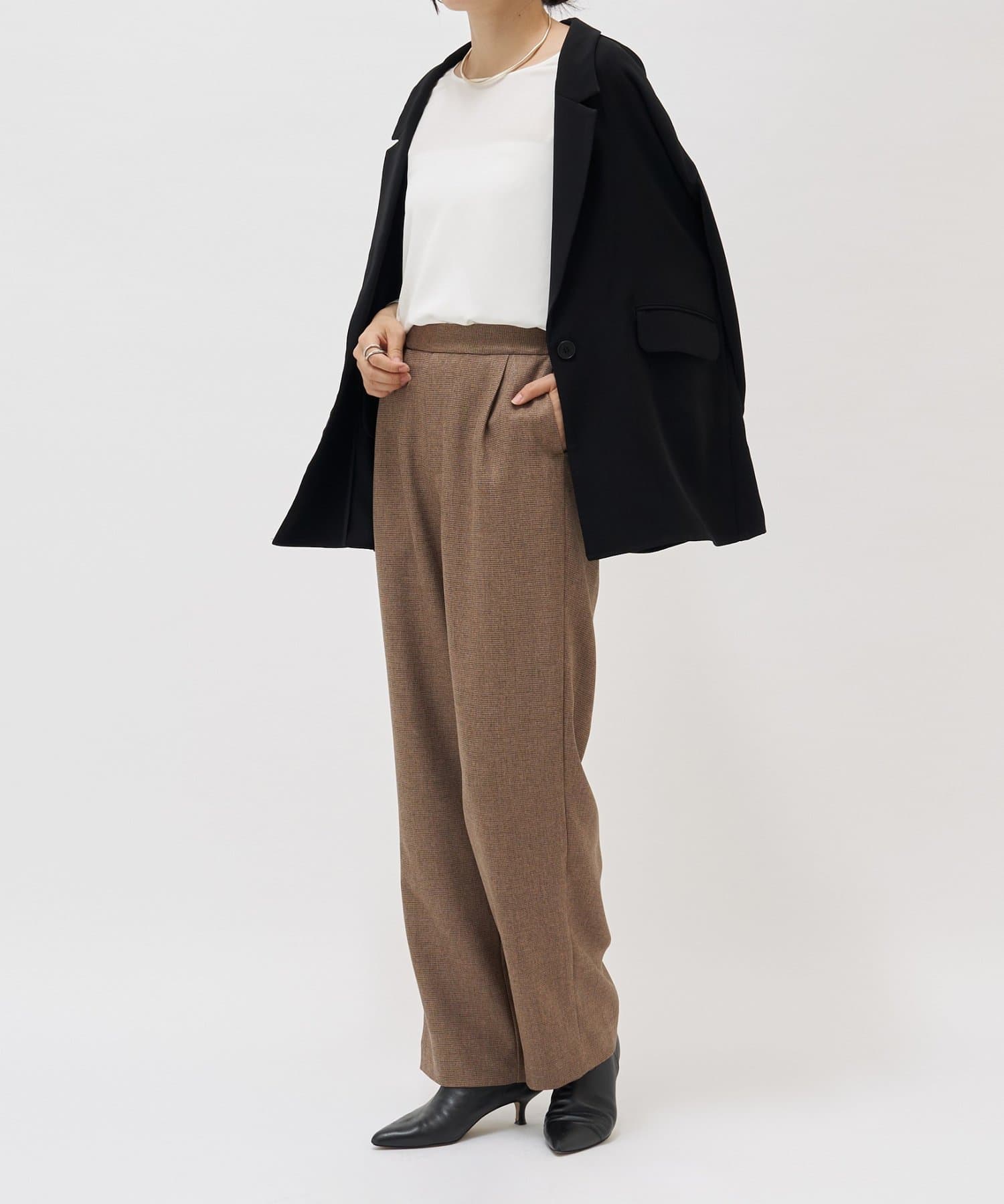 シルエットはすとんと落ちるストレート。タックが入っており、ウエストは後ろ部分のみゴム仕様のため快適に穿いていただけます。