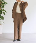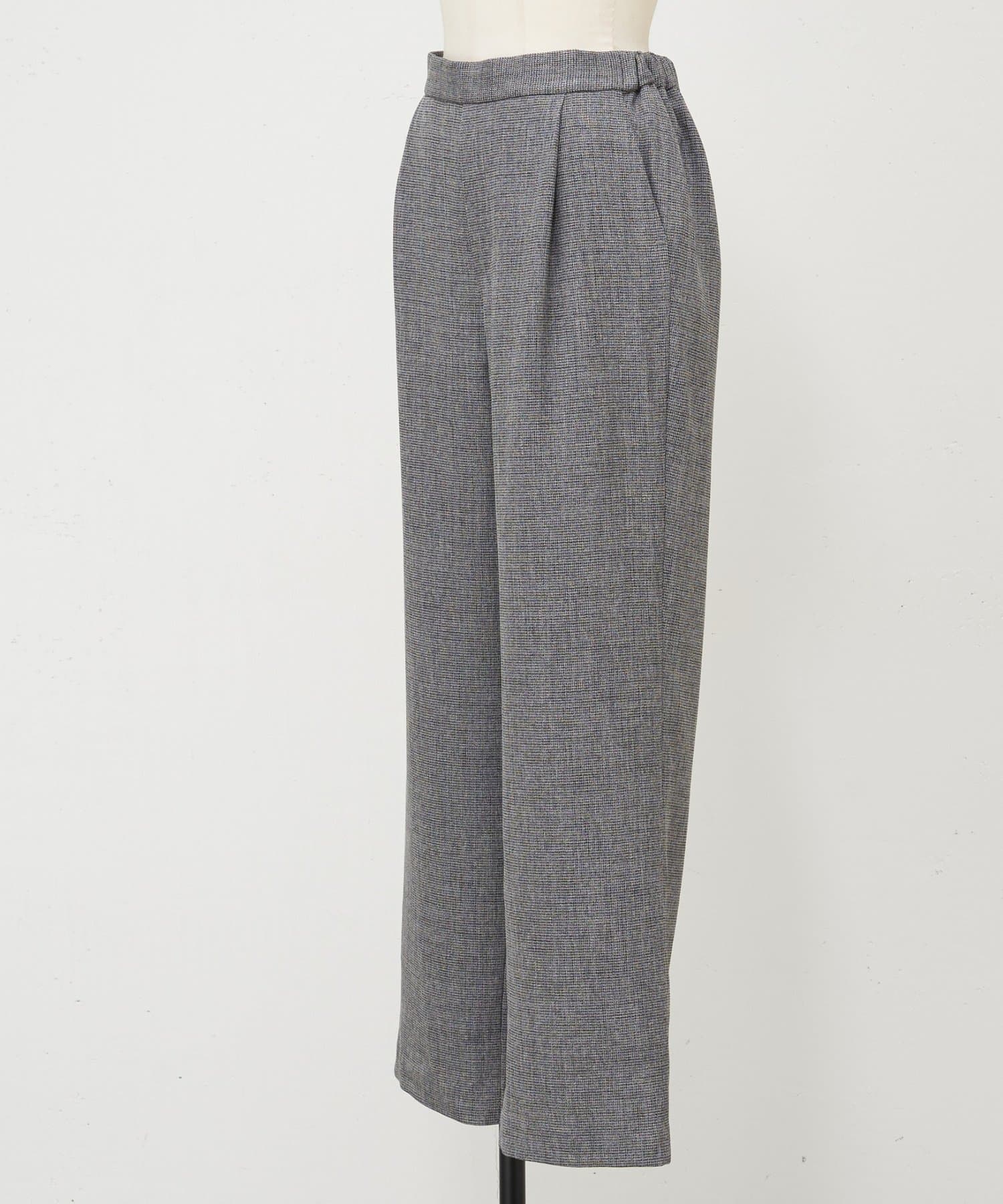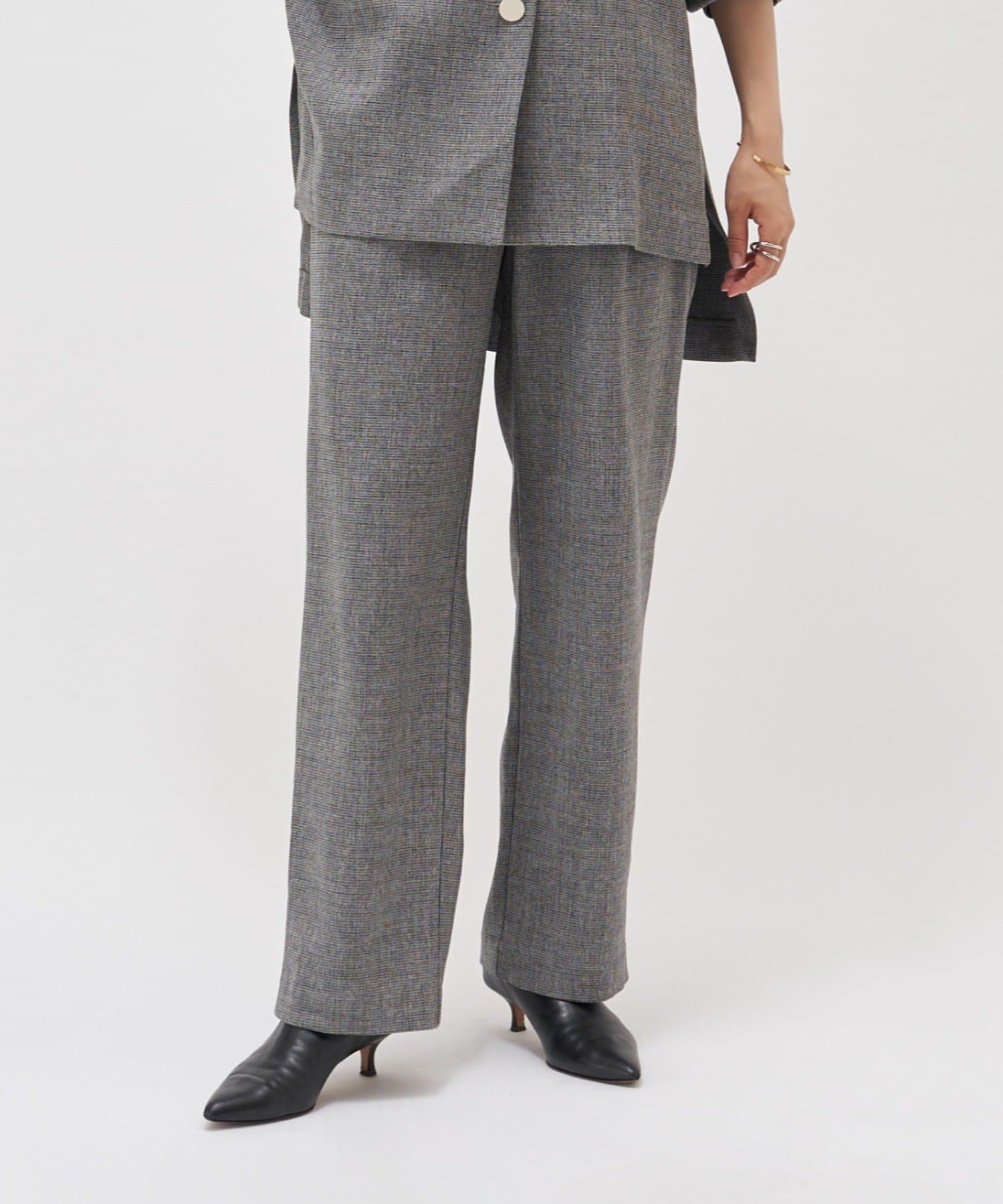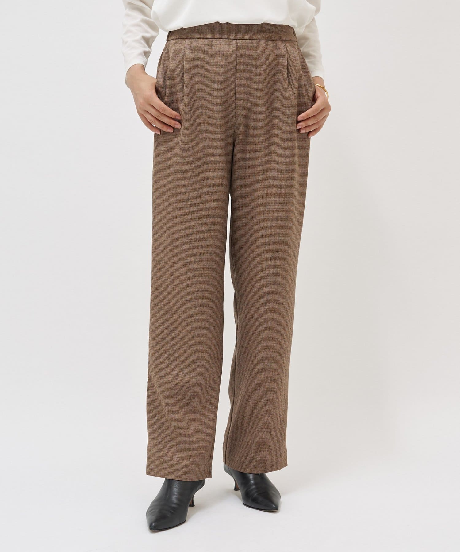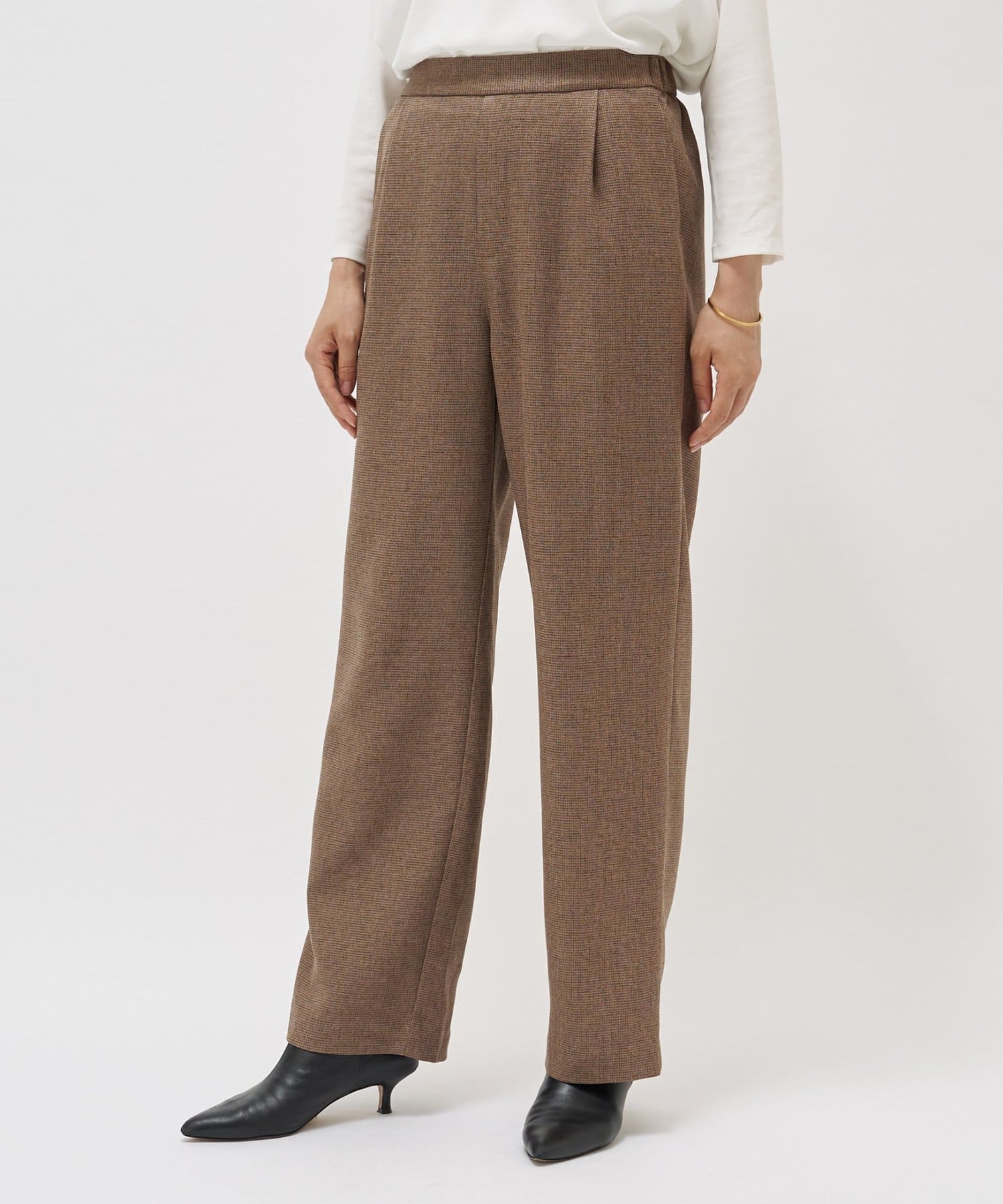 シルエットはすとんと落ちるストレート。タックが入っており、ウエストは後ろ部分のみゴム仕様のため快適に穿いていただけます。