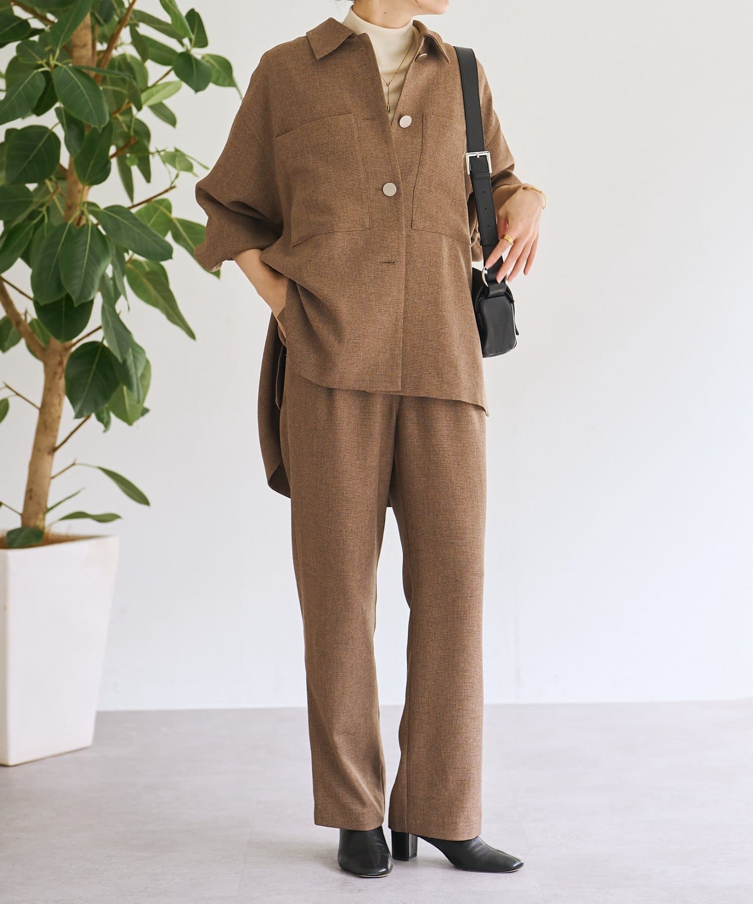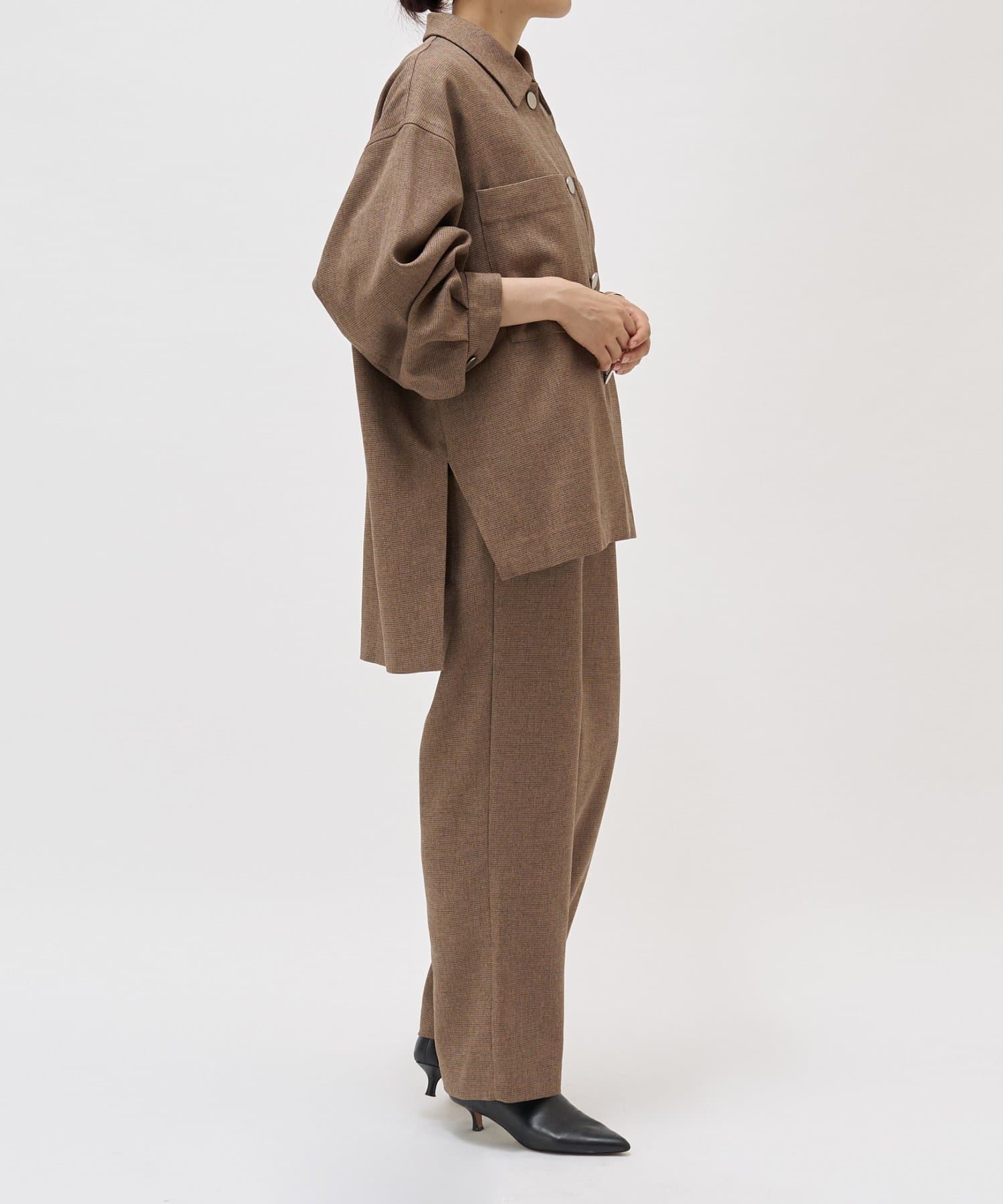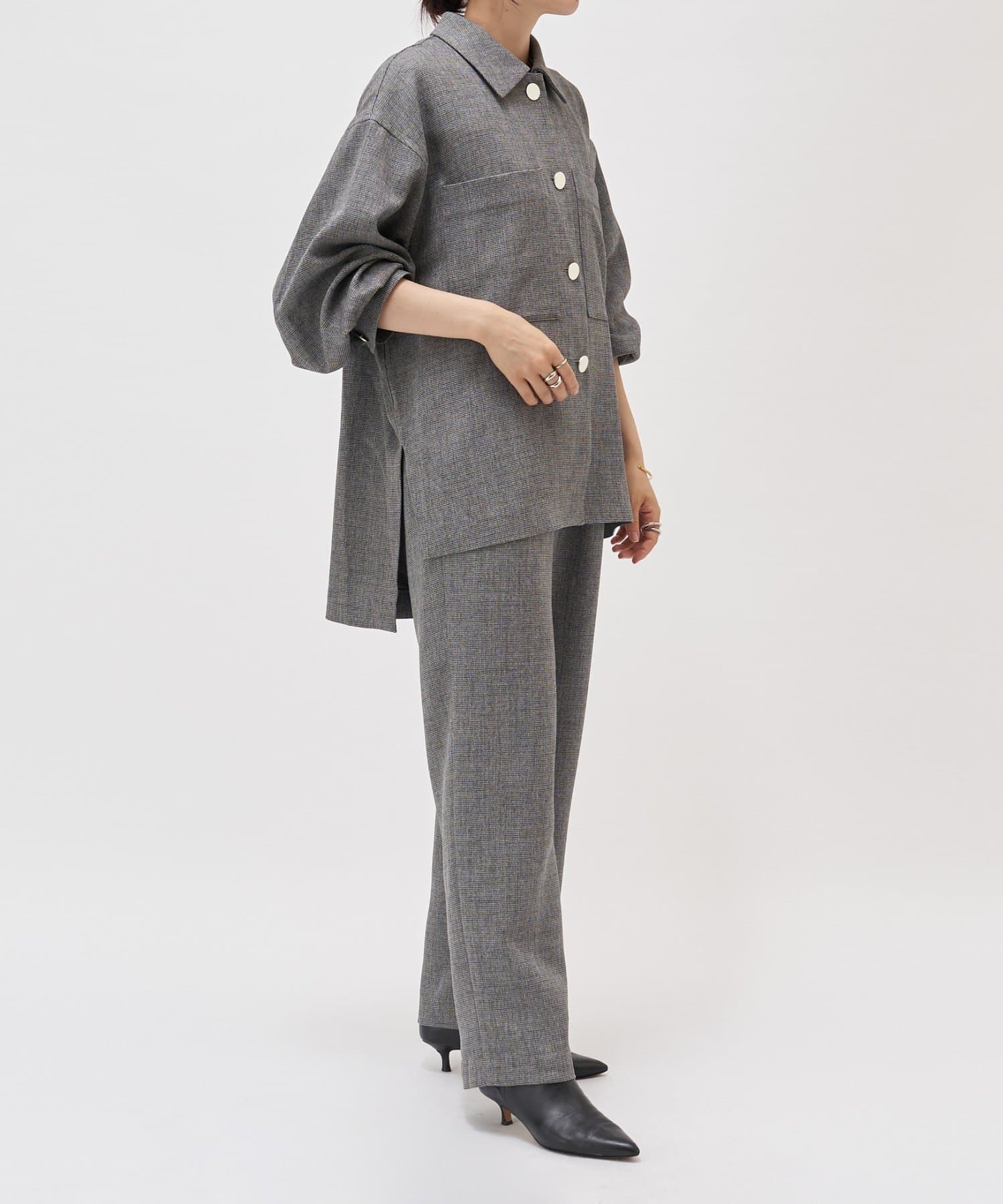 同素材のメランジピンへッドシャツジャケットでセットアップもおすすめです。