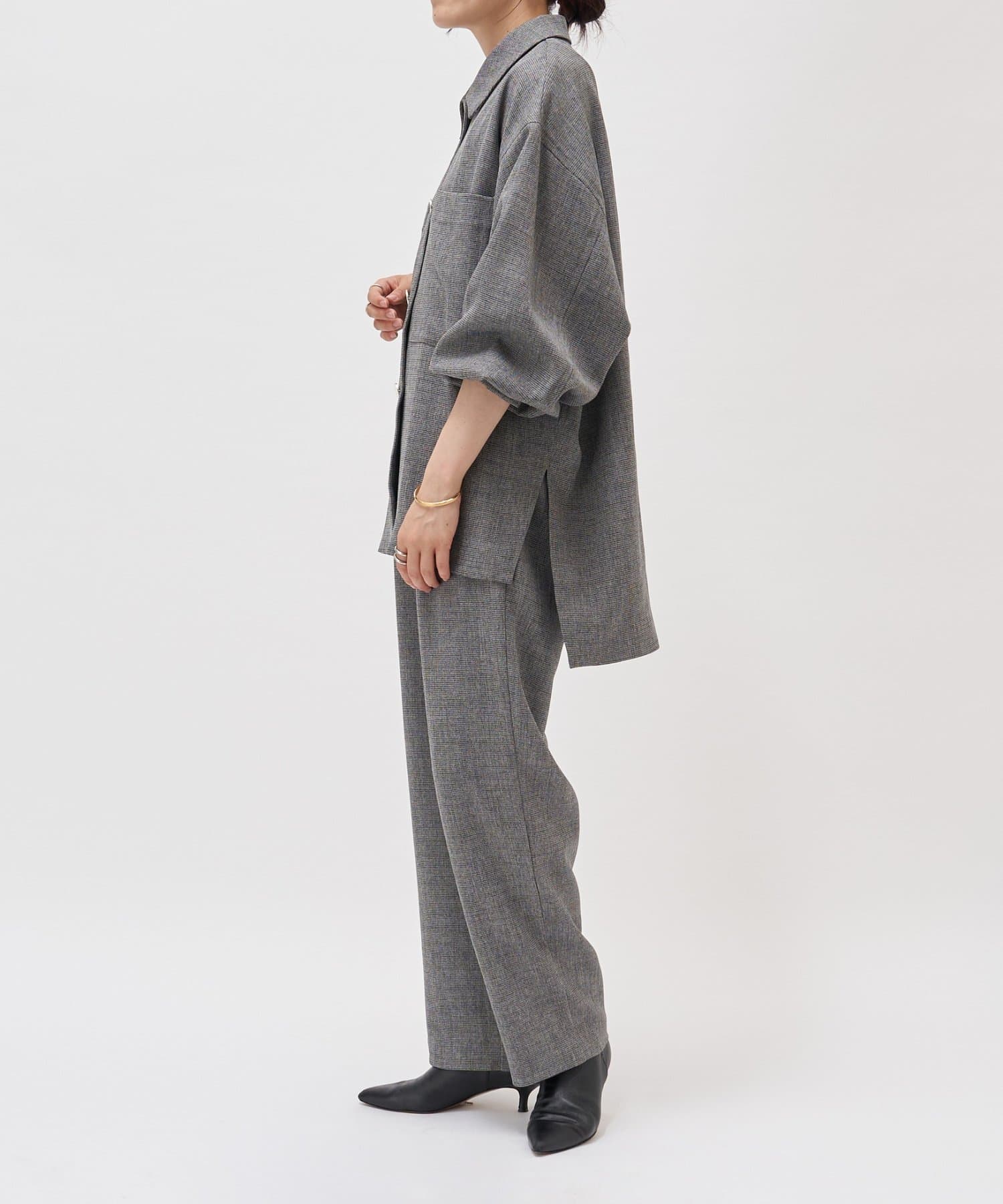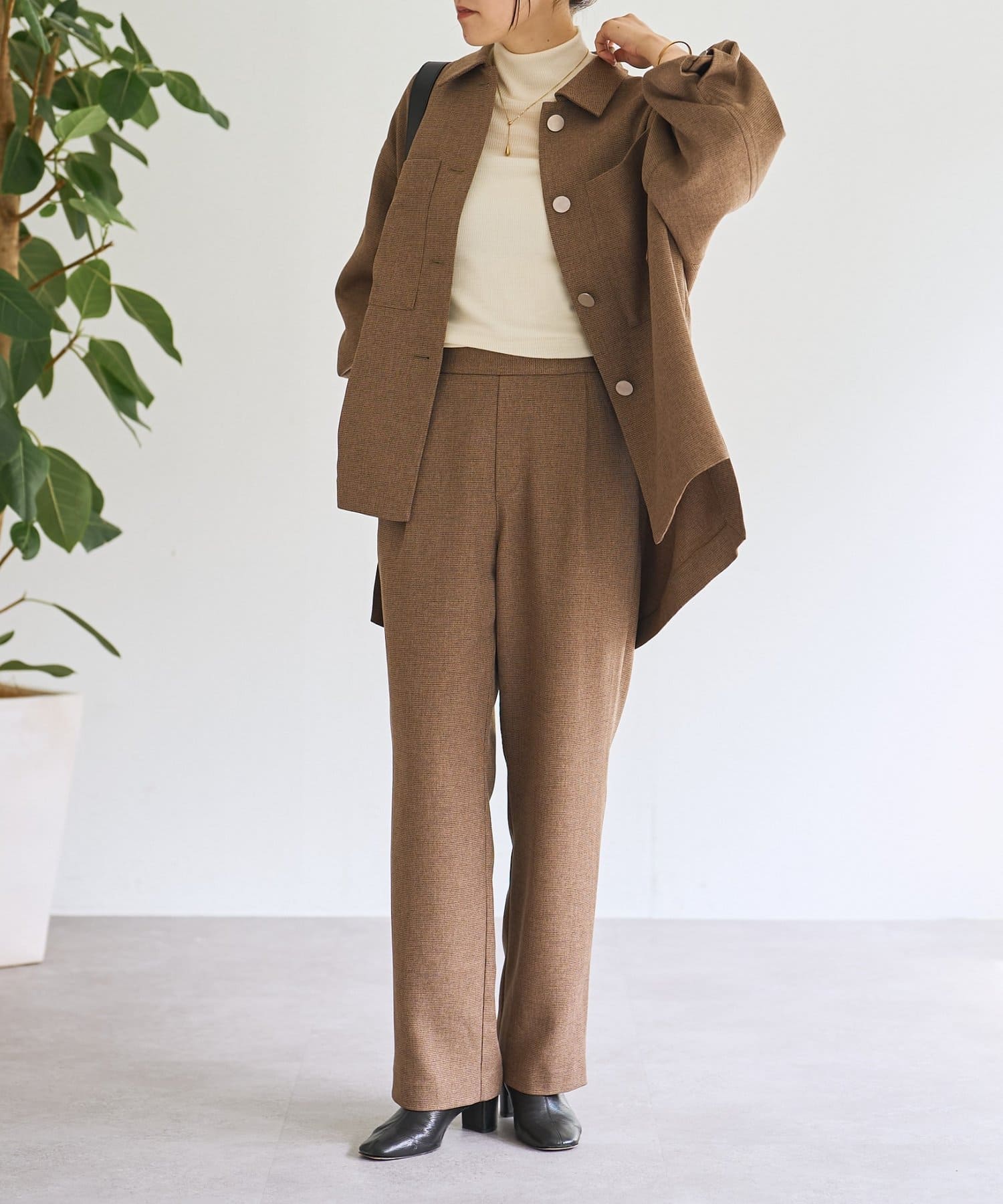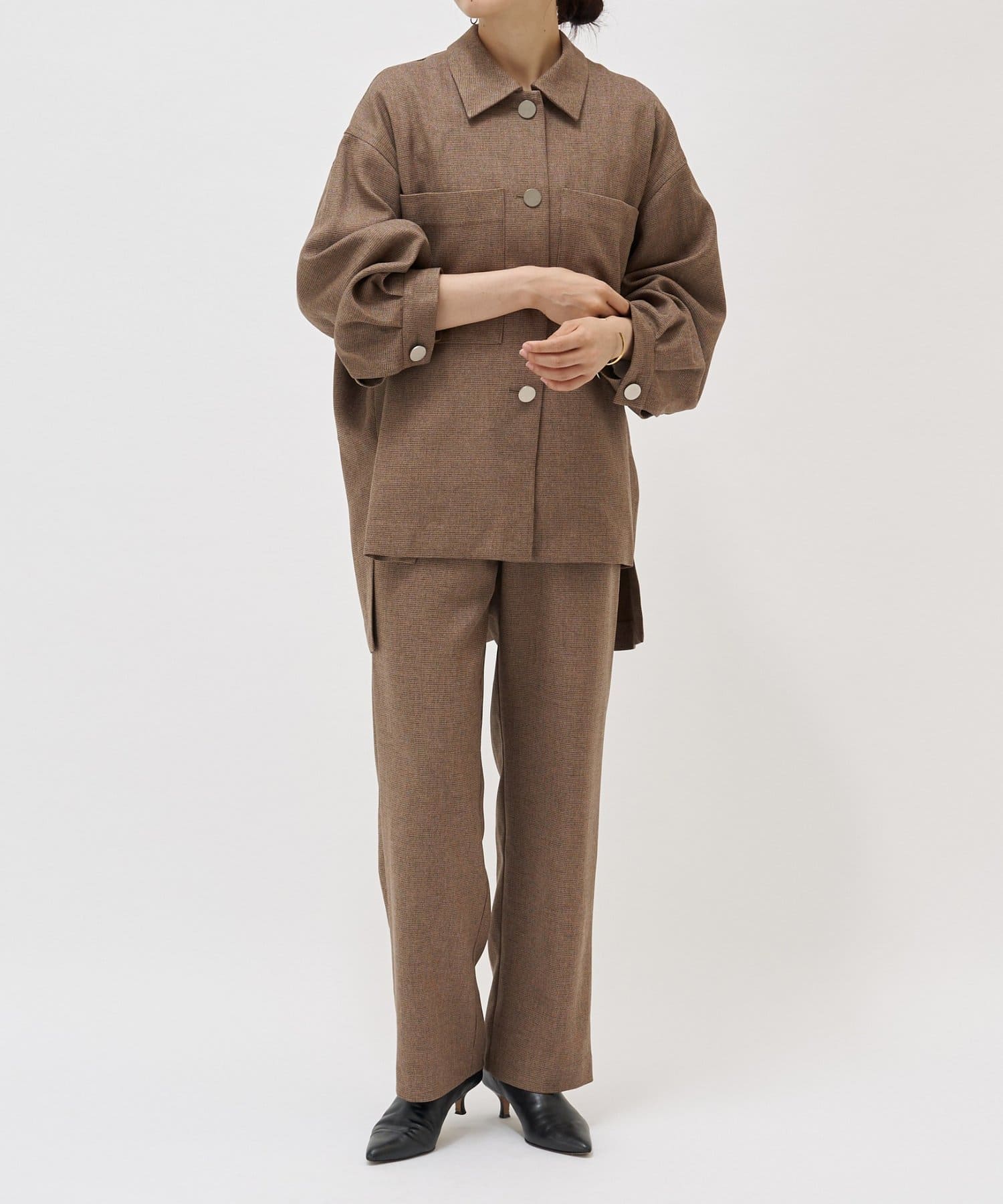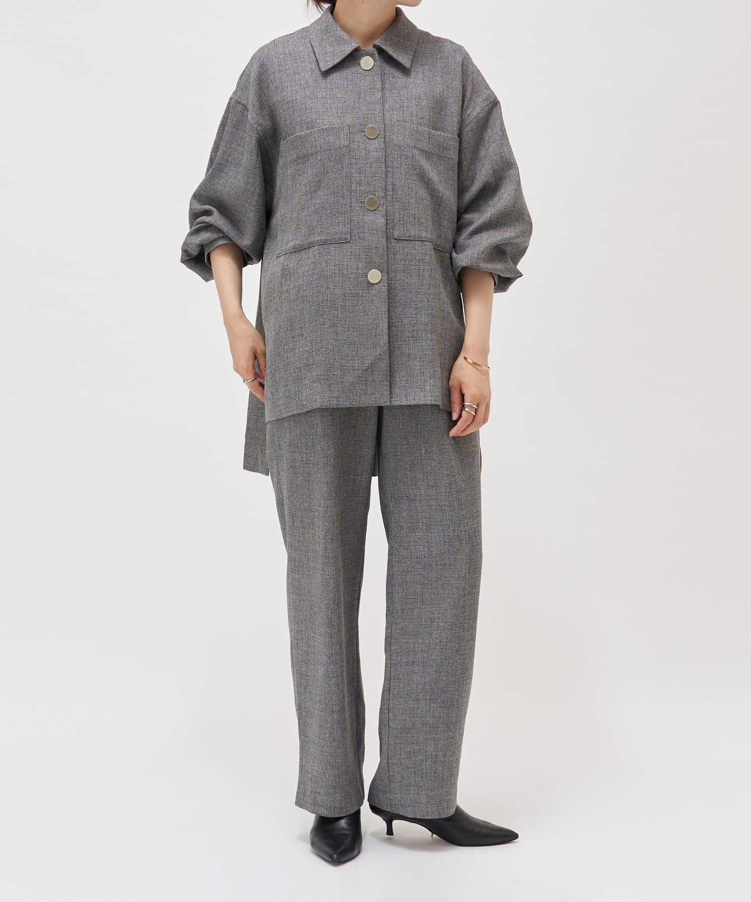 同素材のメランジピンへッドシャツジャケットでセットアップもおすすめです。