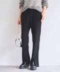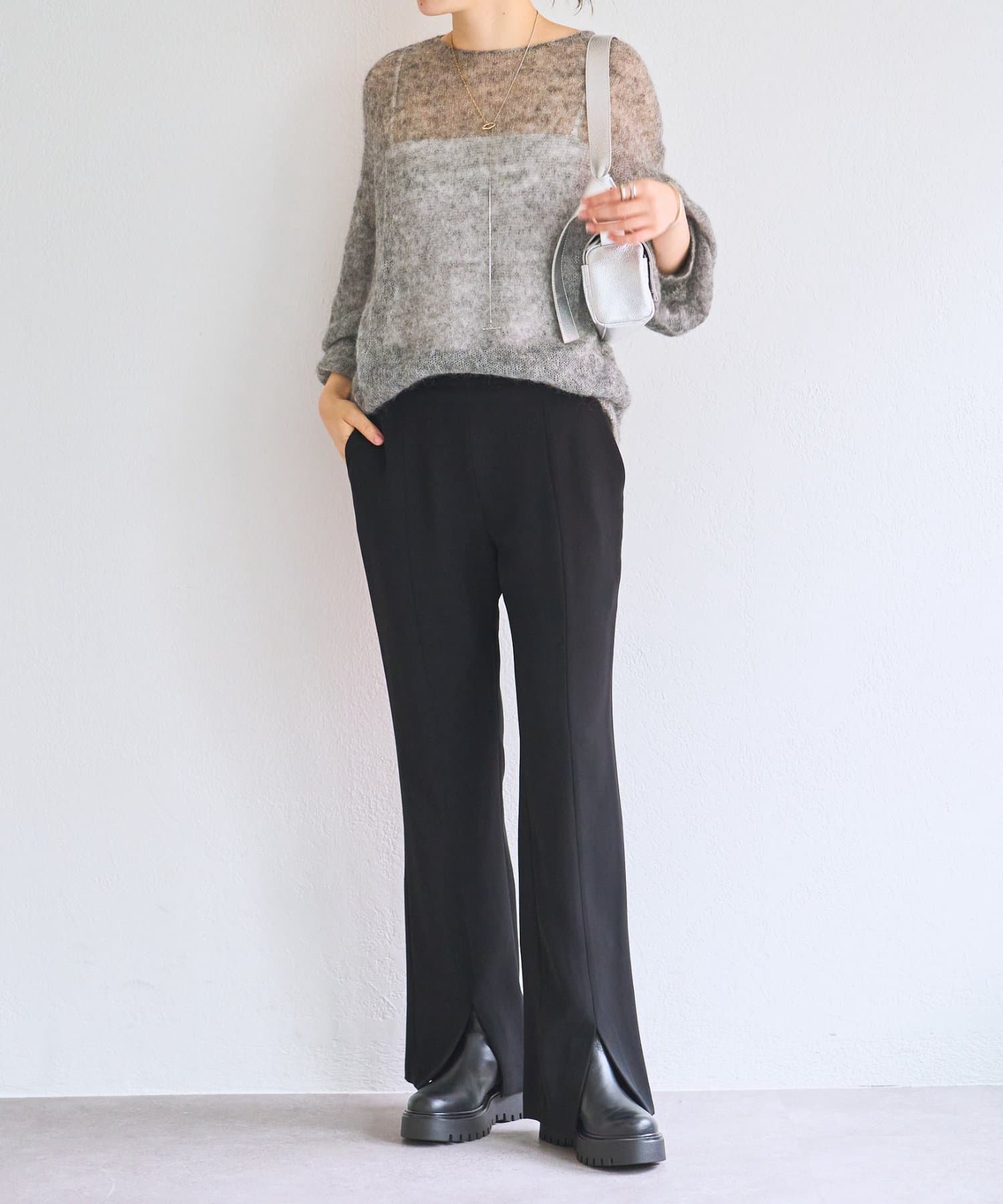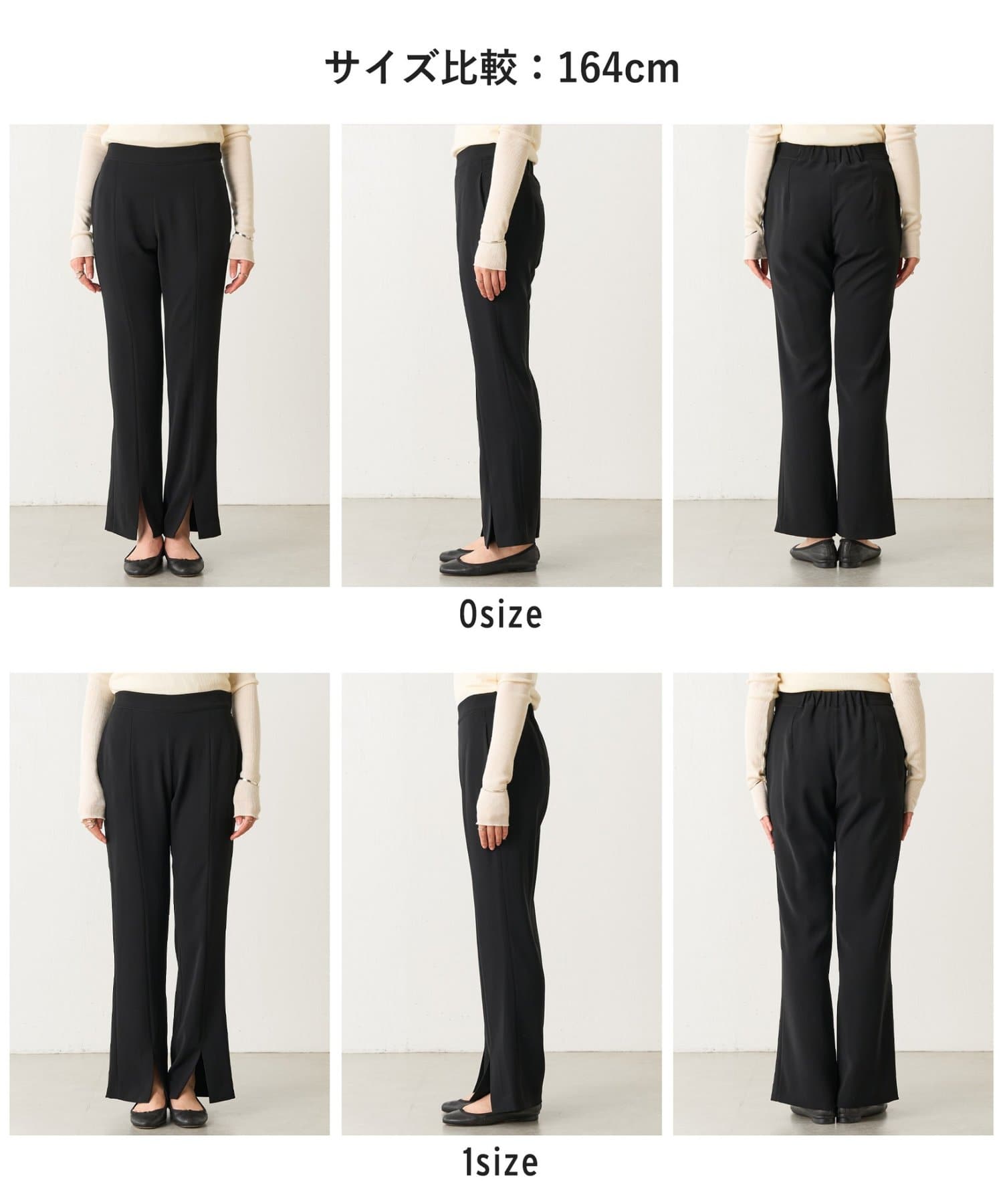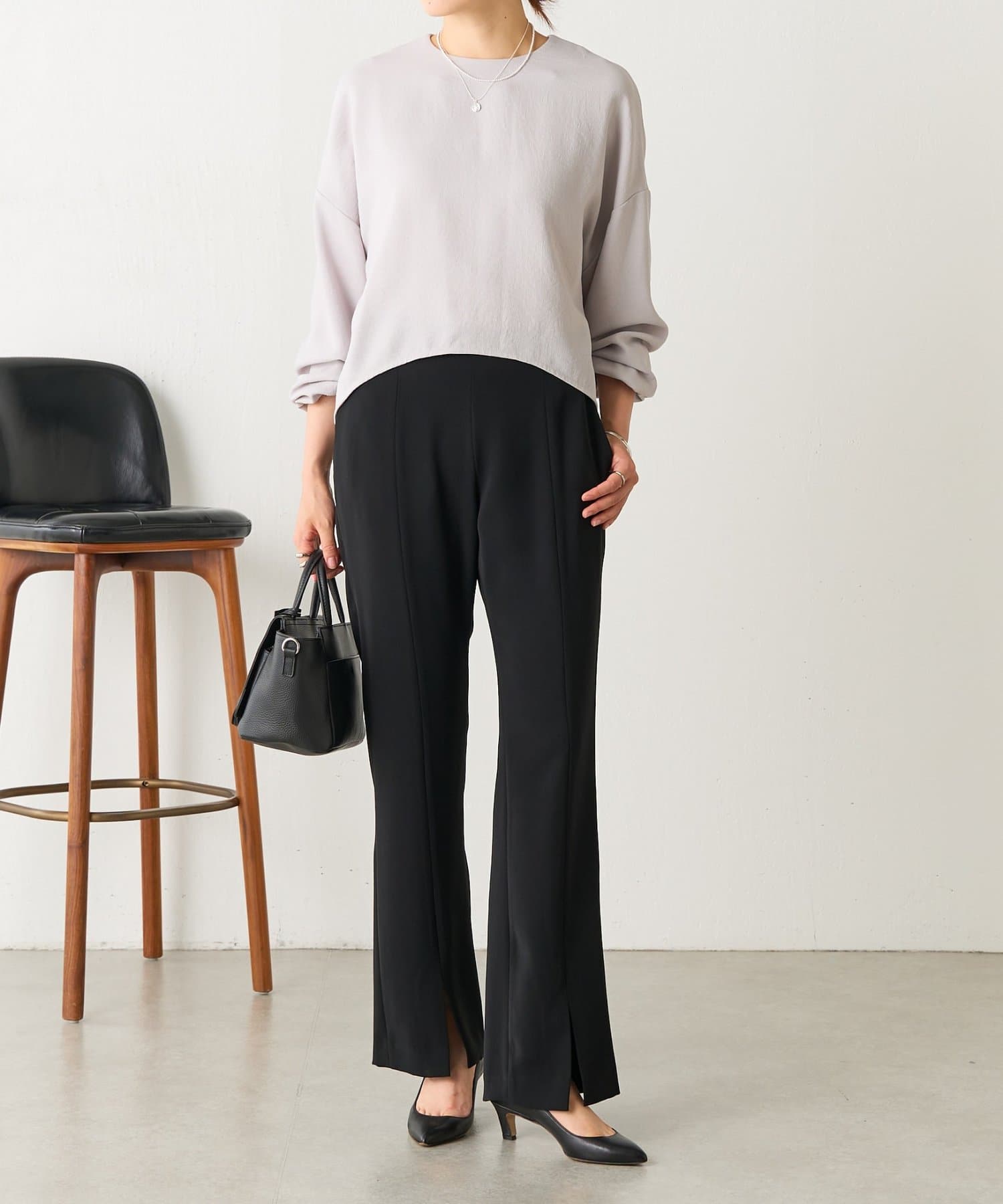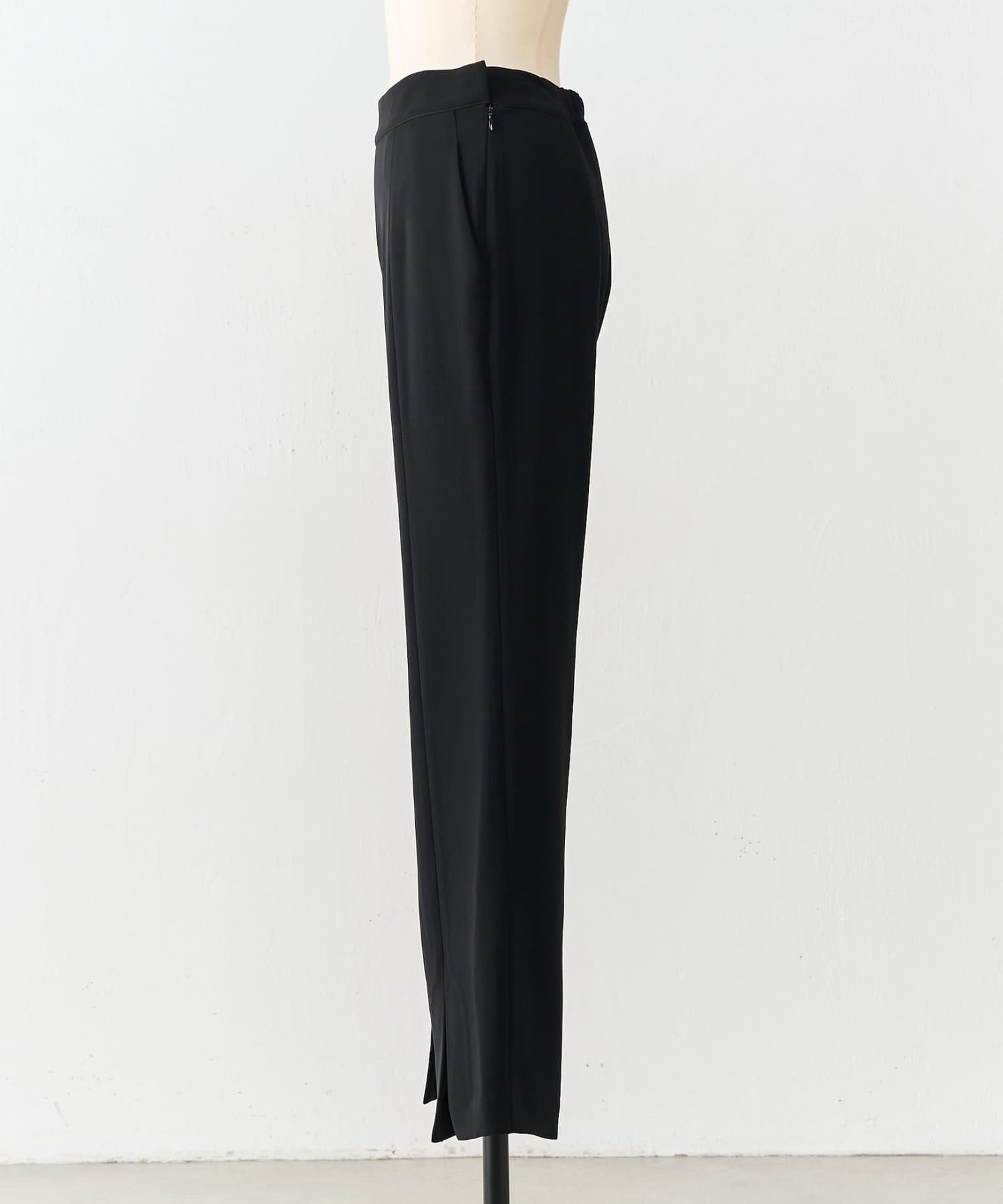 フロント部分はセンタープレスではなくセンターシーム(縫い目)を入れることできちんと感があり、裾のフロントスリットがデザインポイント。