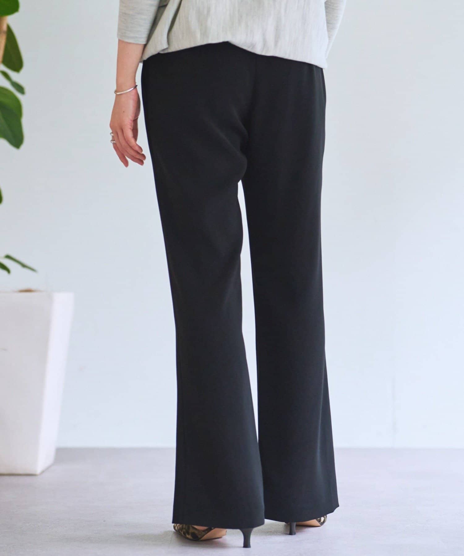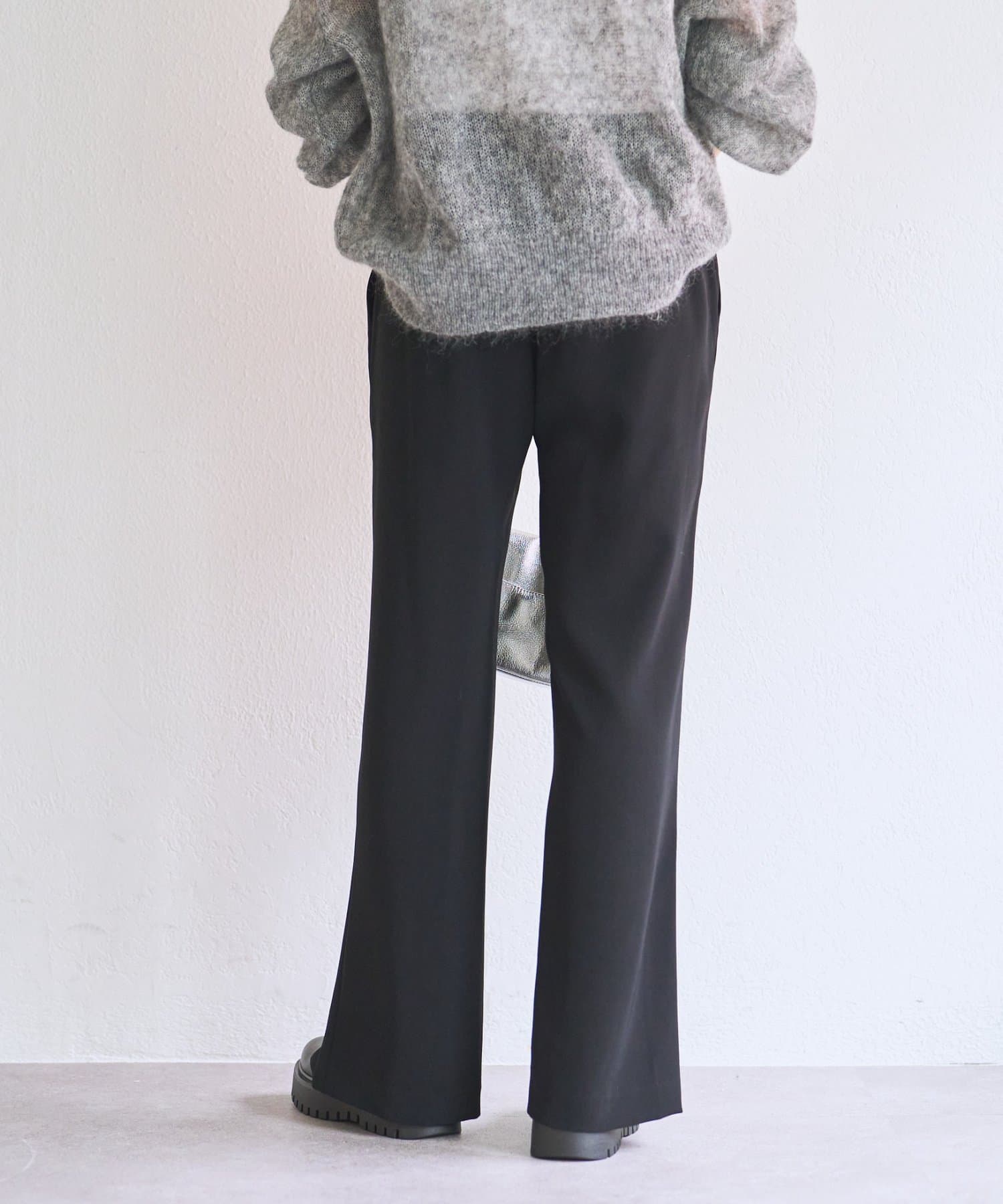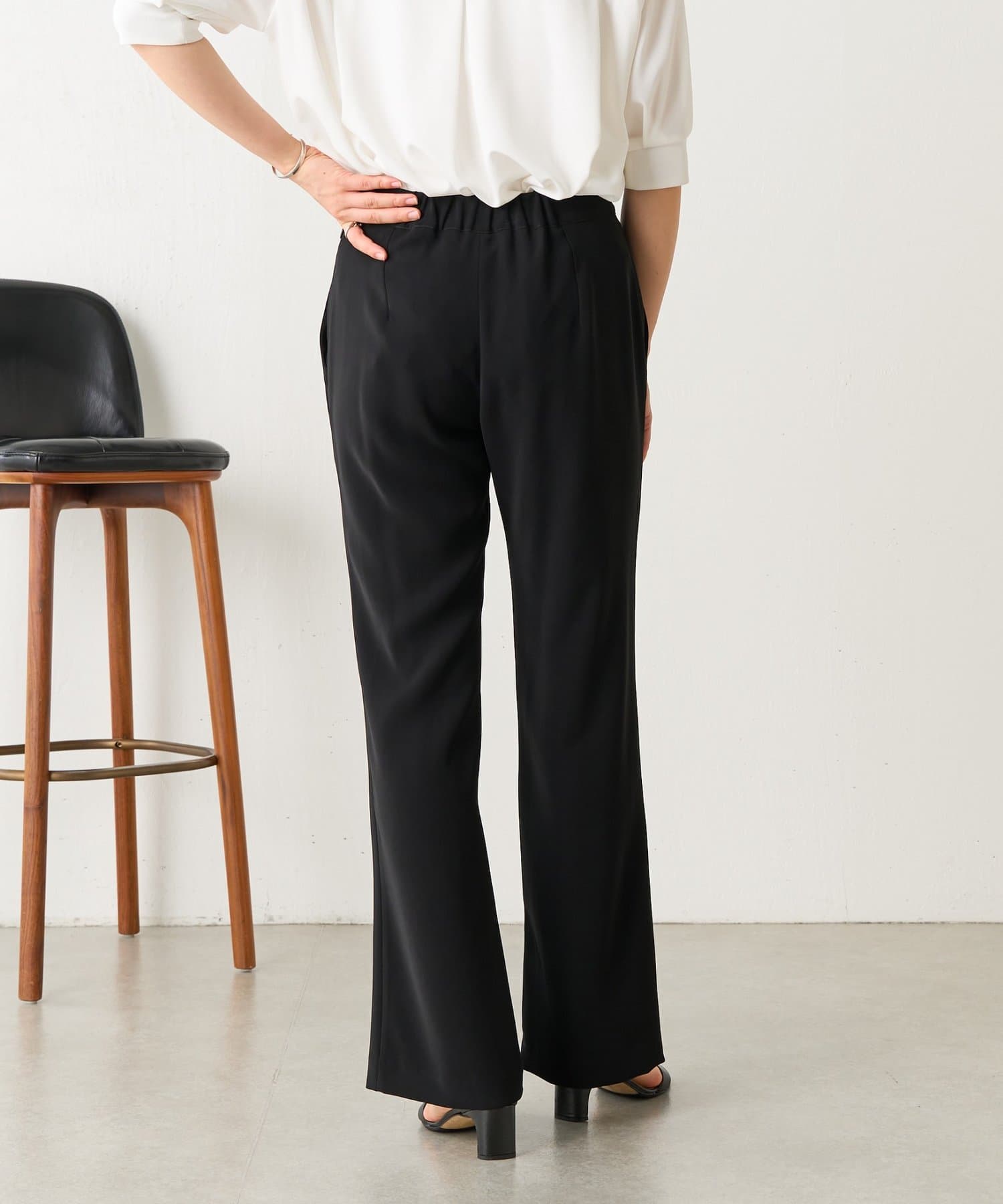 滑らかな肌触りのトロミ素材のダブルクロス生地を使用した、きれいめにはけるストレッチパンツ。