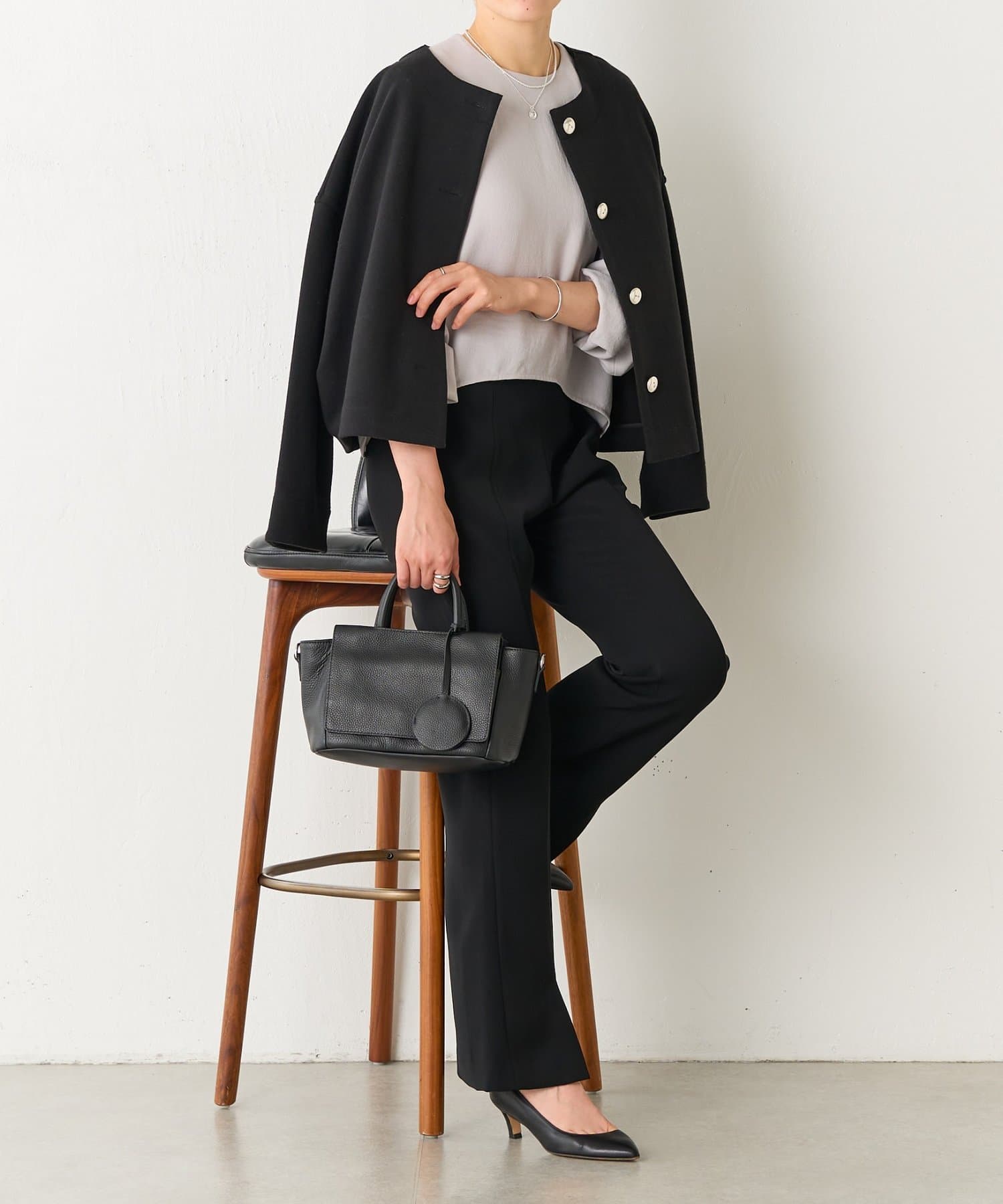 同素材のトロミジャケットと合わせてセットアップのコーディネートもおすすめ。