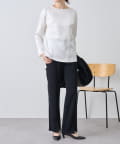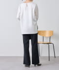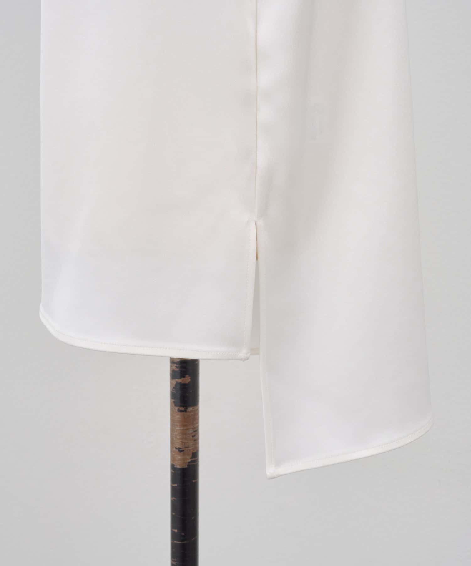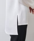 裾はスクエアカットで、前後差のある着丈。裾をボトムスにインするとまた印象がかわります。