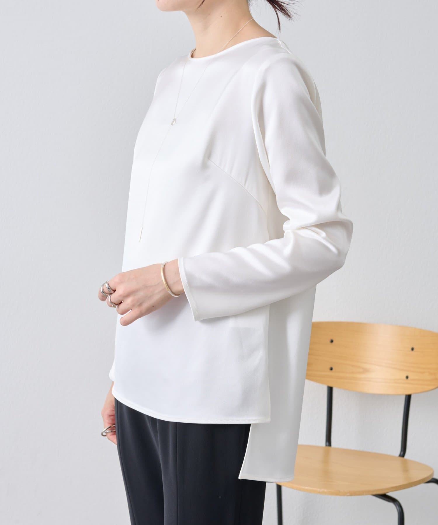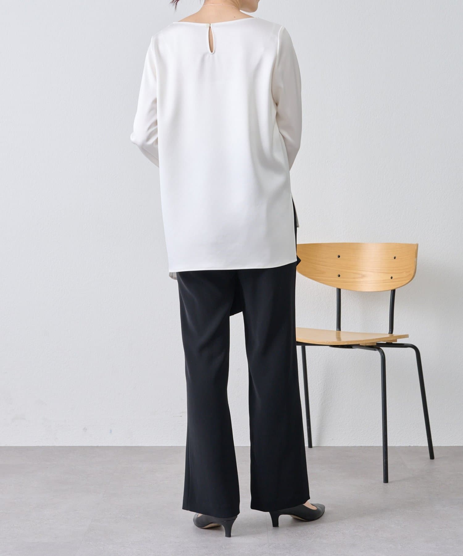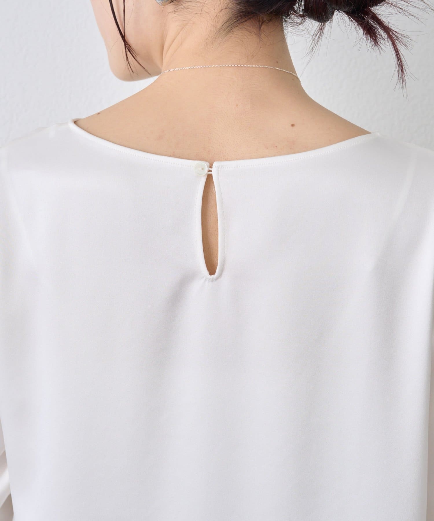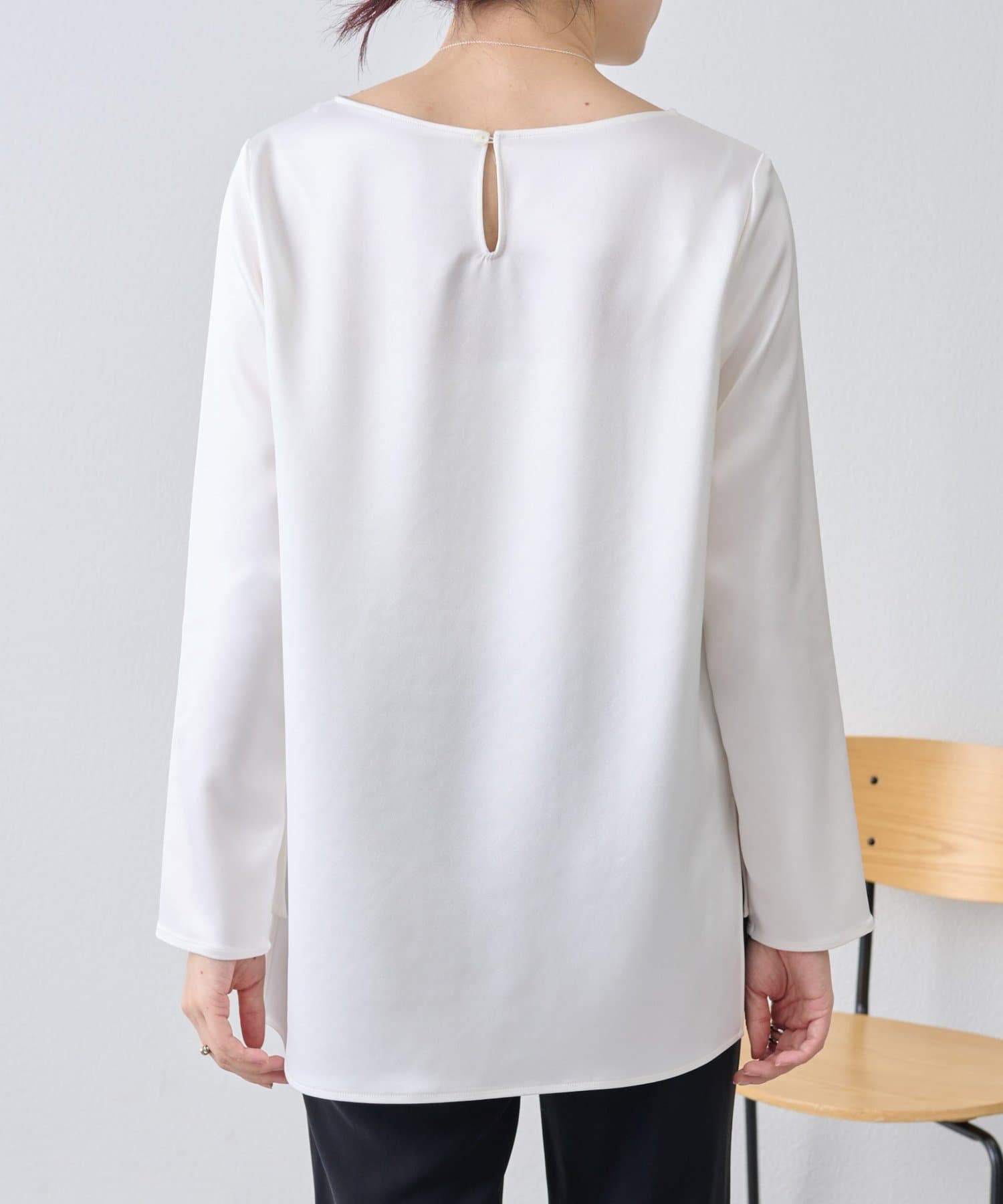 艶のあるドレープ感が美しく華やかな印象のプルオーバーブラウス。