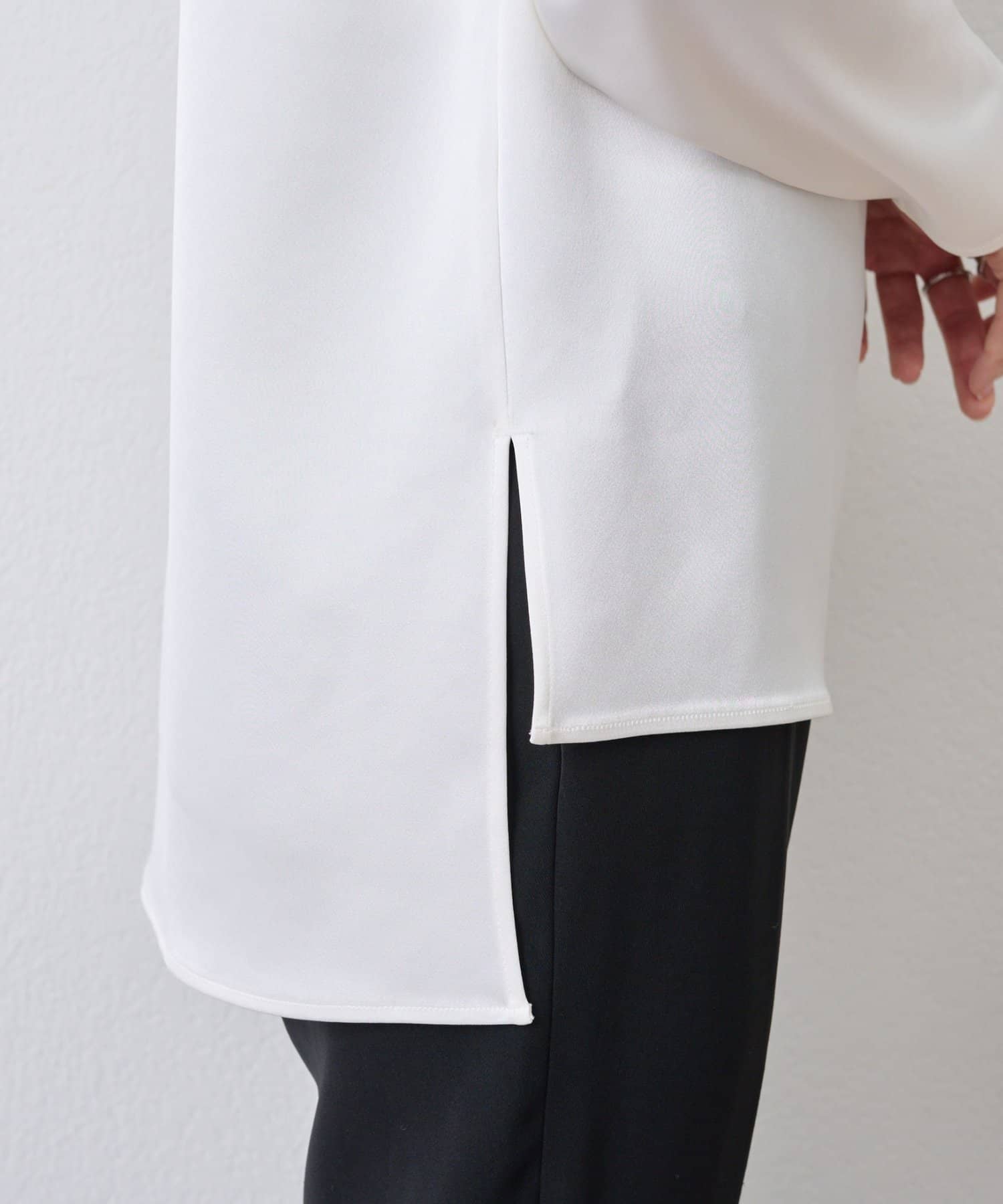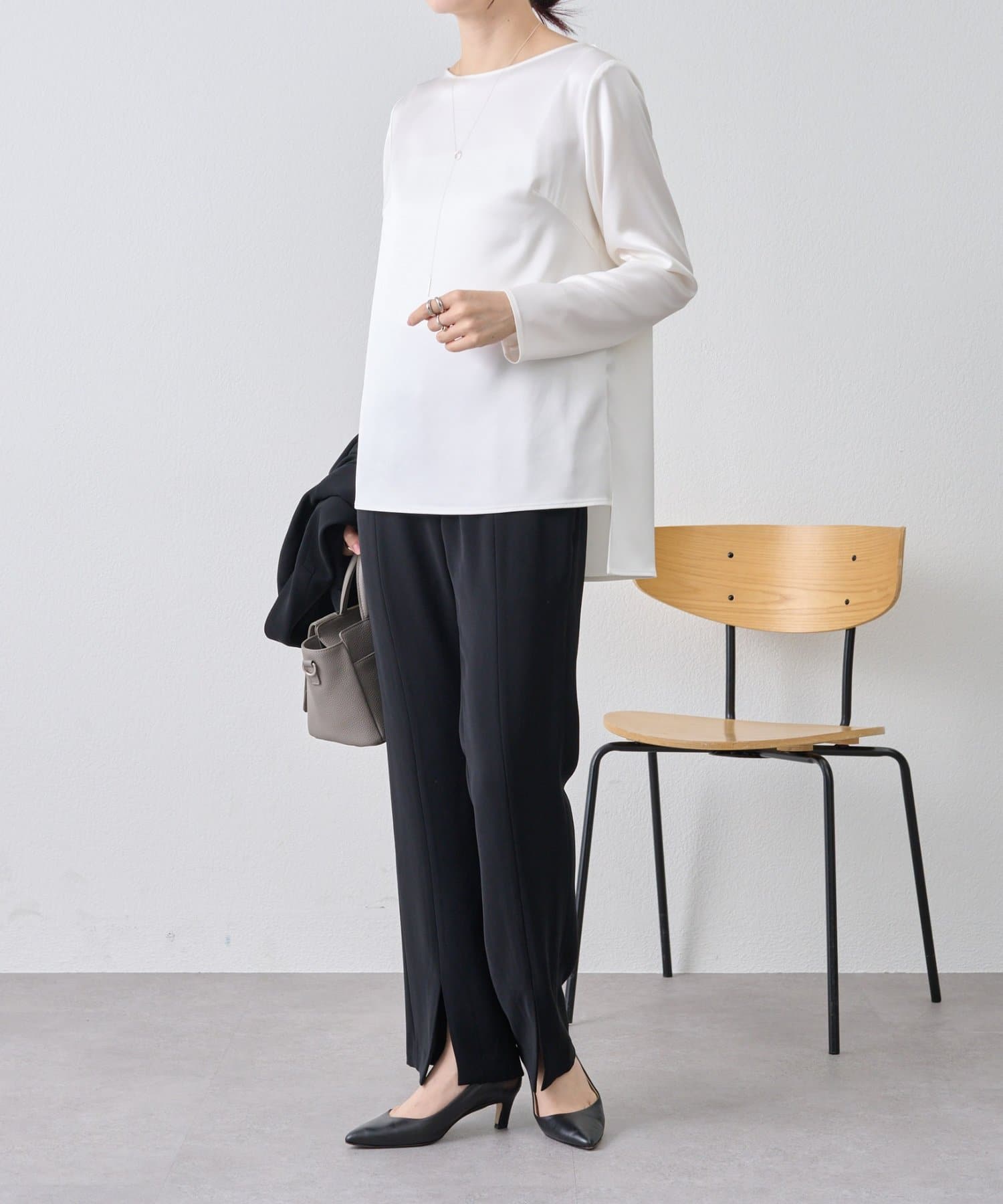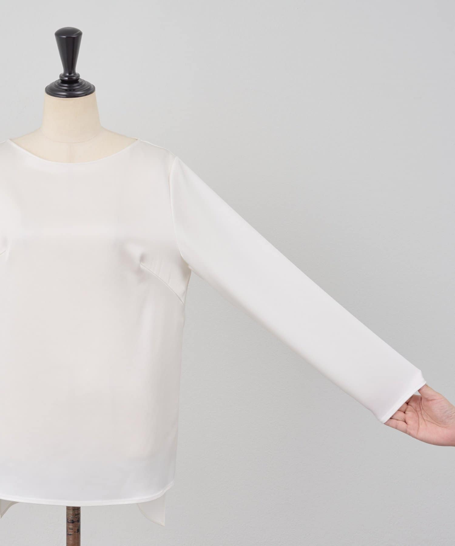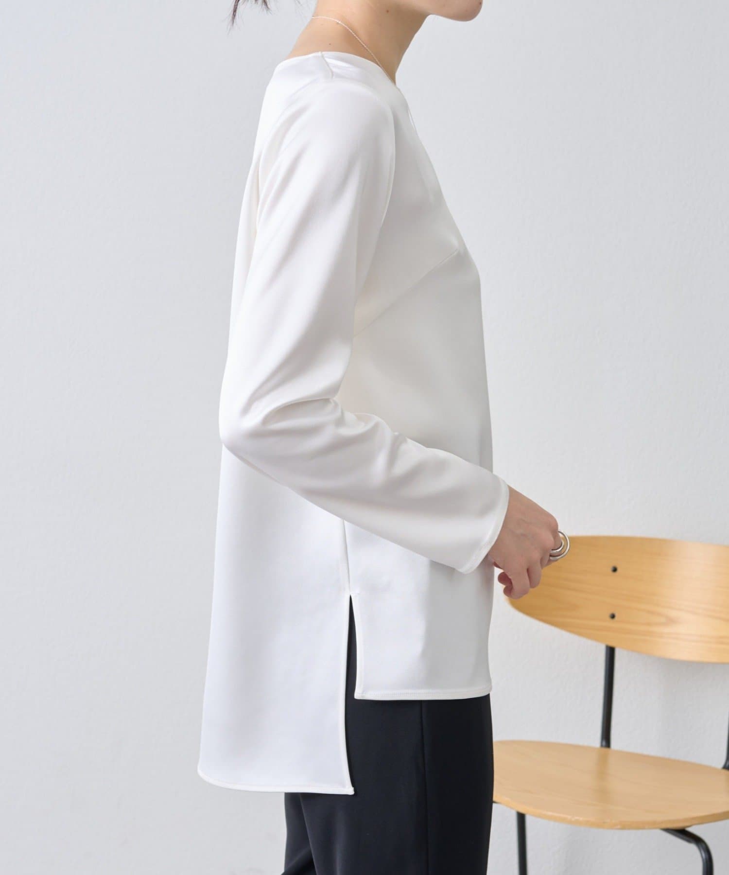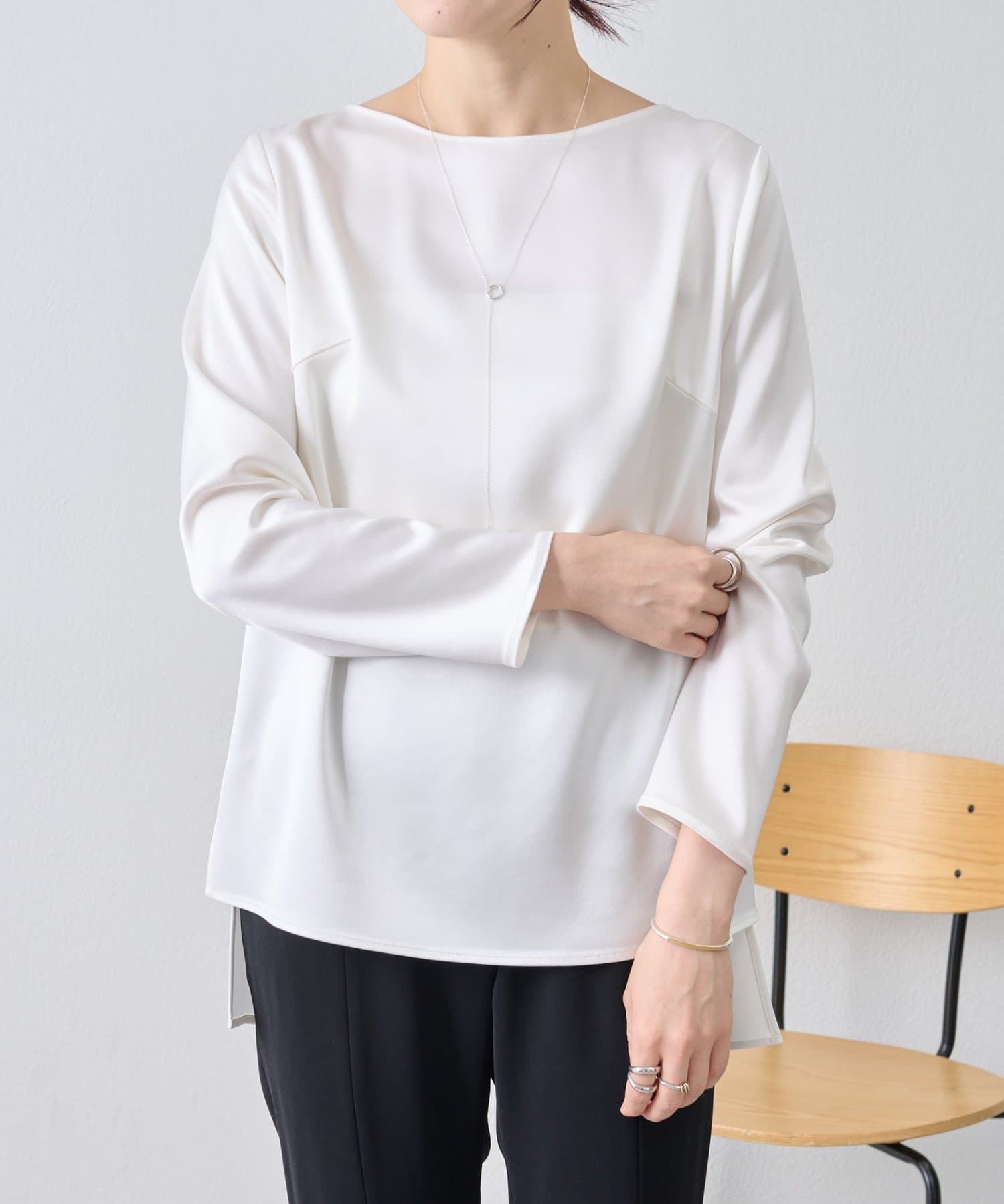 艶のあるドレープ感が美しく華やかな印象のプルオーバーブラウス。