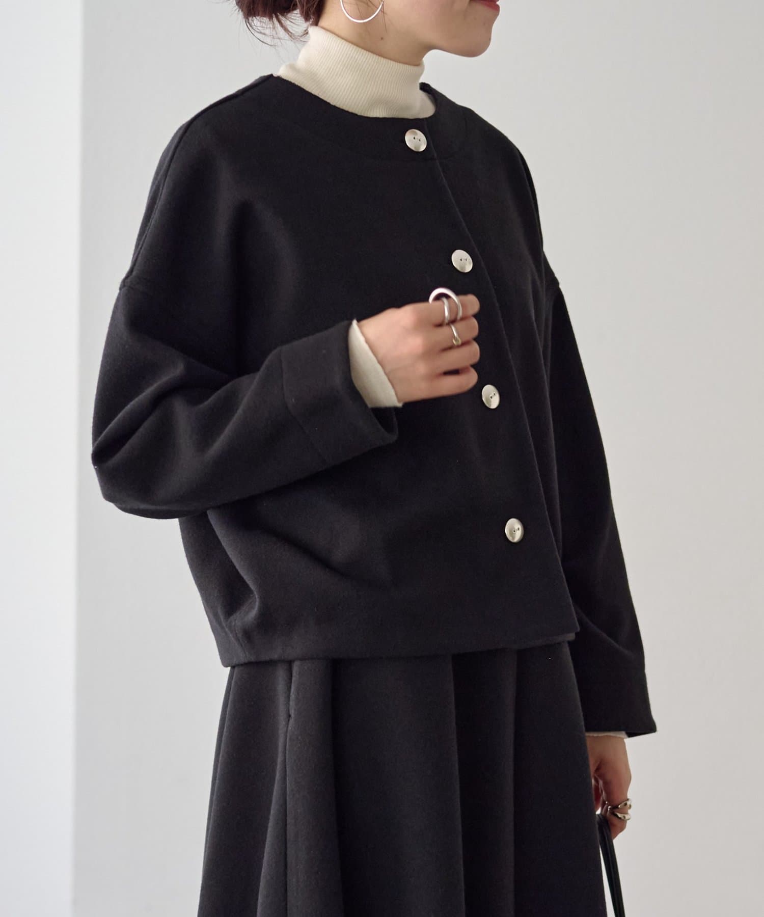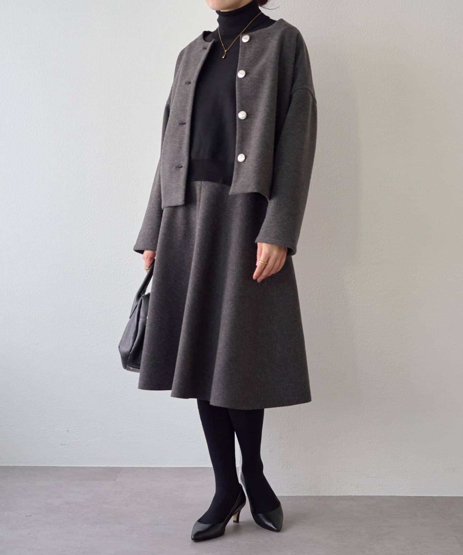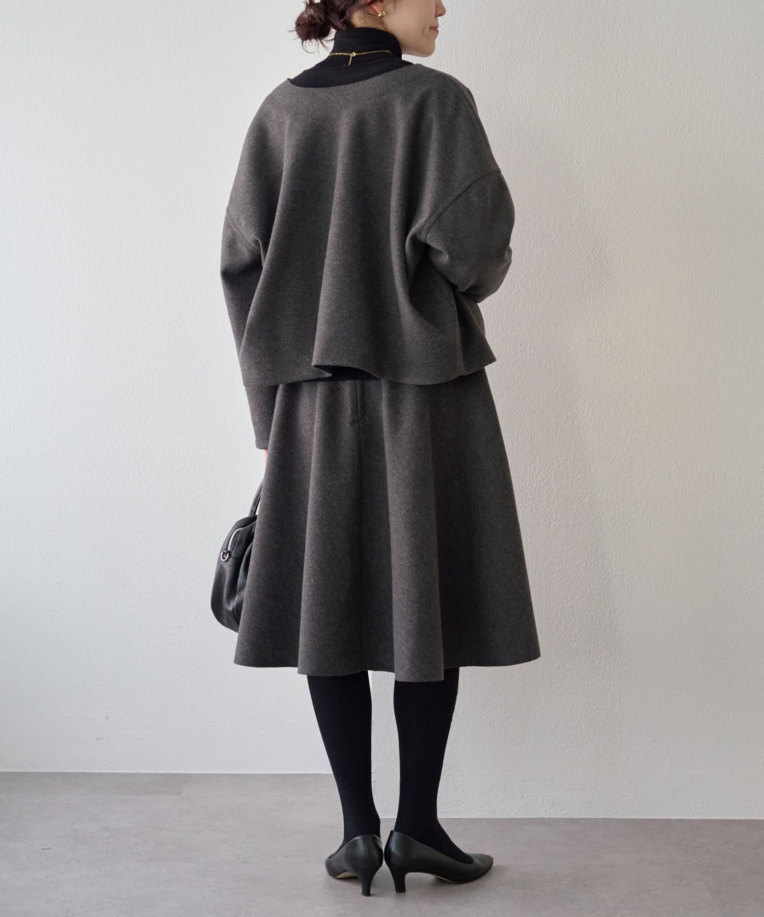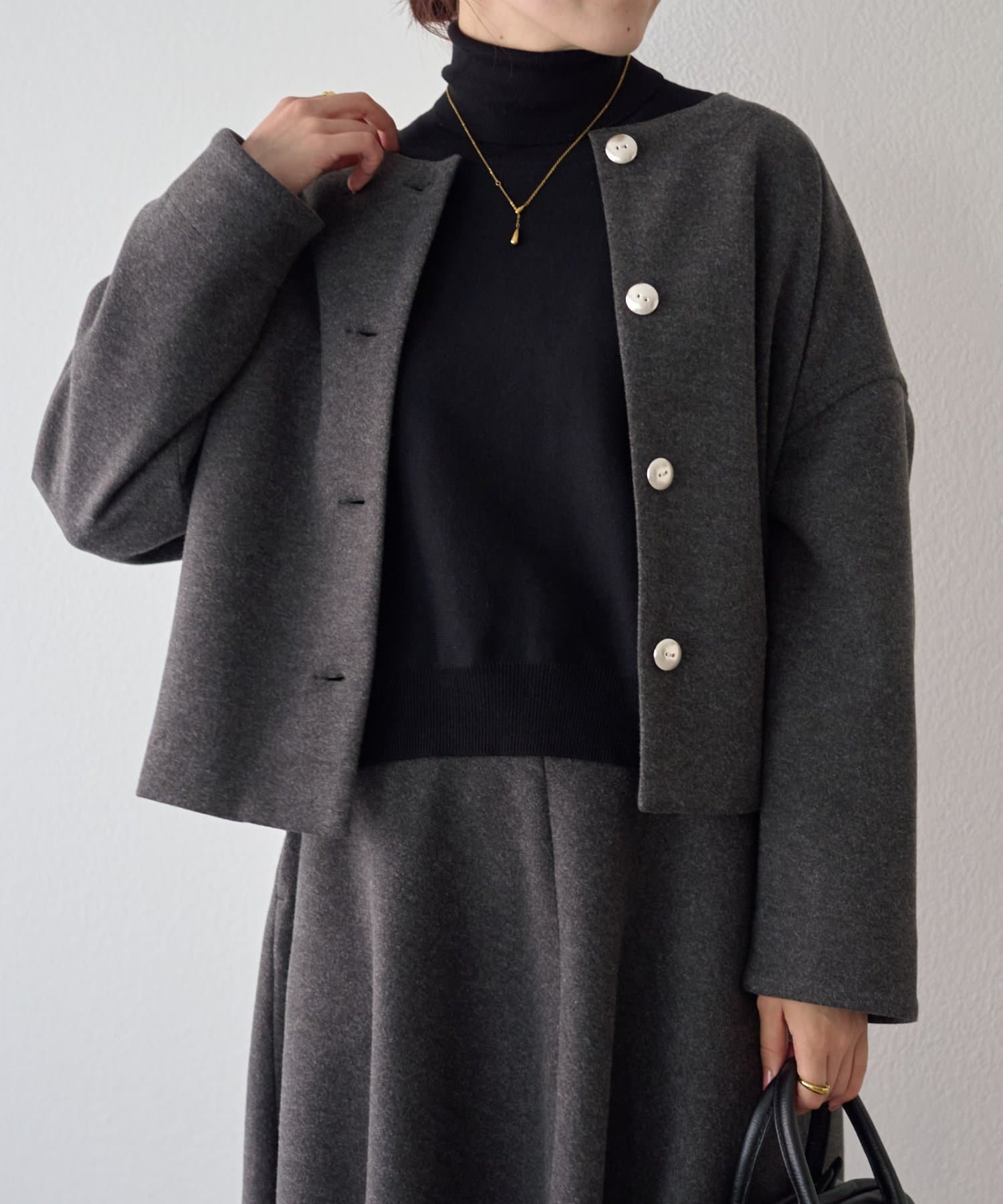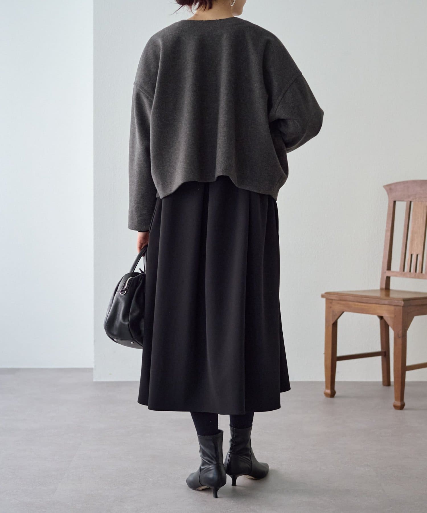 ウール見えしますが、ポリエステル素材なので、とっても軽いのに温かみのあるアイテム。