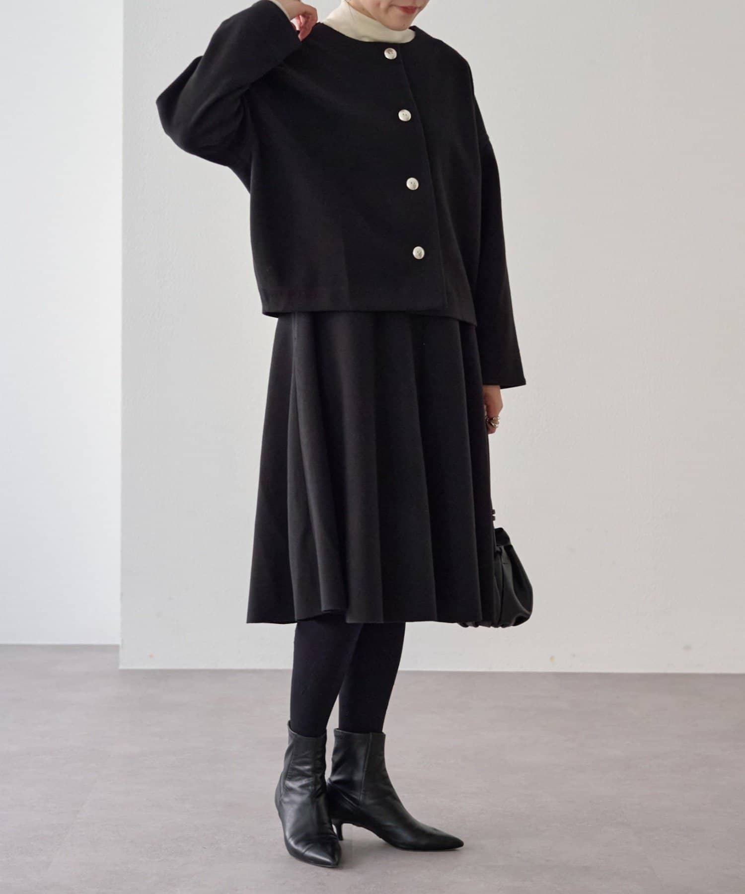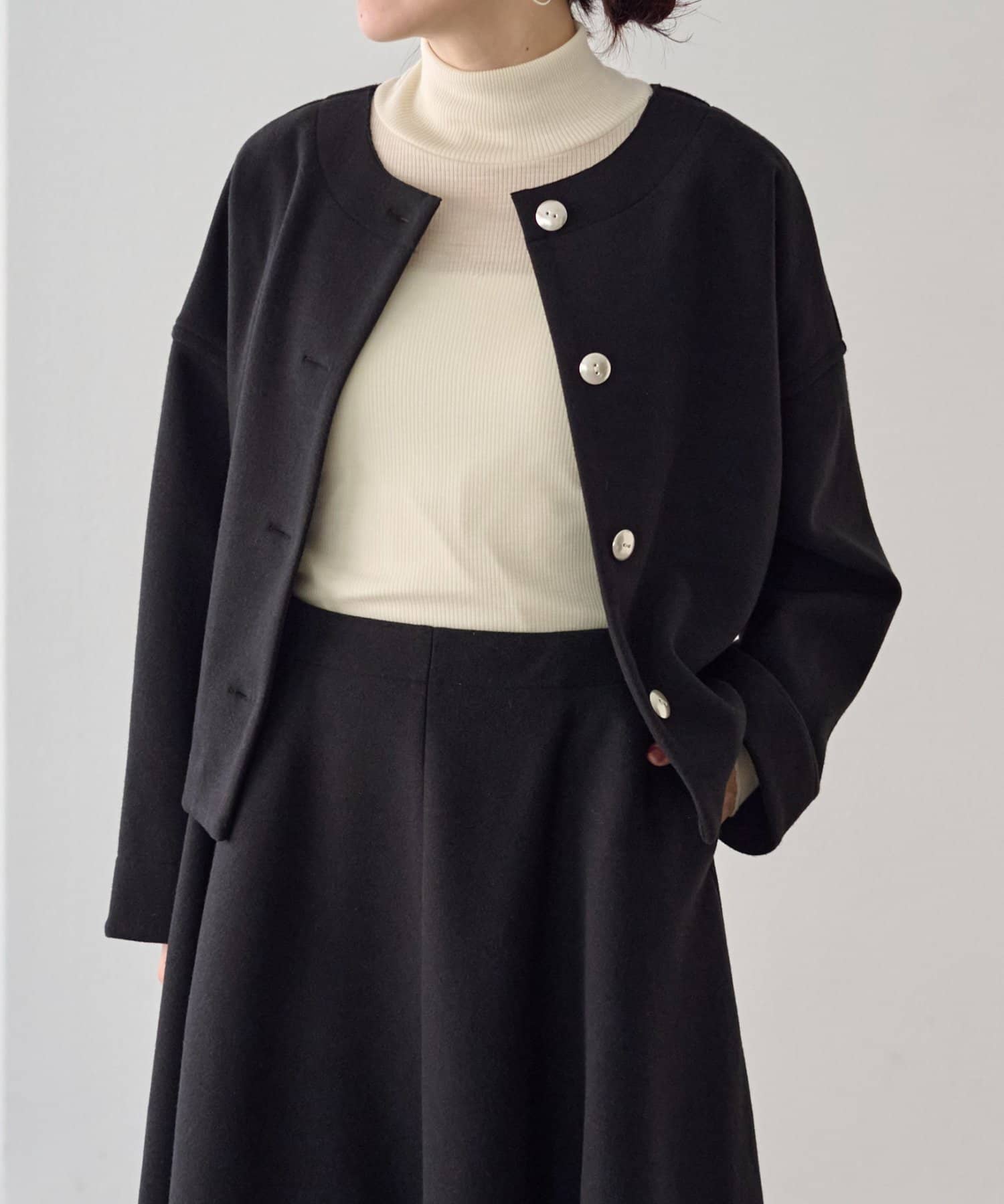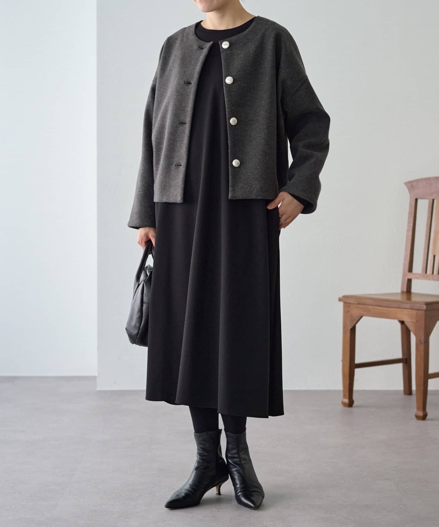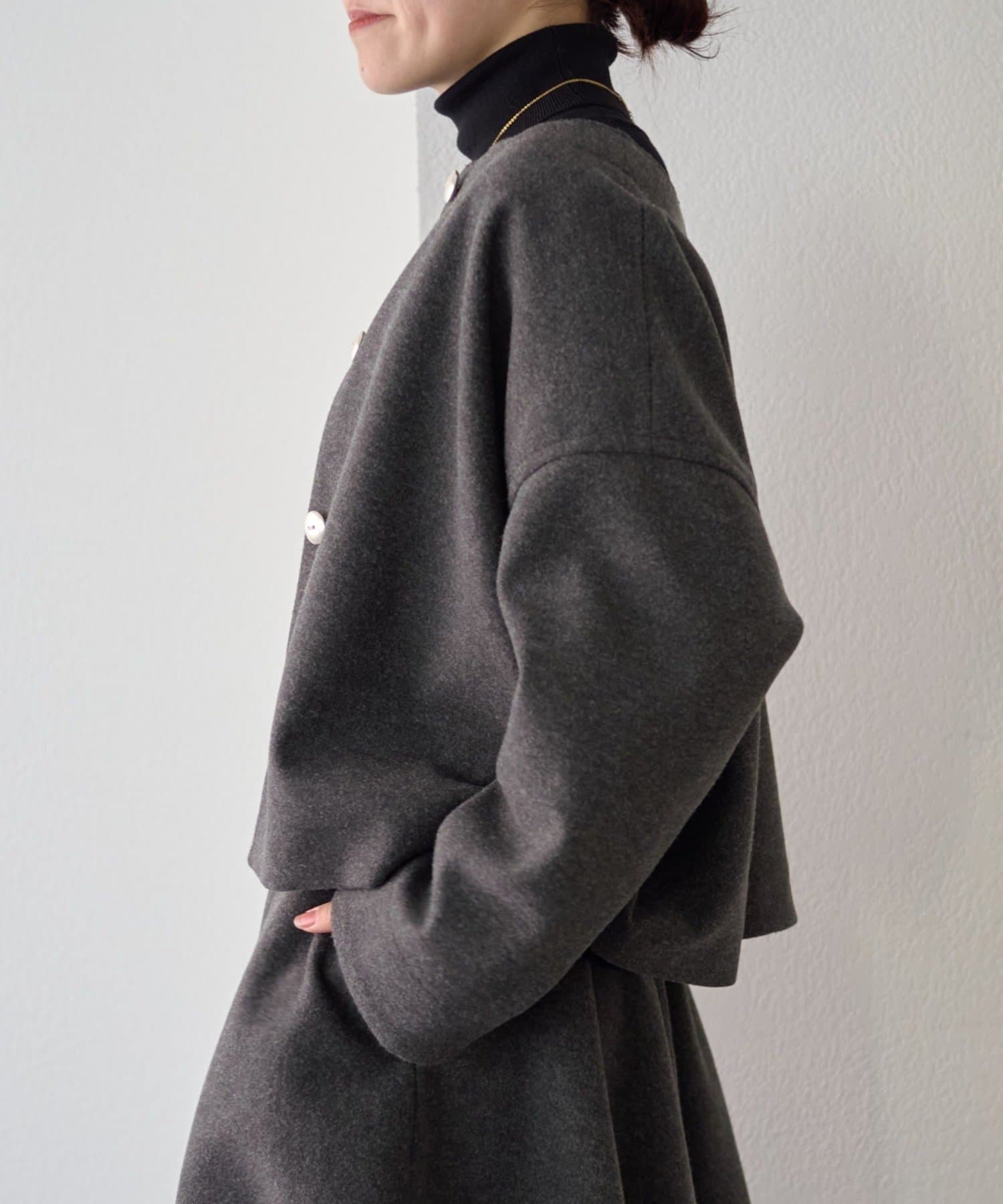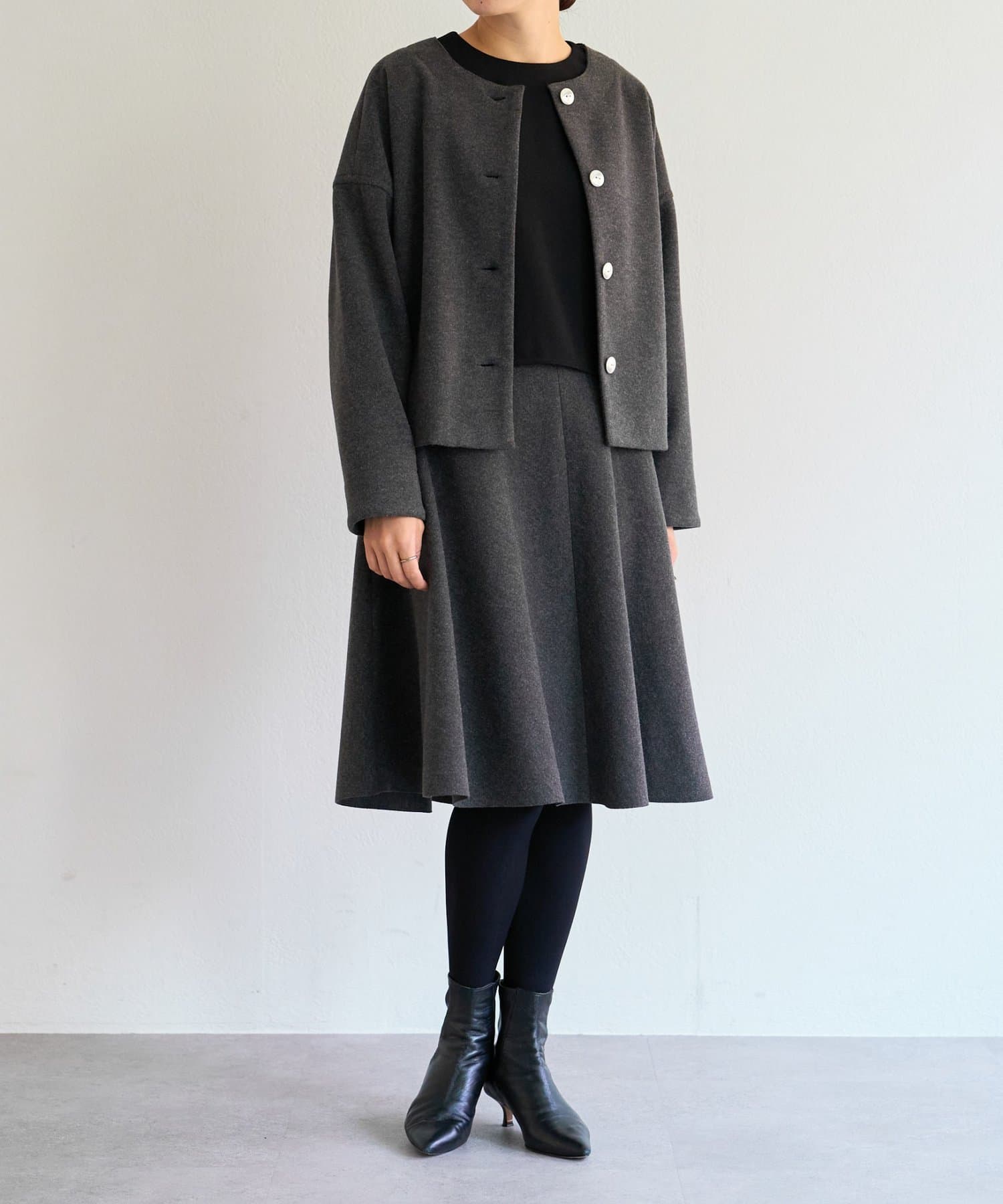 ウール見えしますが、ポリエステル素材なので、とっても軽いのに温かみのあるアイテム。