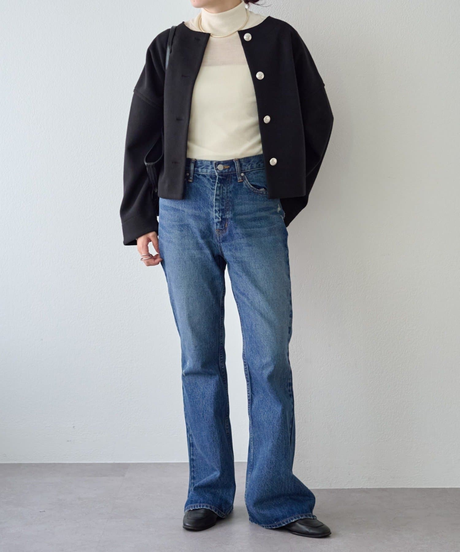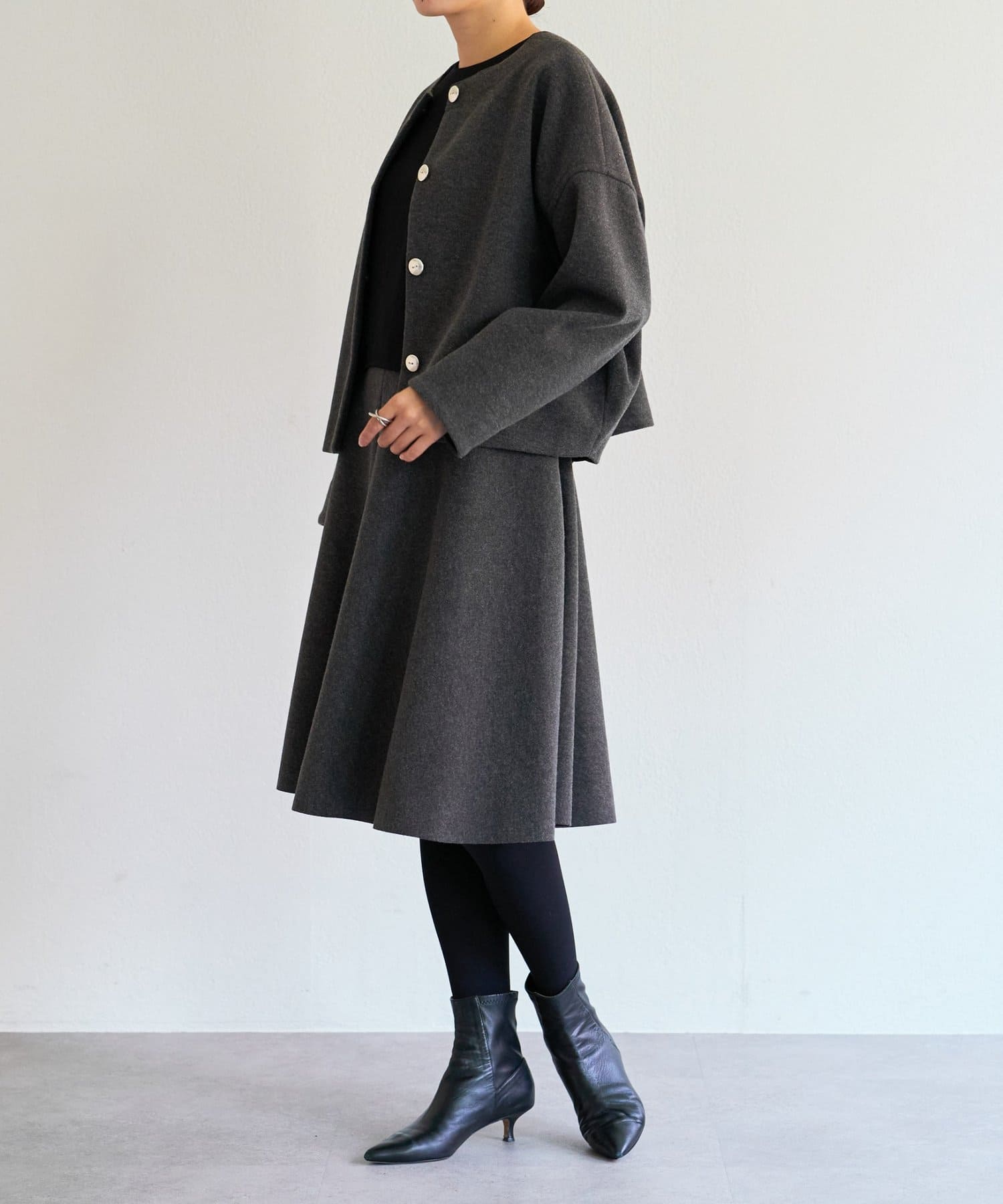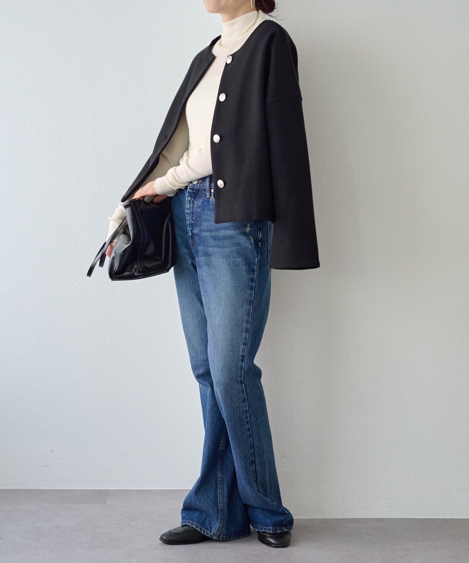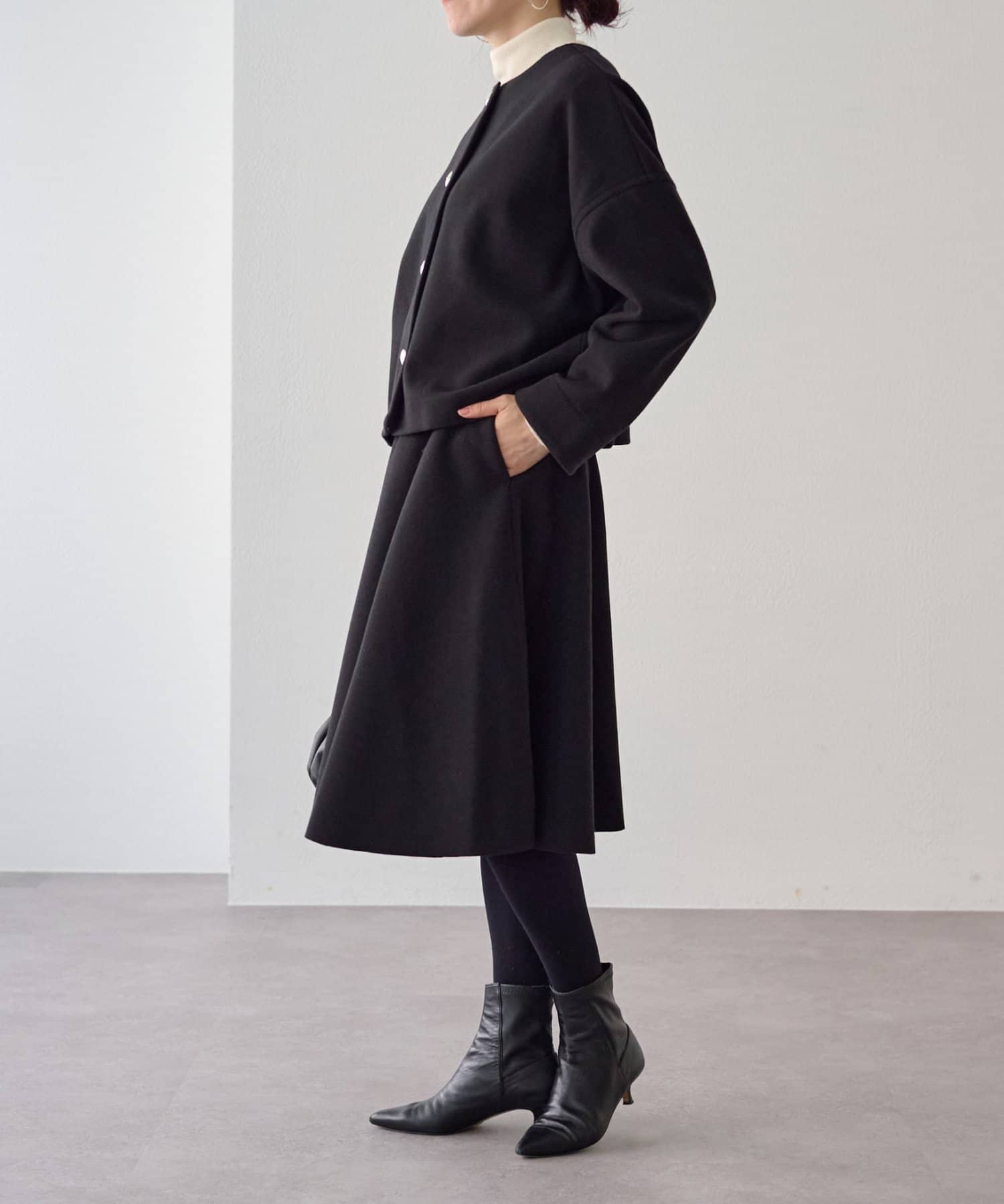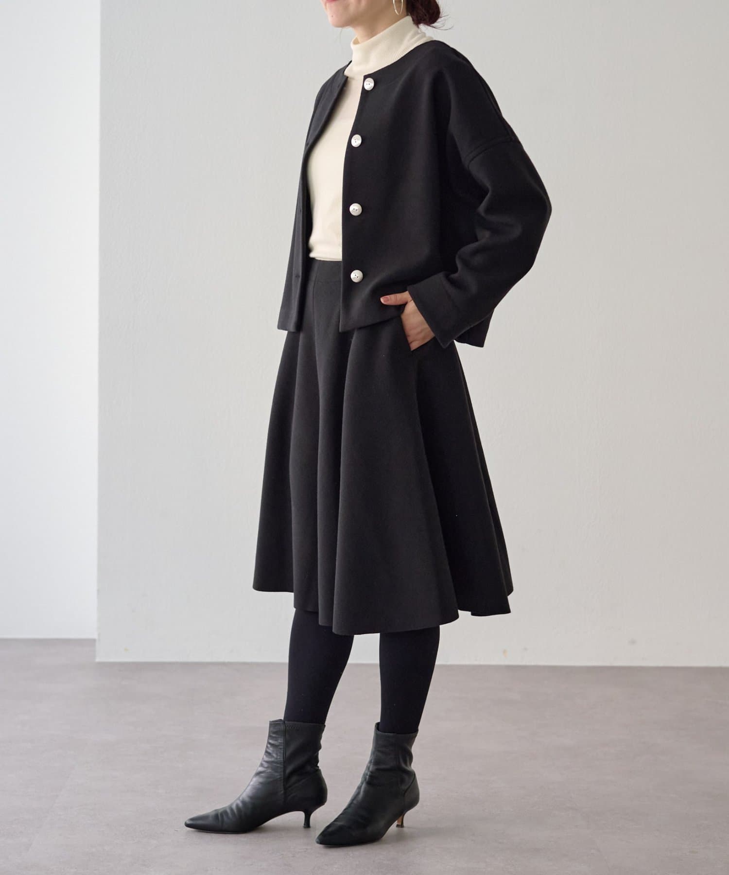 ウール見えしますが、ポリエステル素材なので、とっても軽いのに温かみのあるアイテム。
