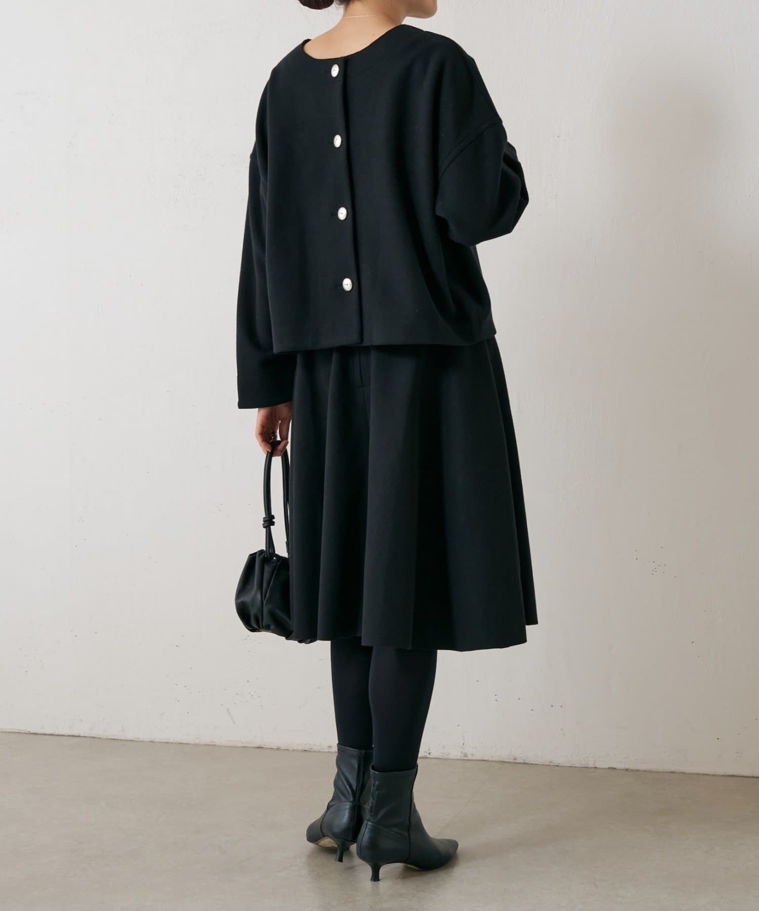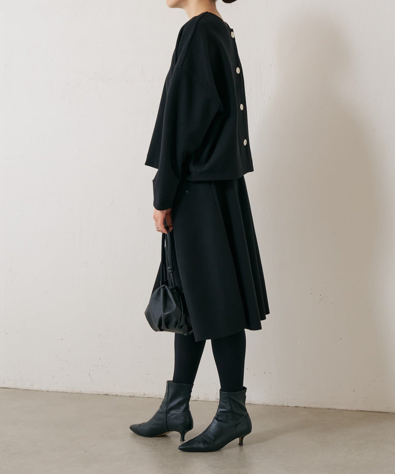 ヴィンテージ調のシルバーボタンがアクセントになり、後ろボタンのプルオーバーとしてや、カーディガンのように羽織ったりと、様々なシーンで活躍します。