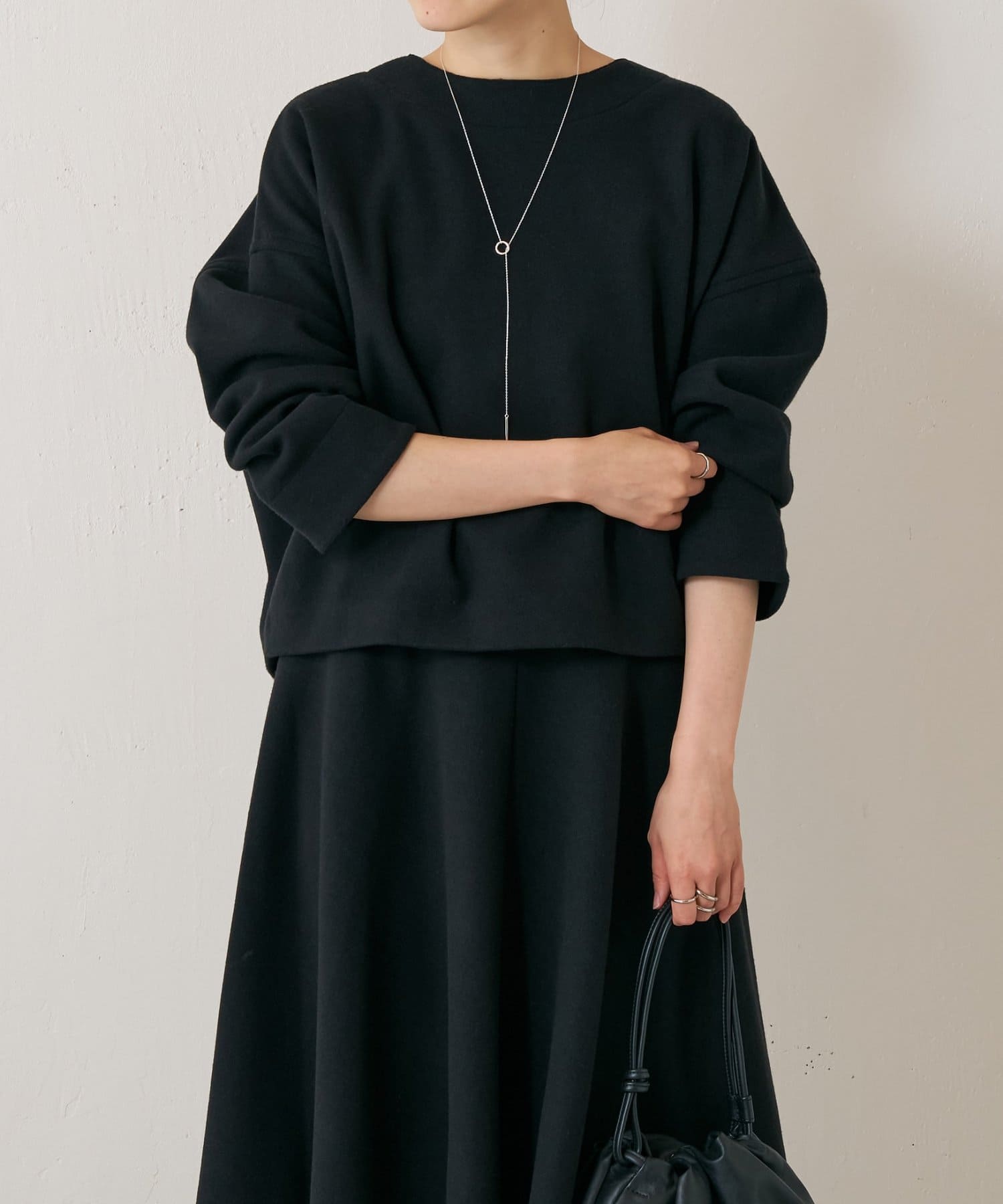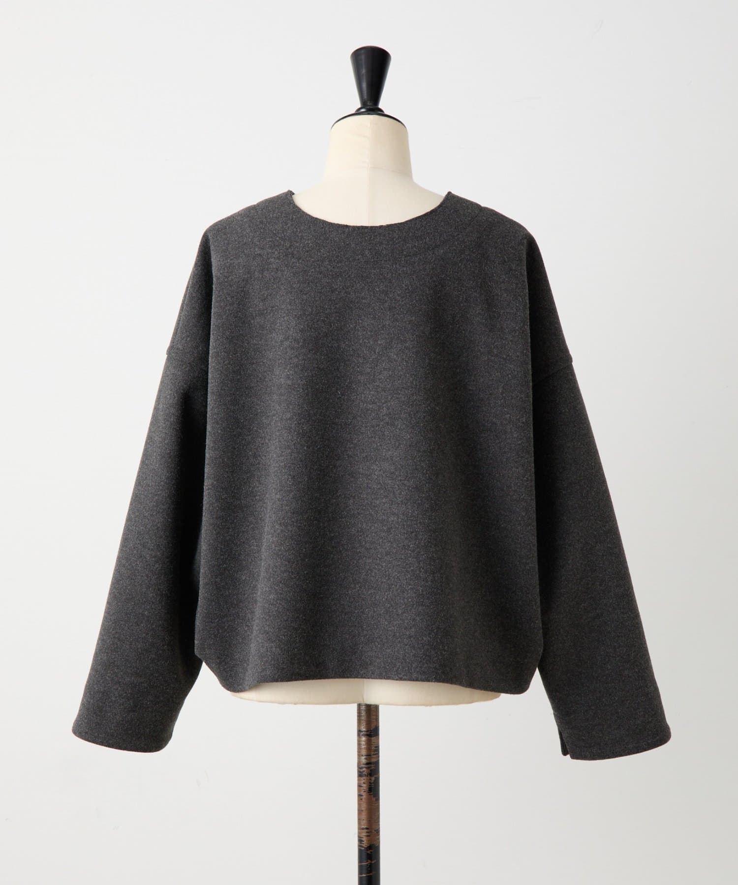 フェルトのように柔らかく、滑らかな肌ざわりが特徴のメルトンジャージー生地を使用したプルオーバー。
