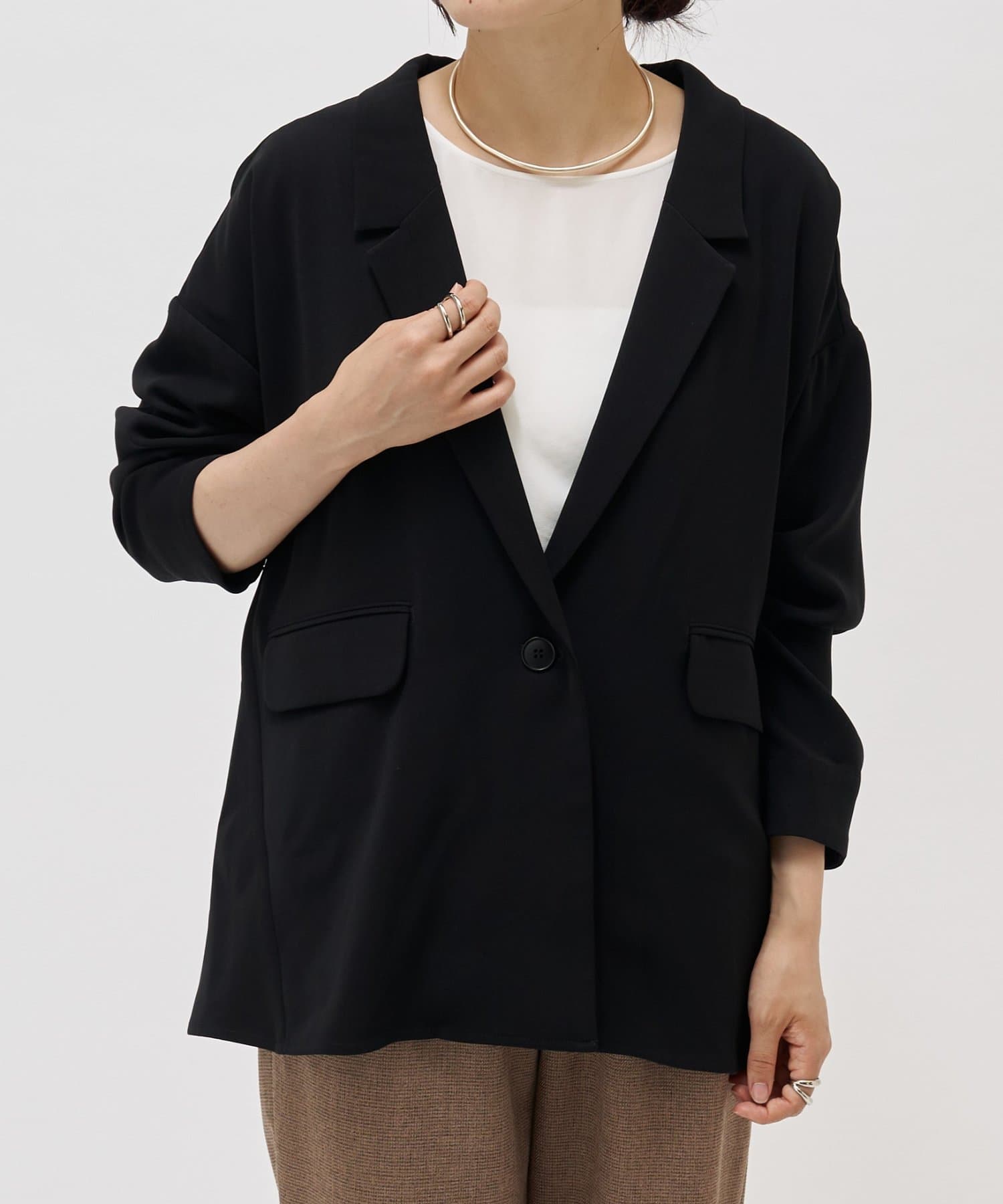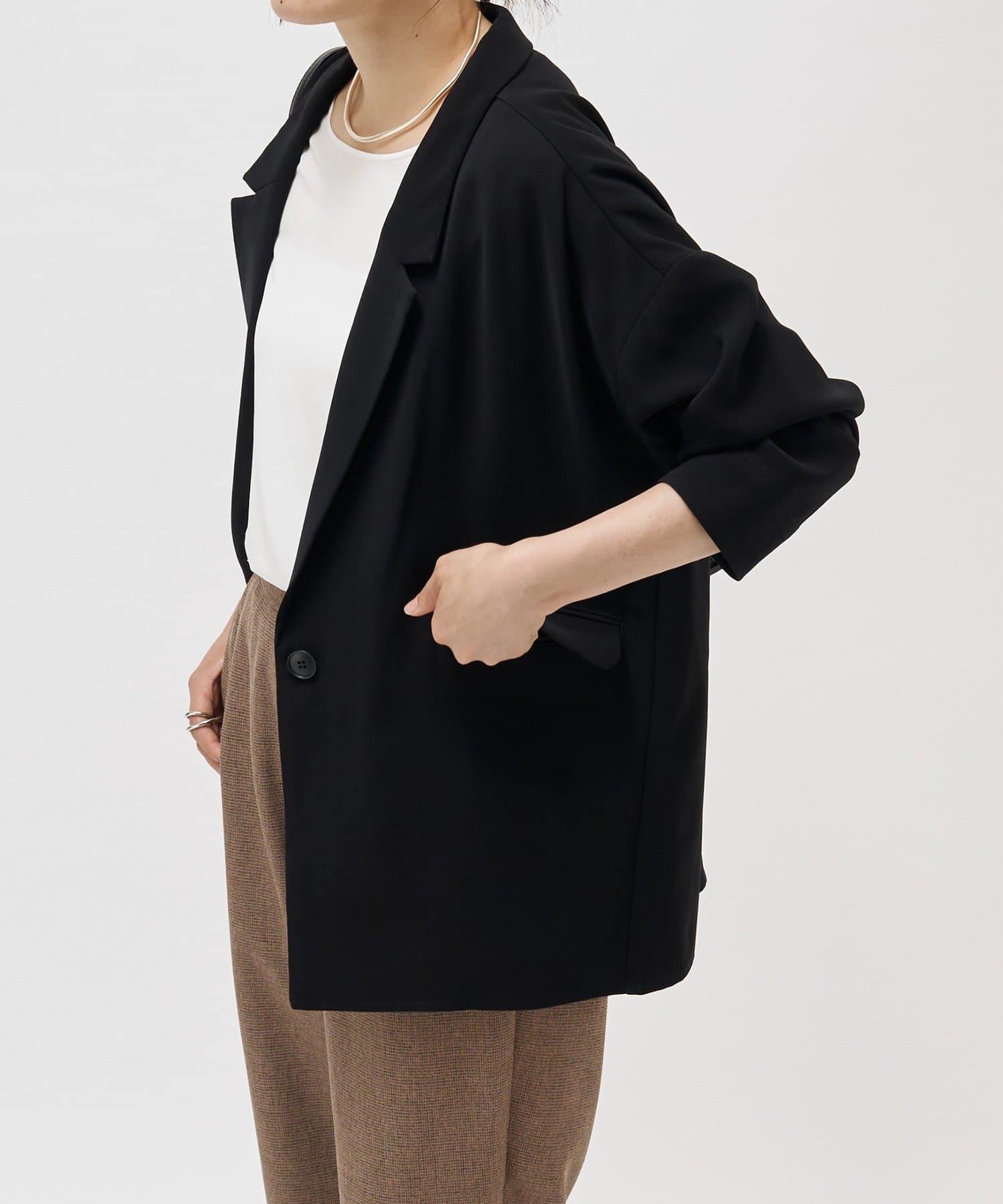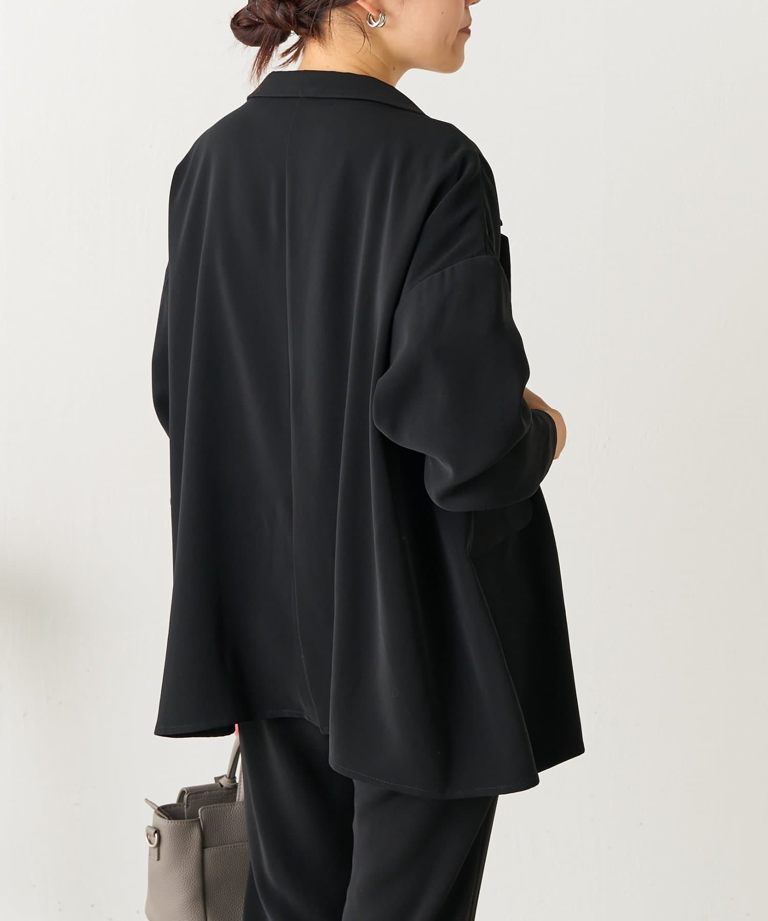 上品な光沢と落ち感のある生地で、ラフに羽織れるのにきちんと感があります。