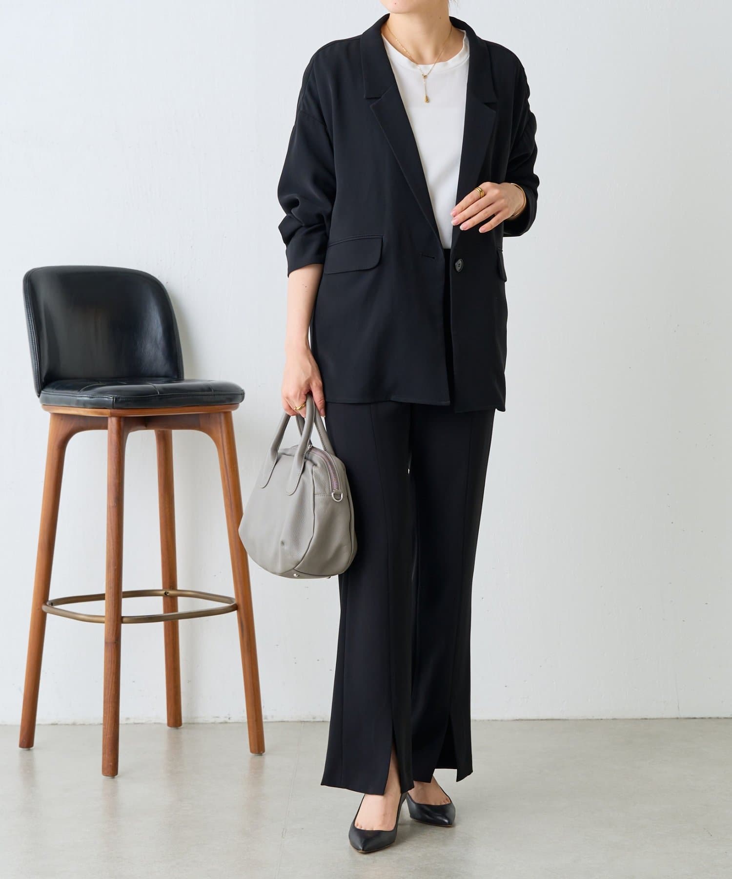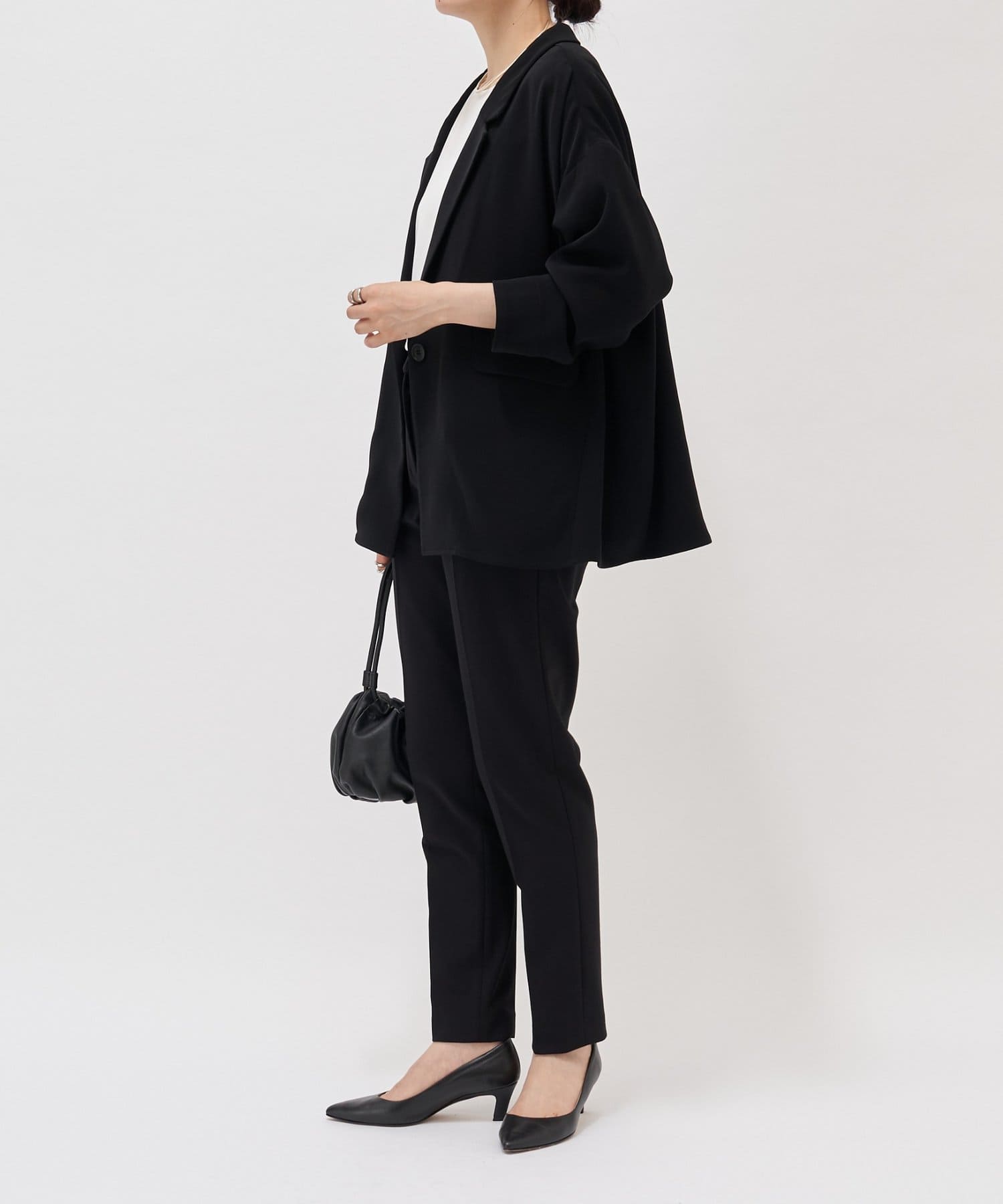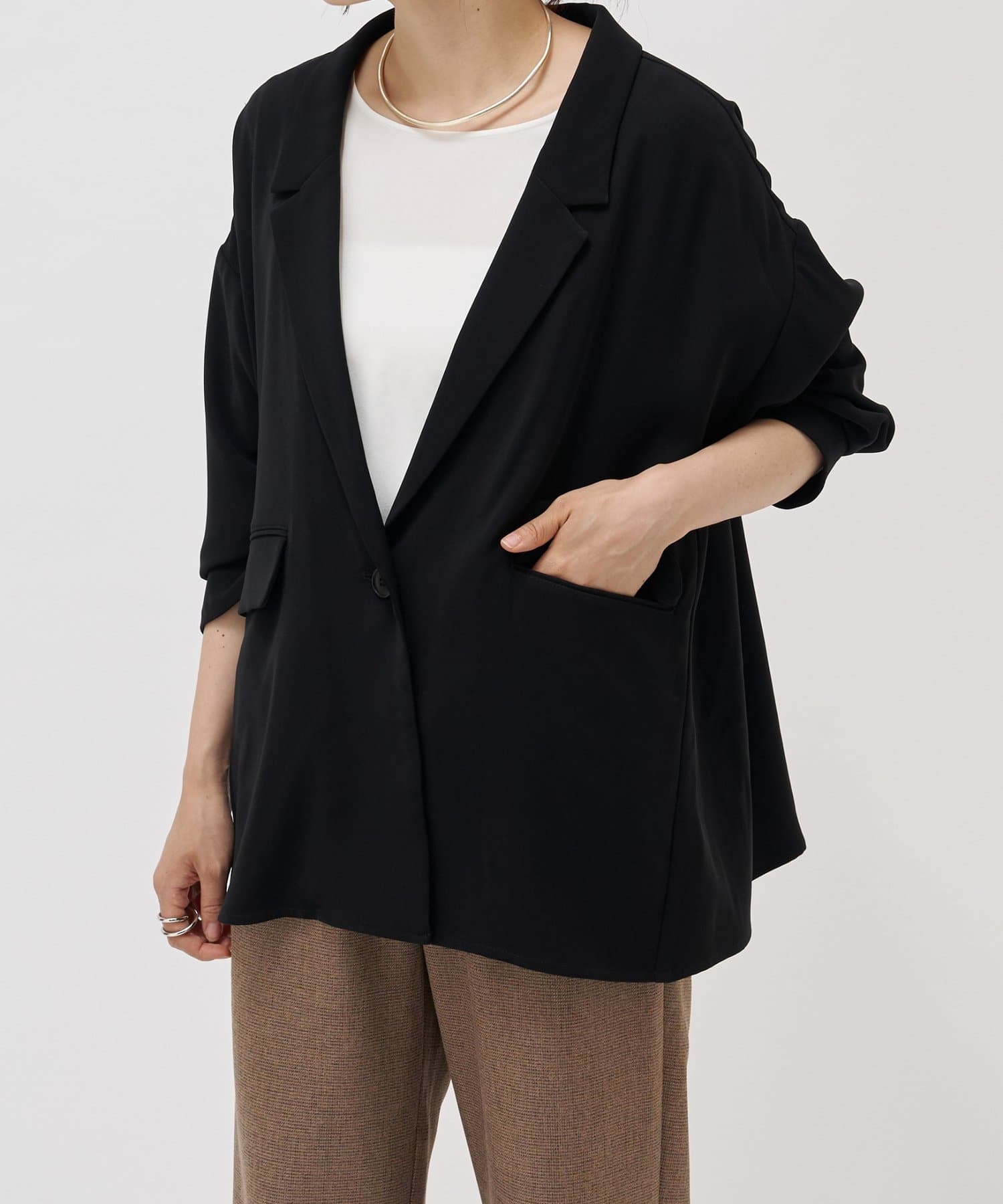 上品な光沢と落ち感のある生地で、ラフに羽織れるのにきちんと感があります。