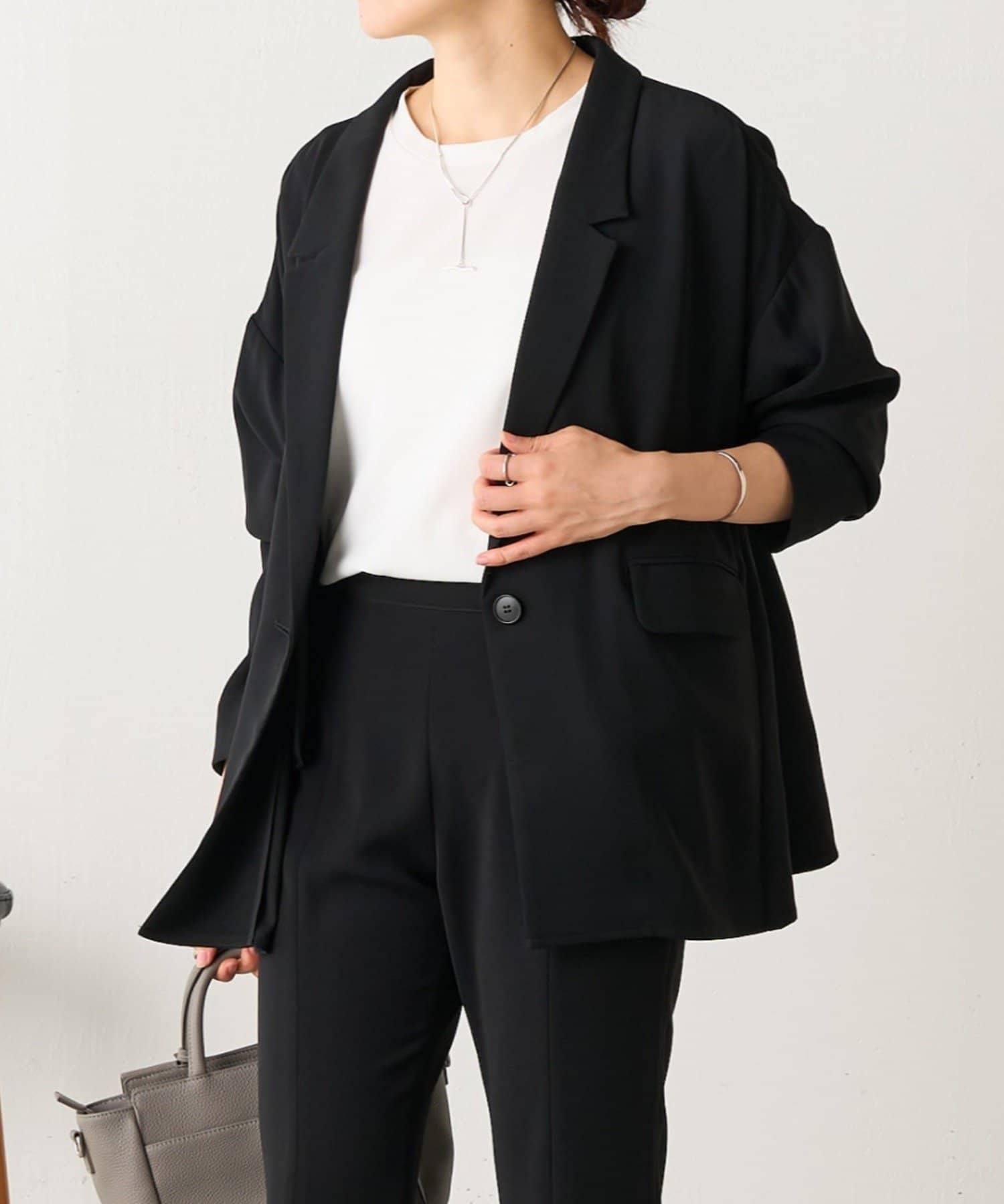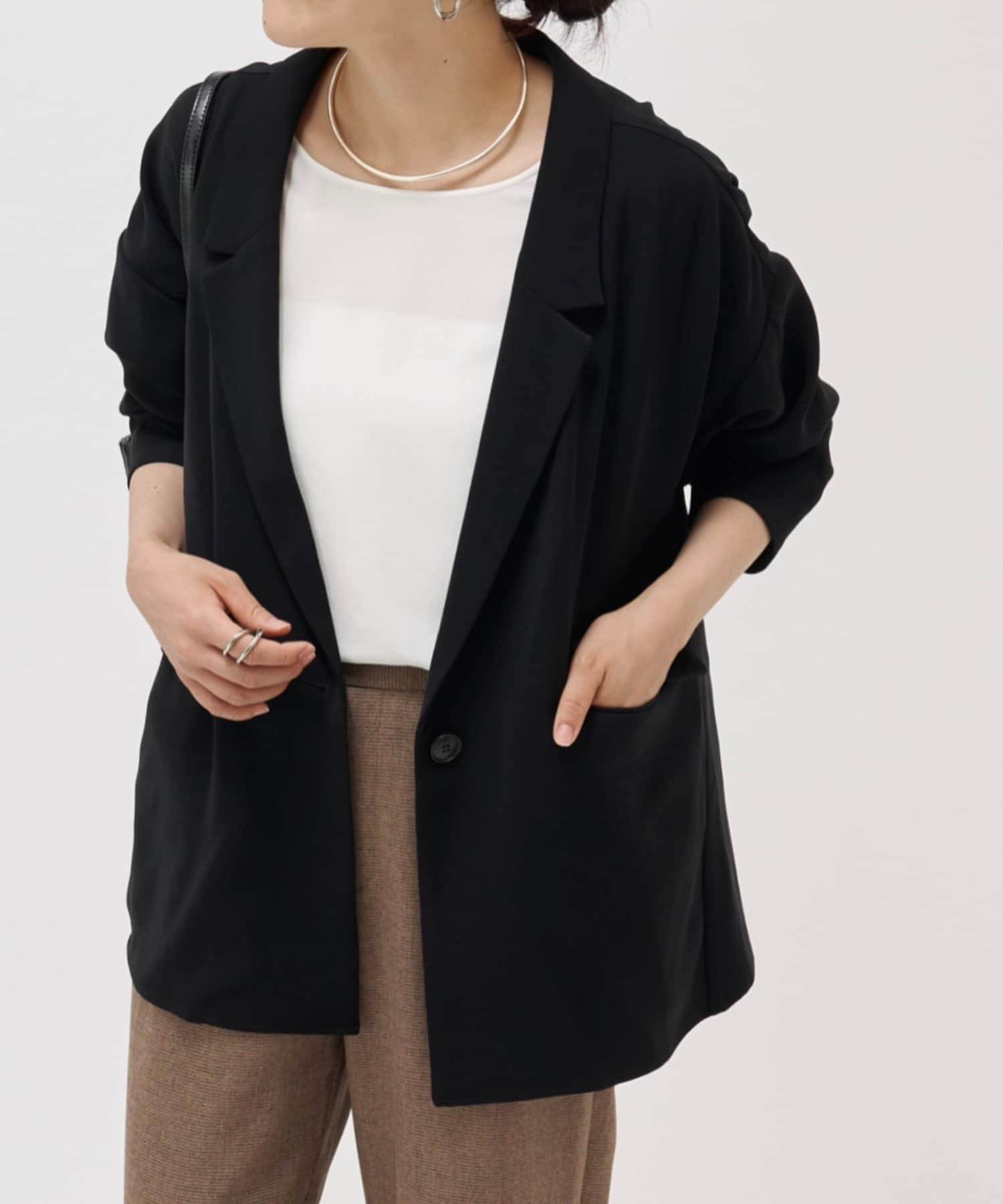 お仕事にもデイリーにも着回しに重宝する頼れる1枚。