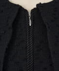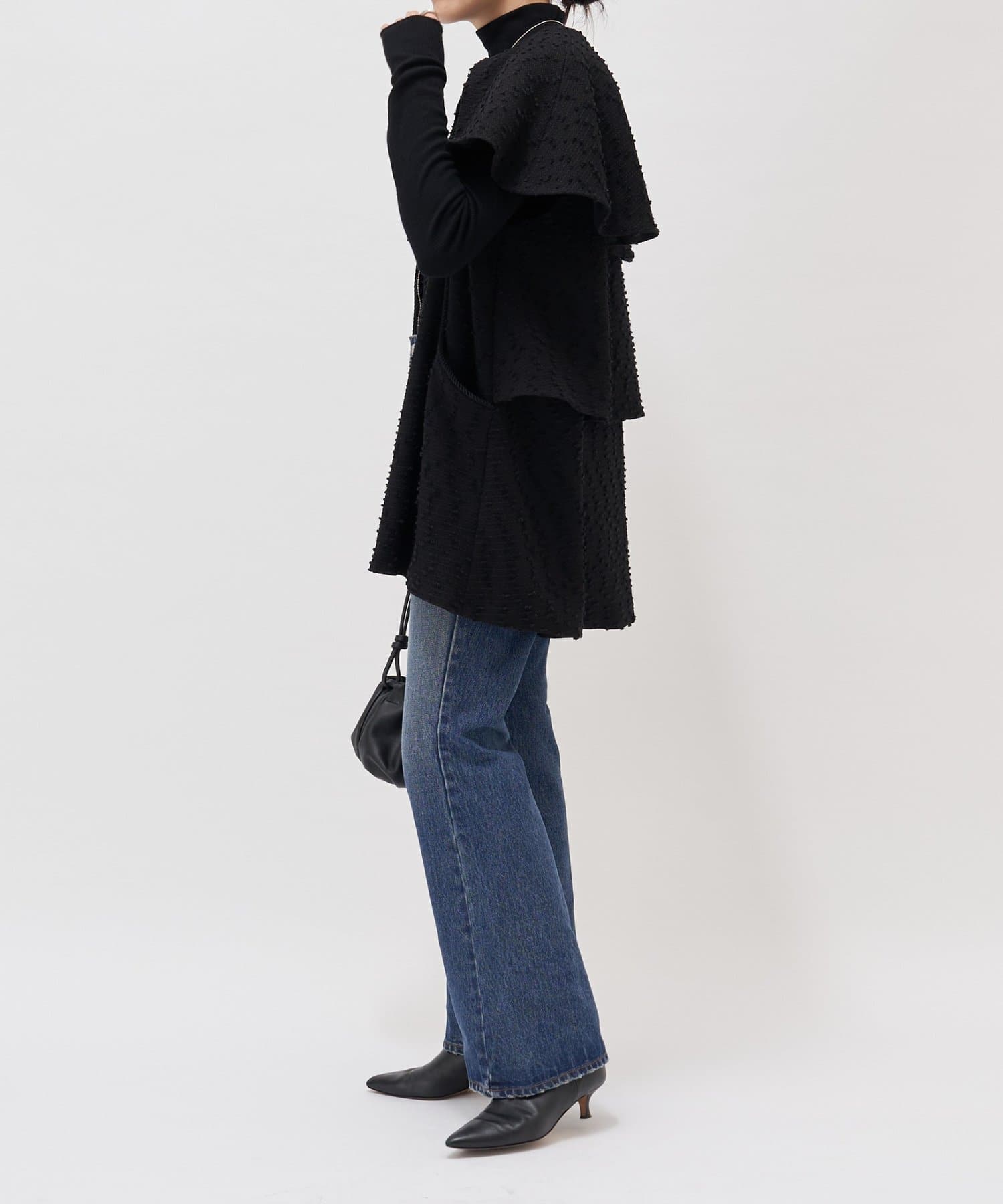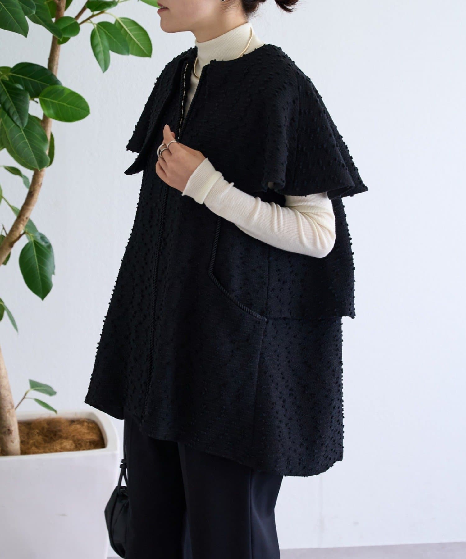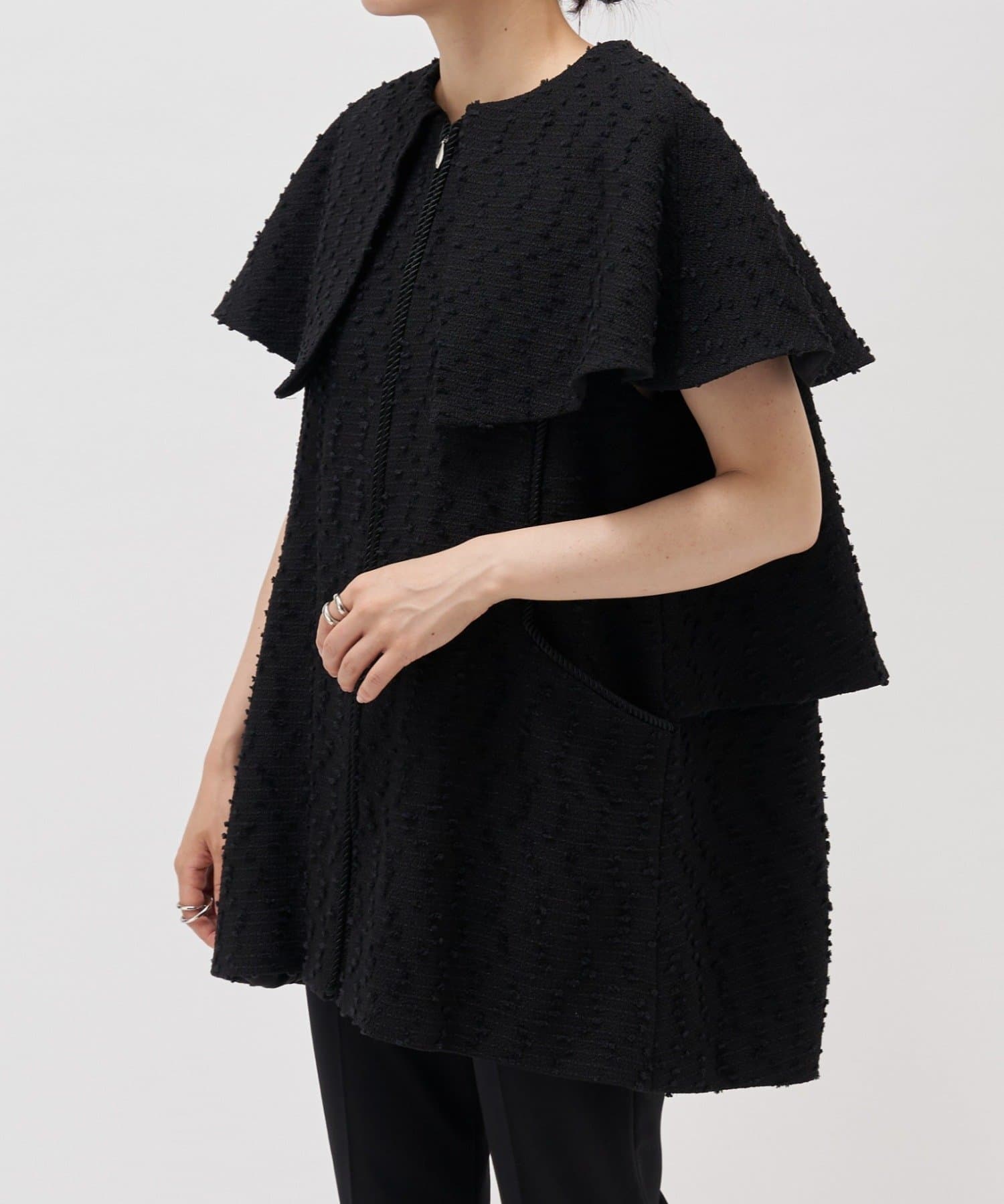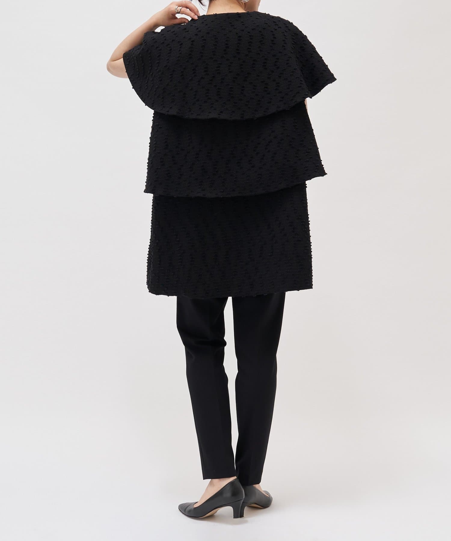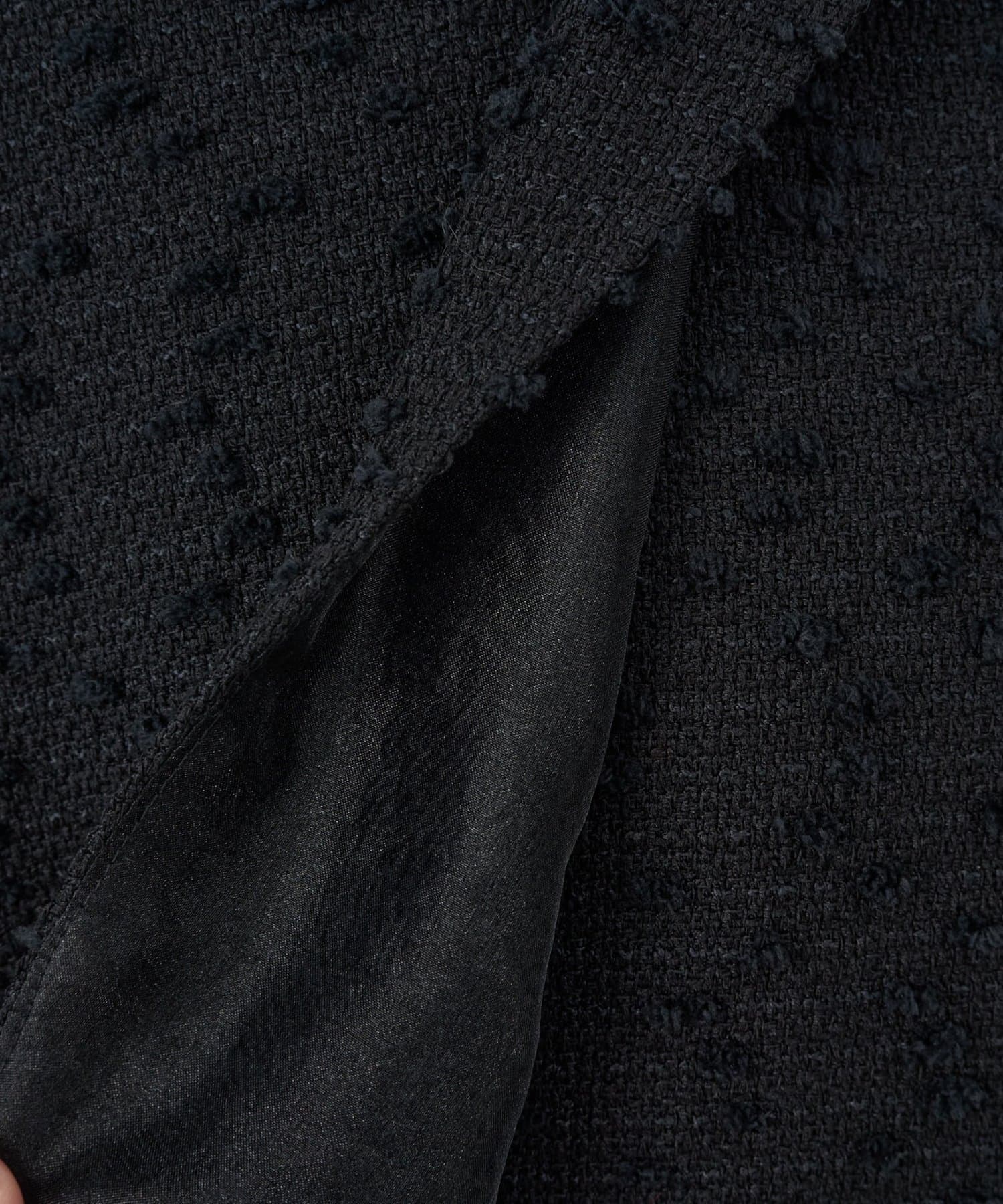 バックスタイルのティアードと、つぶつぶとした糸目が華やかなツイードベスト。