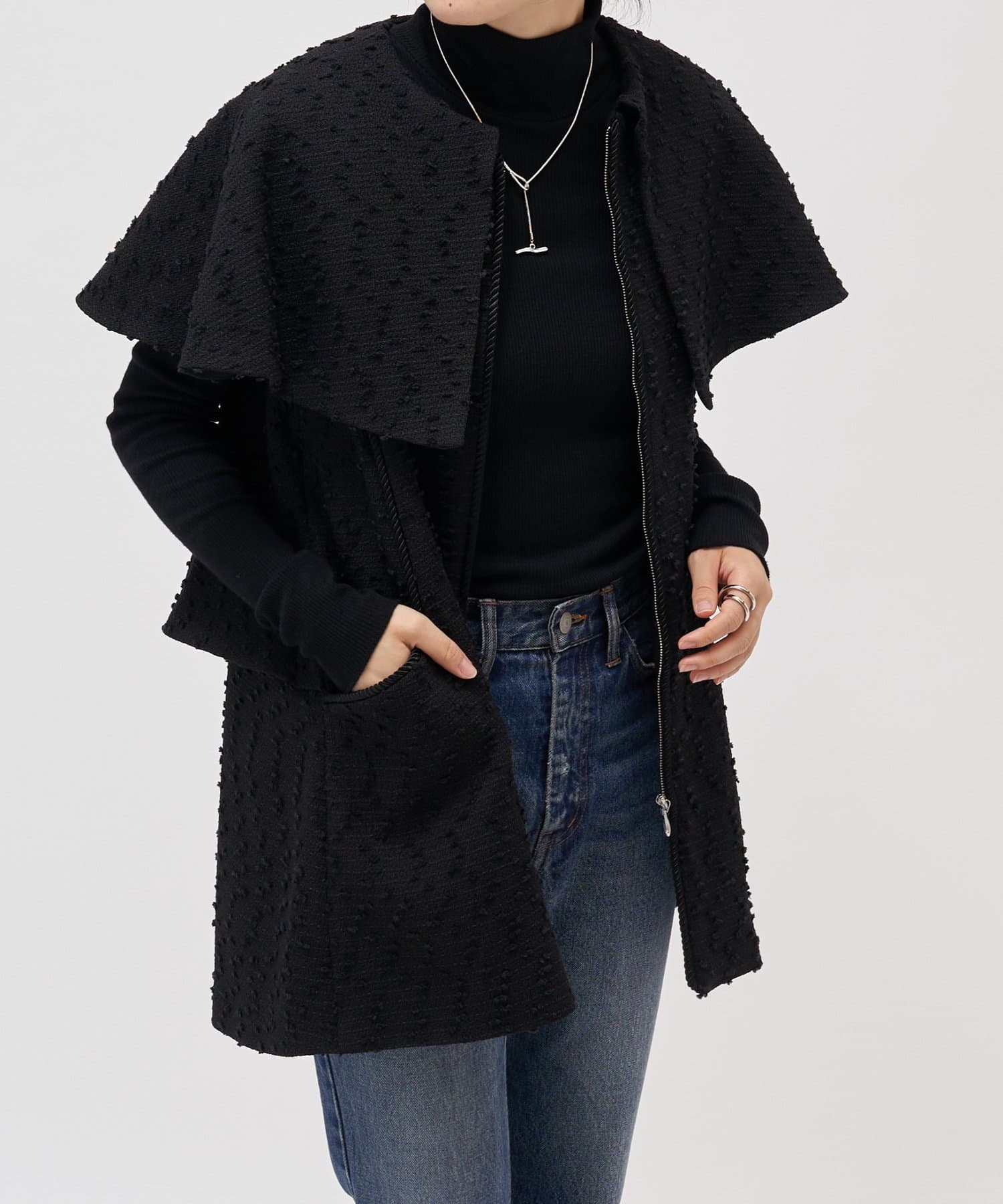 オリジナリティ溢れるデザインもブラックの生地を使用しているのでワードローブとも合わせやすい一枚。