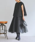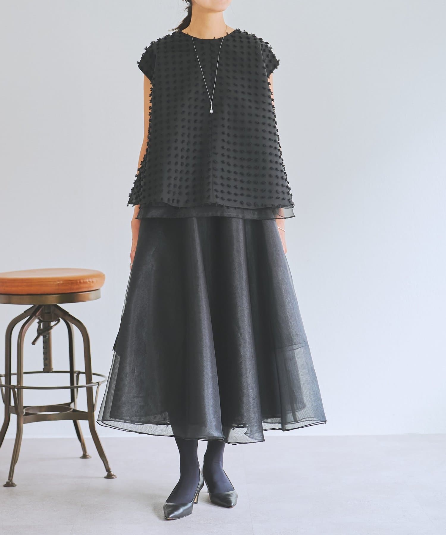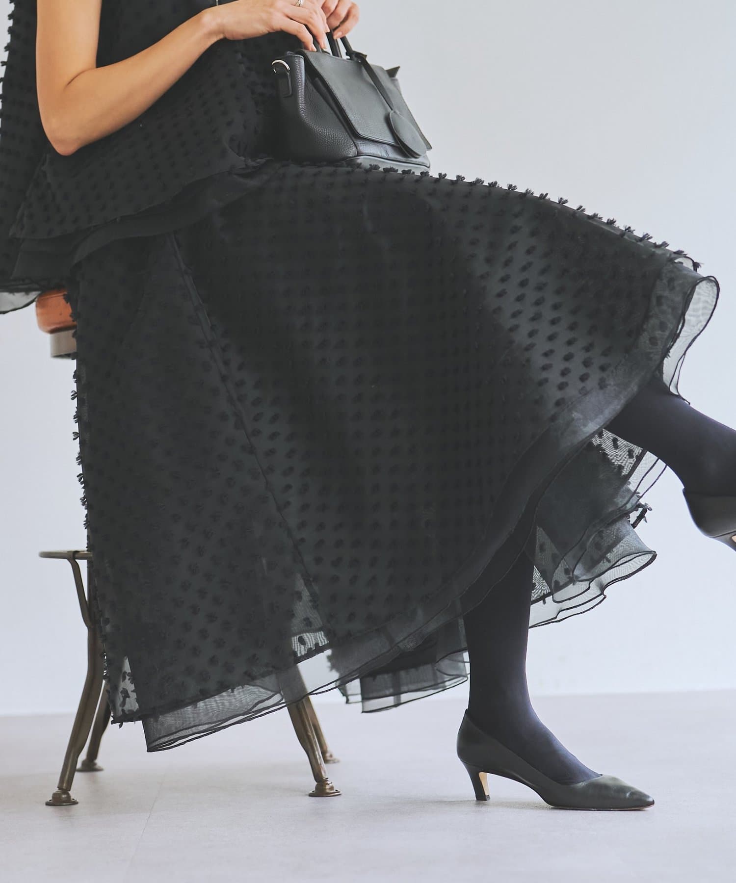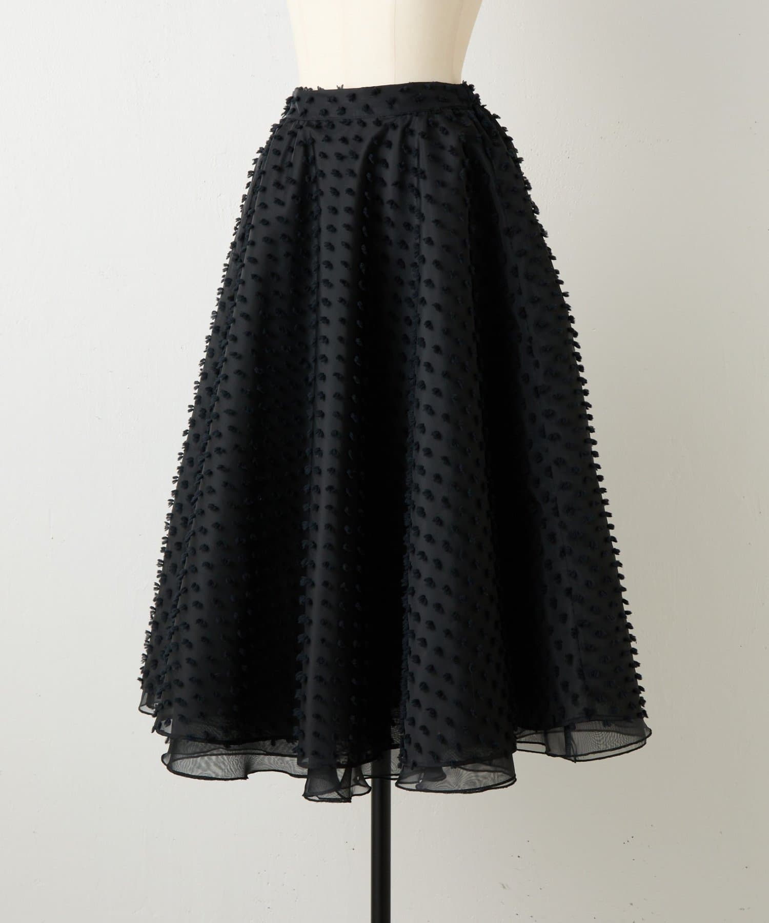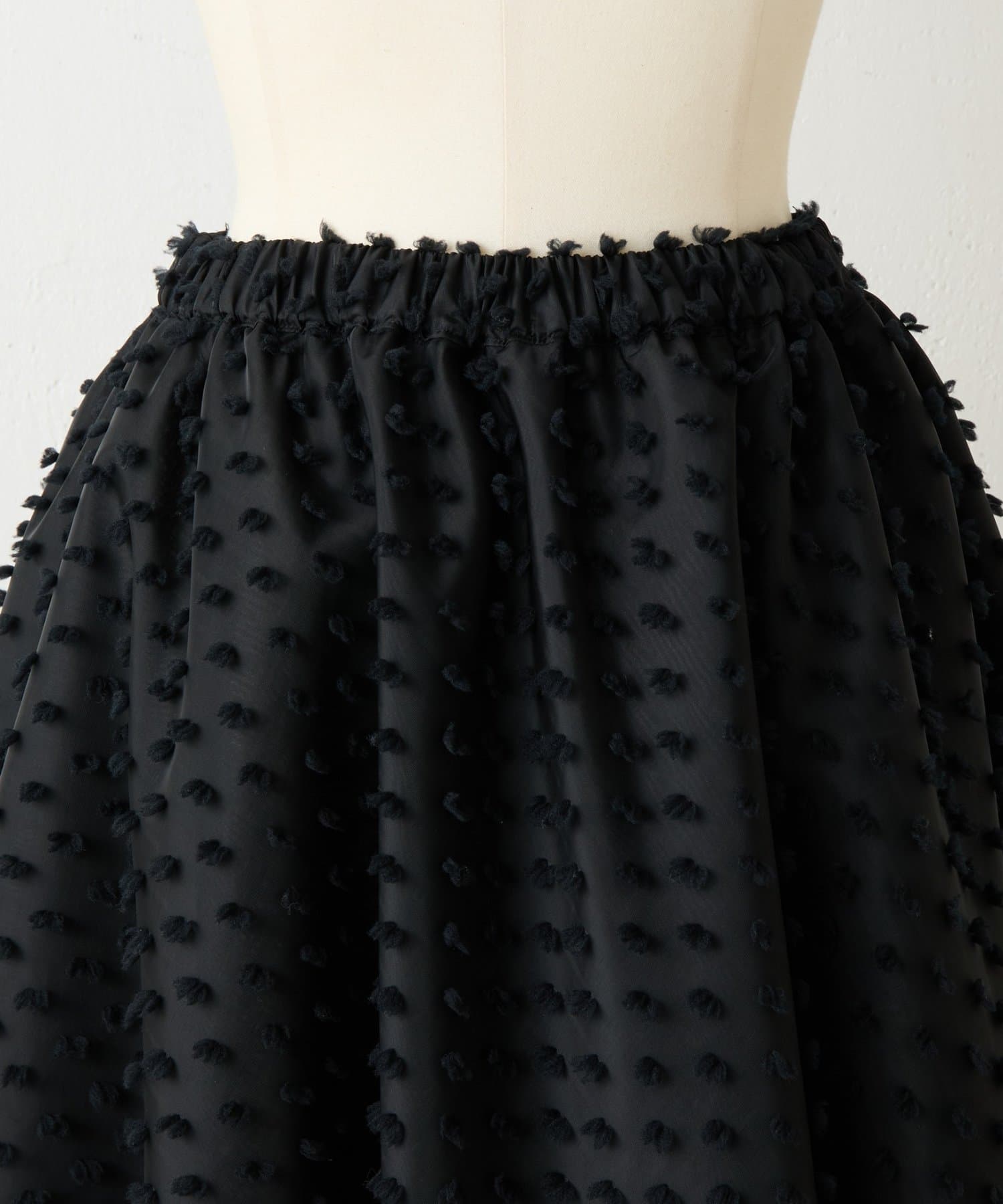 シアー素材を重ね、軽やかなボリューム感を引き出したジャガードスカート。