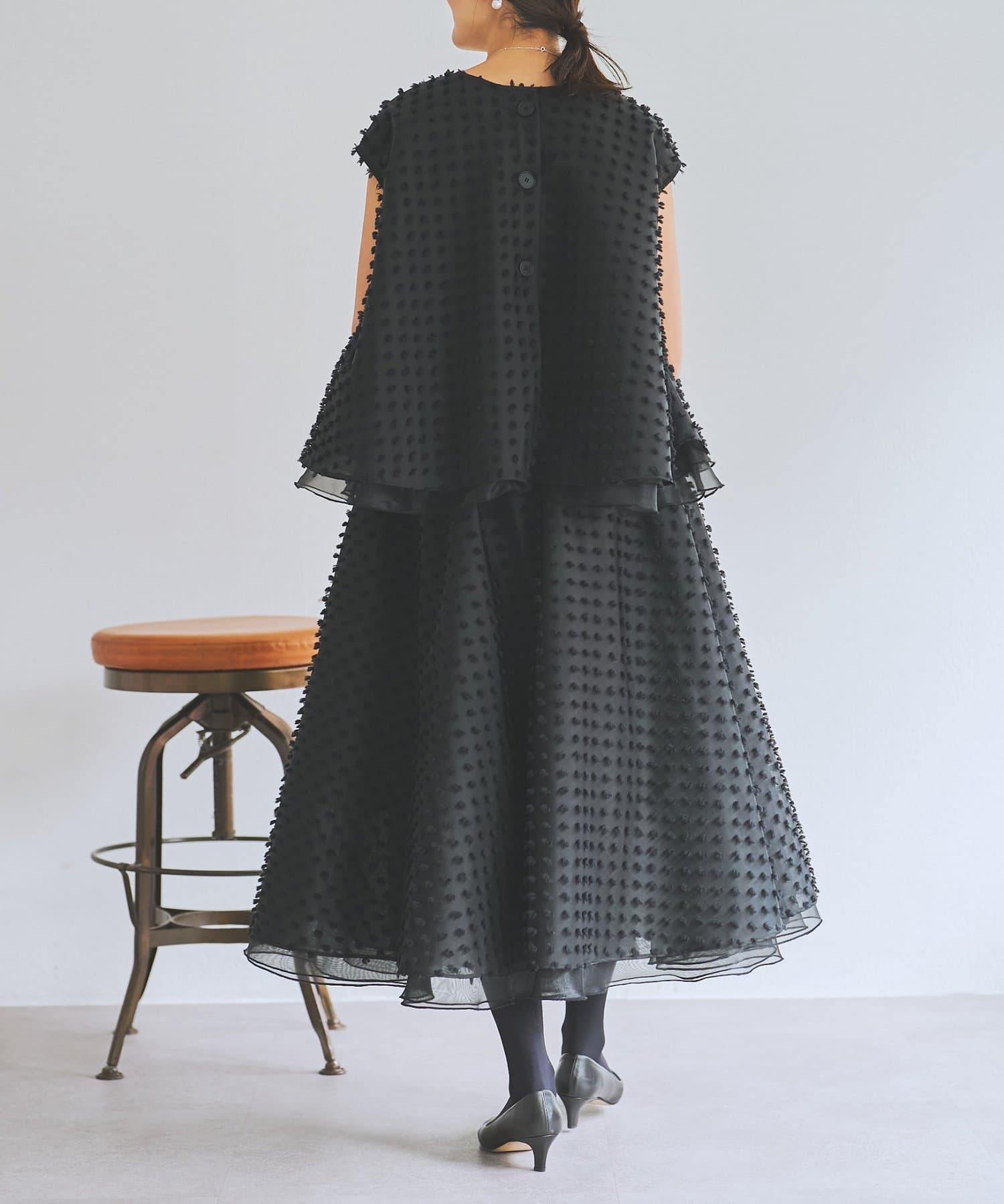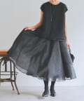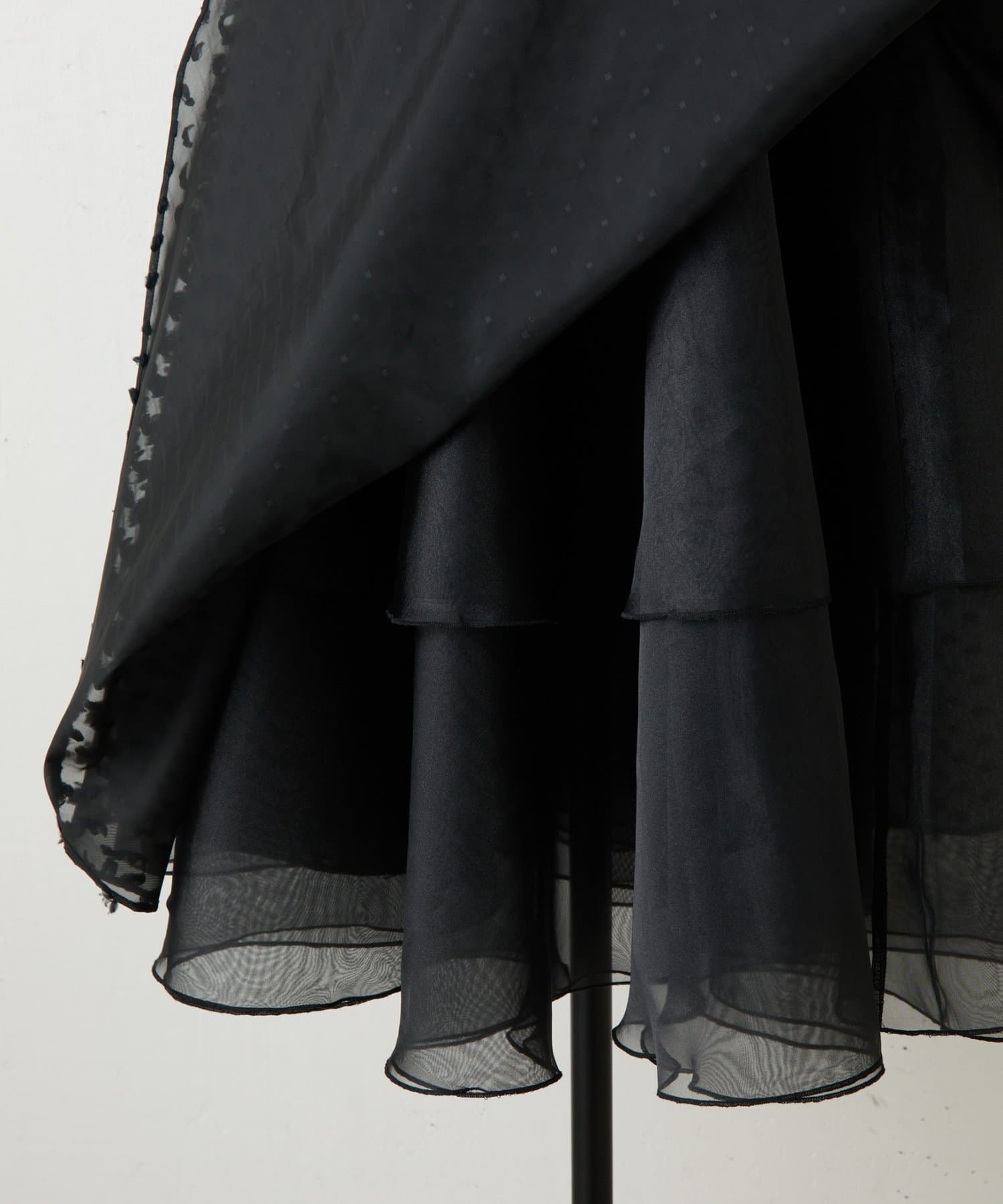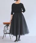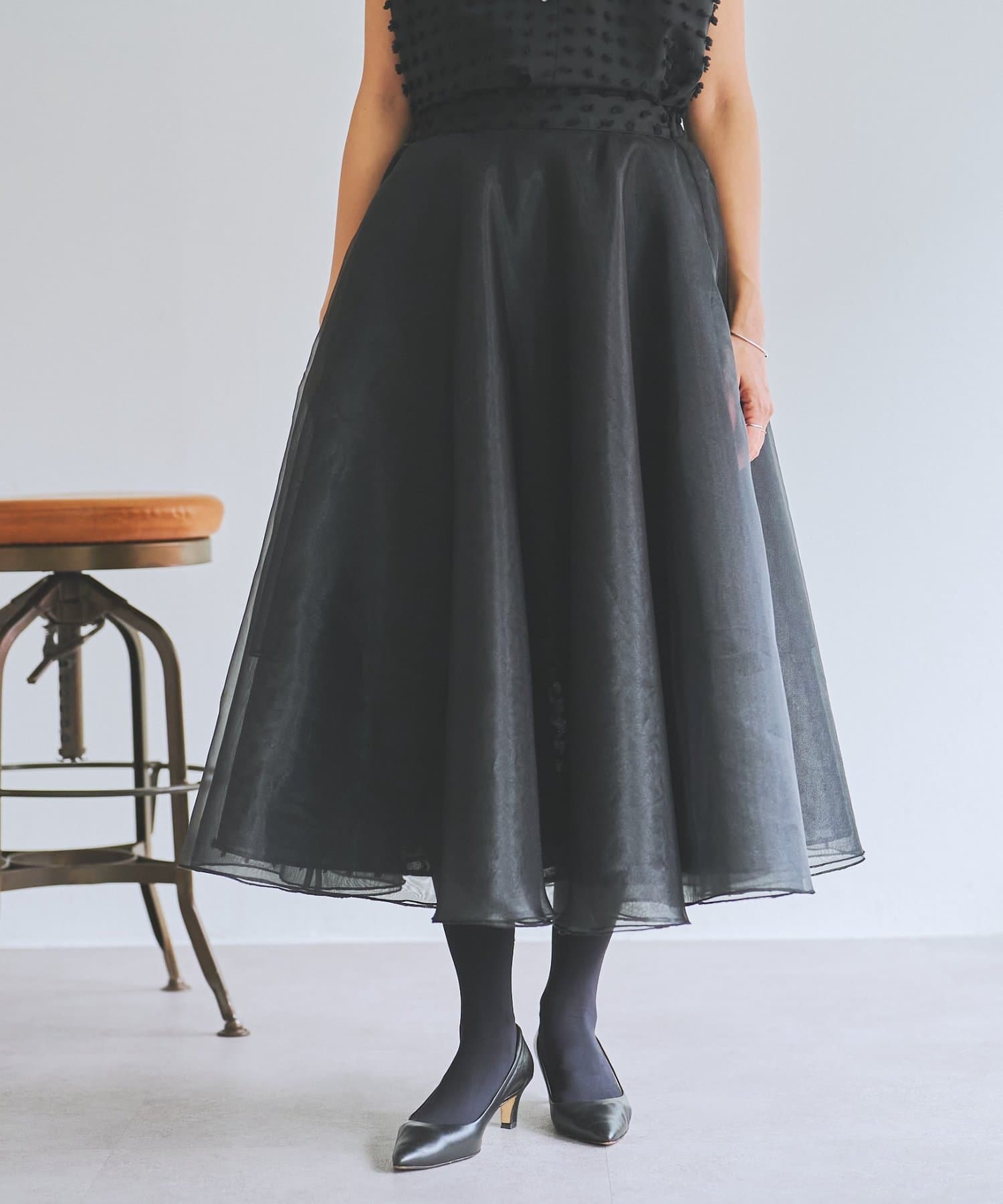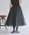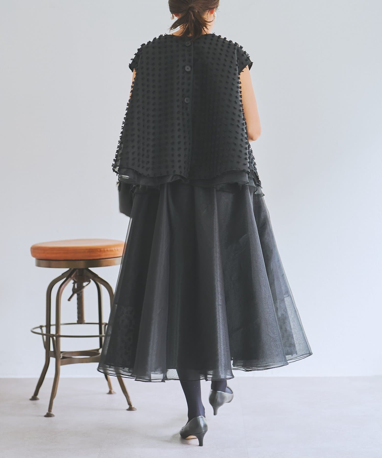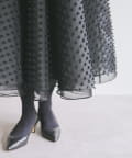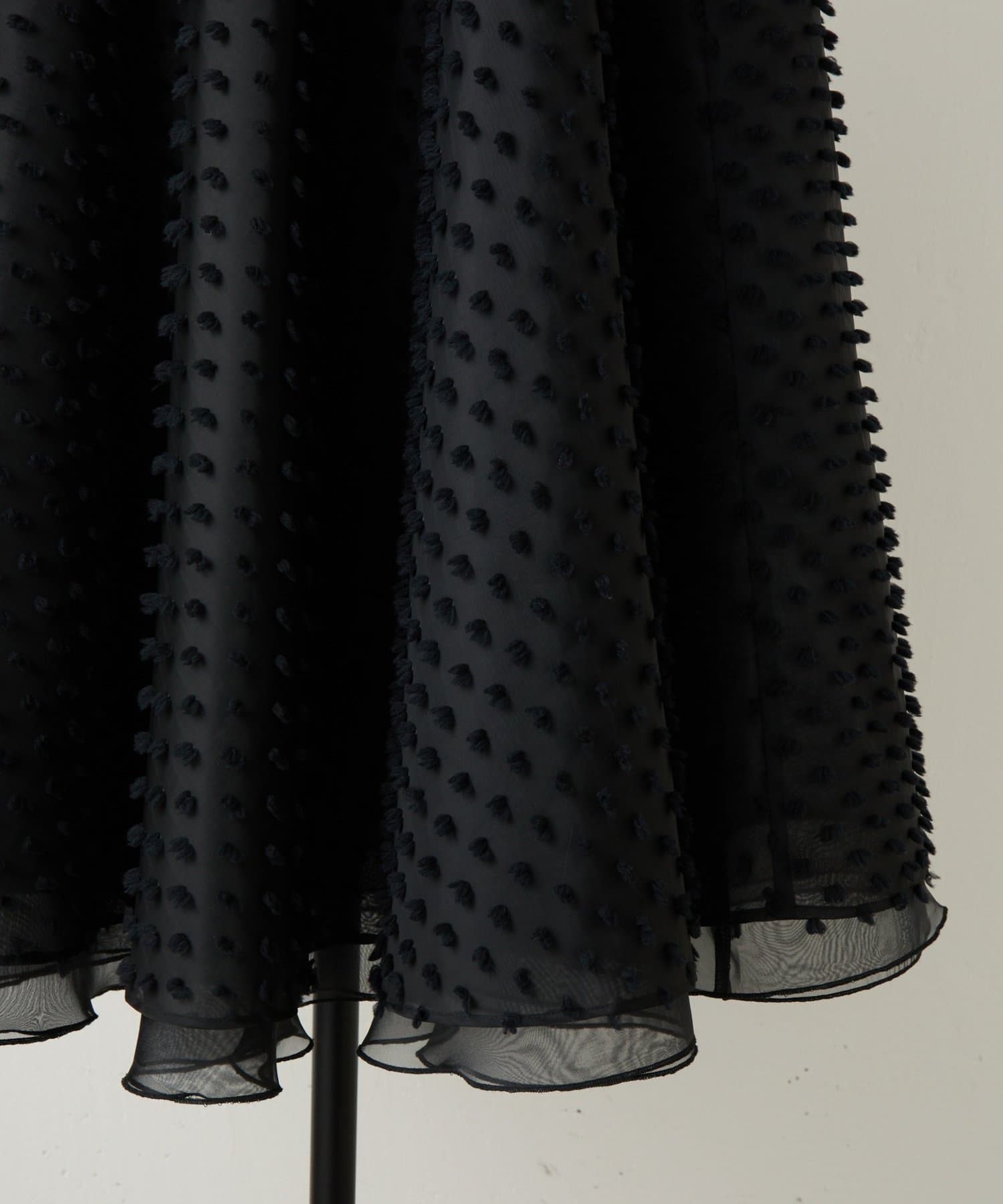 シアー素材を重ね、軽やかなボリューム感を引き出したジャガードスカート。