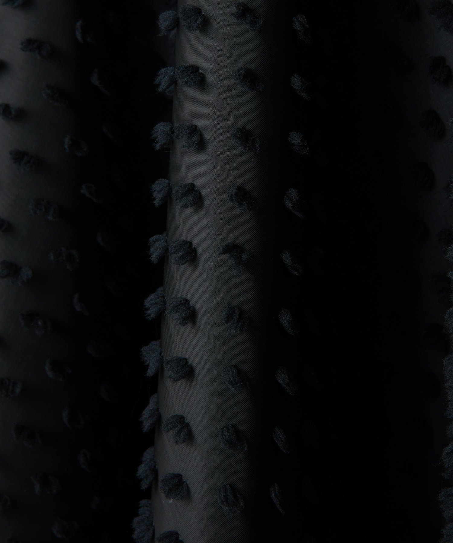 表地にはポリエステル×ナイロン素材のジャガード生地を使用し、ジャガードで立体的なドット柄を繊細に表現しています。