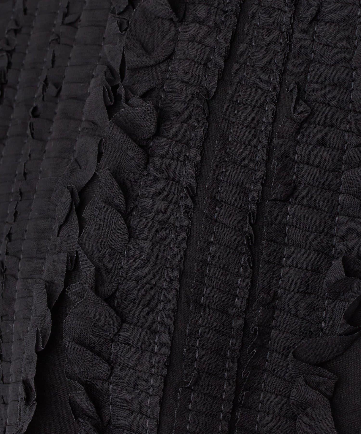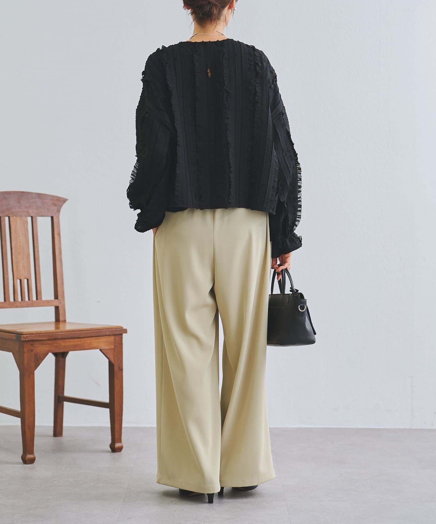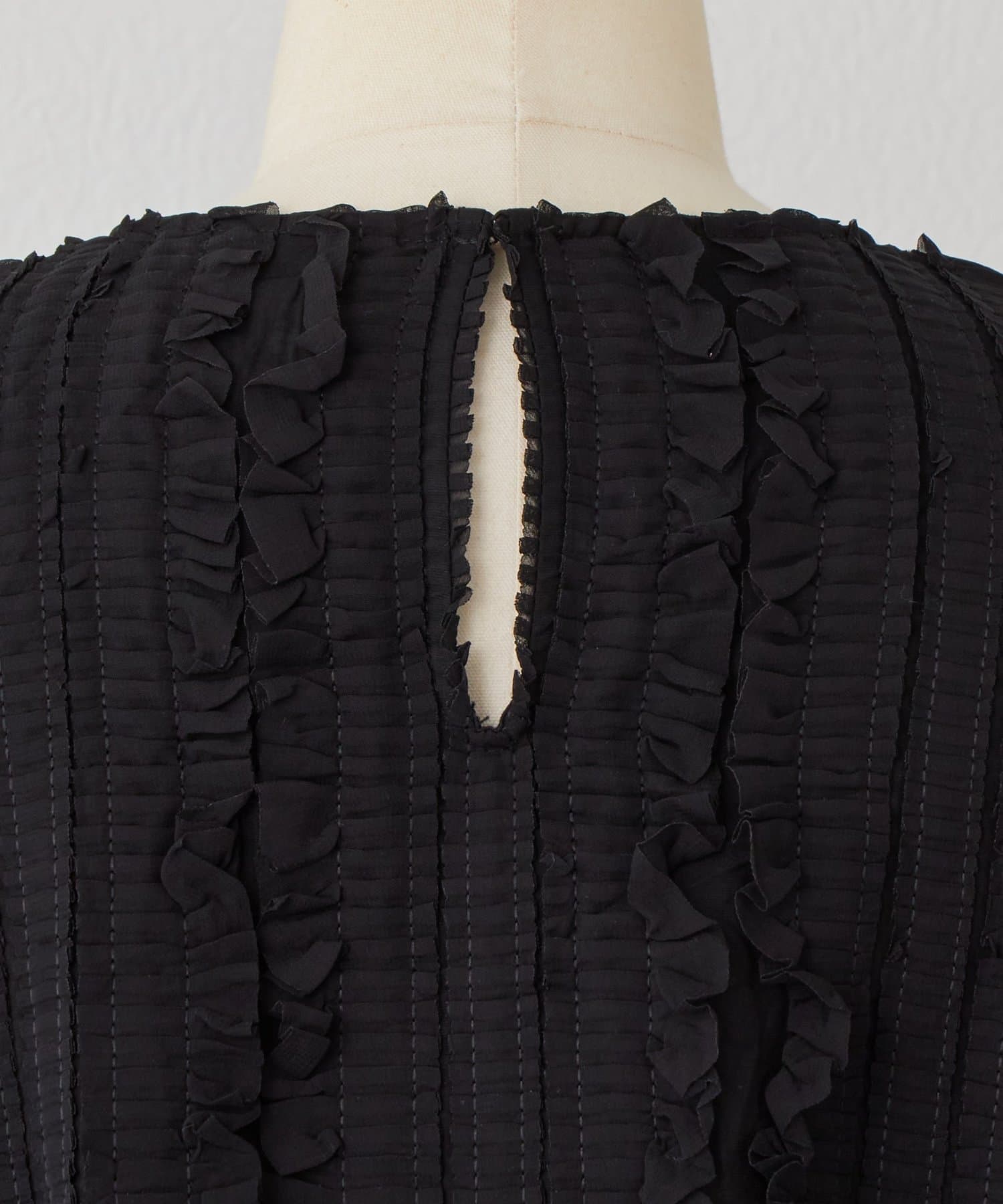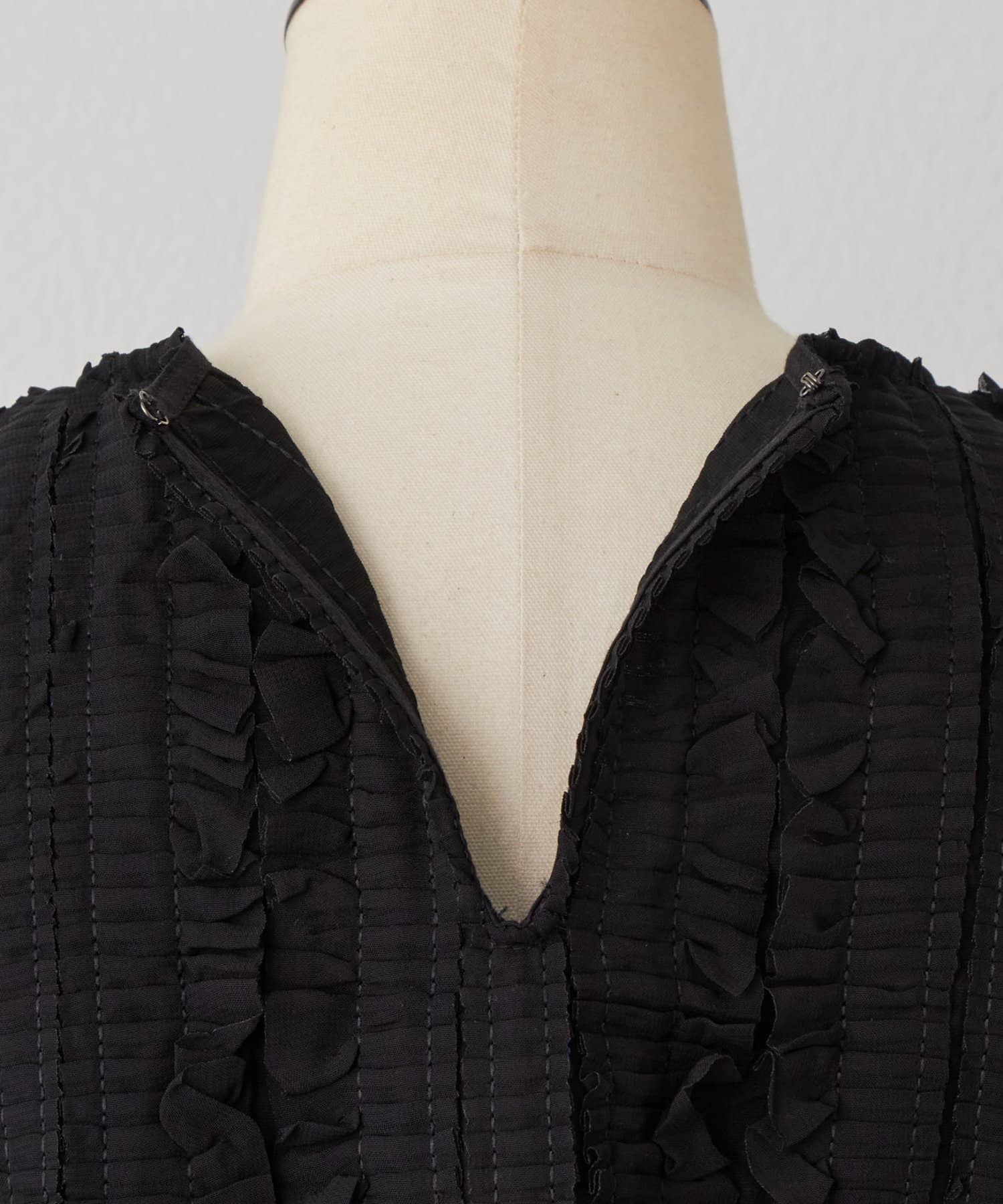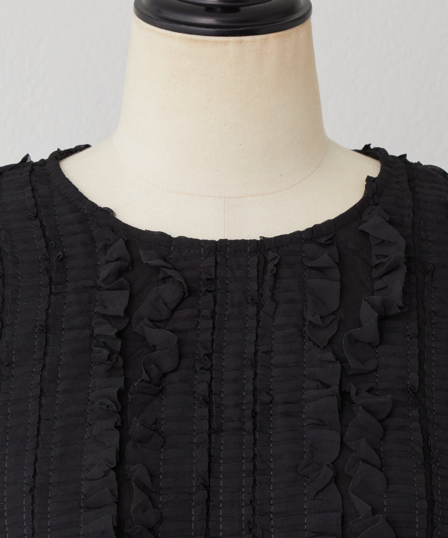 細かなプリーツとフリルを重ねた表情豊かなブラウス。