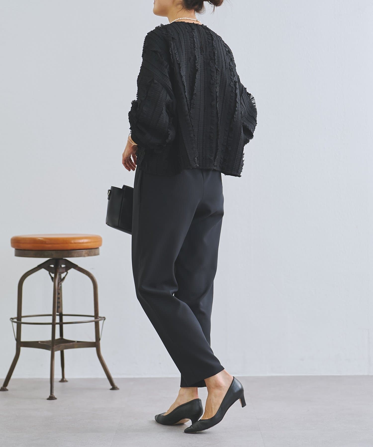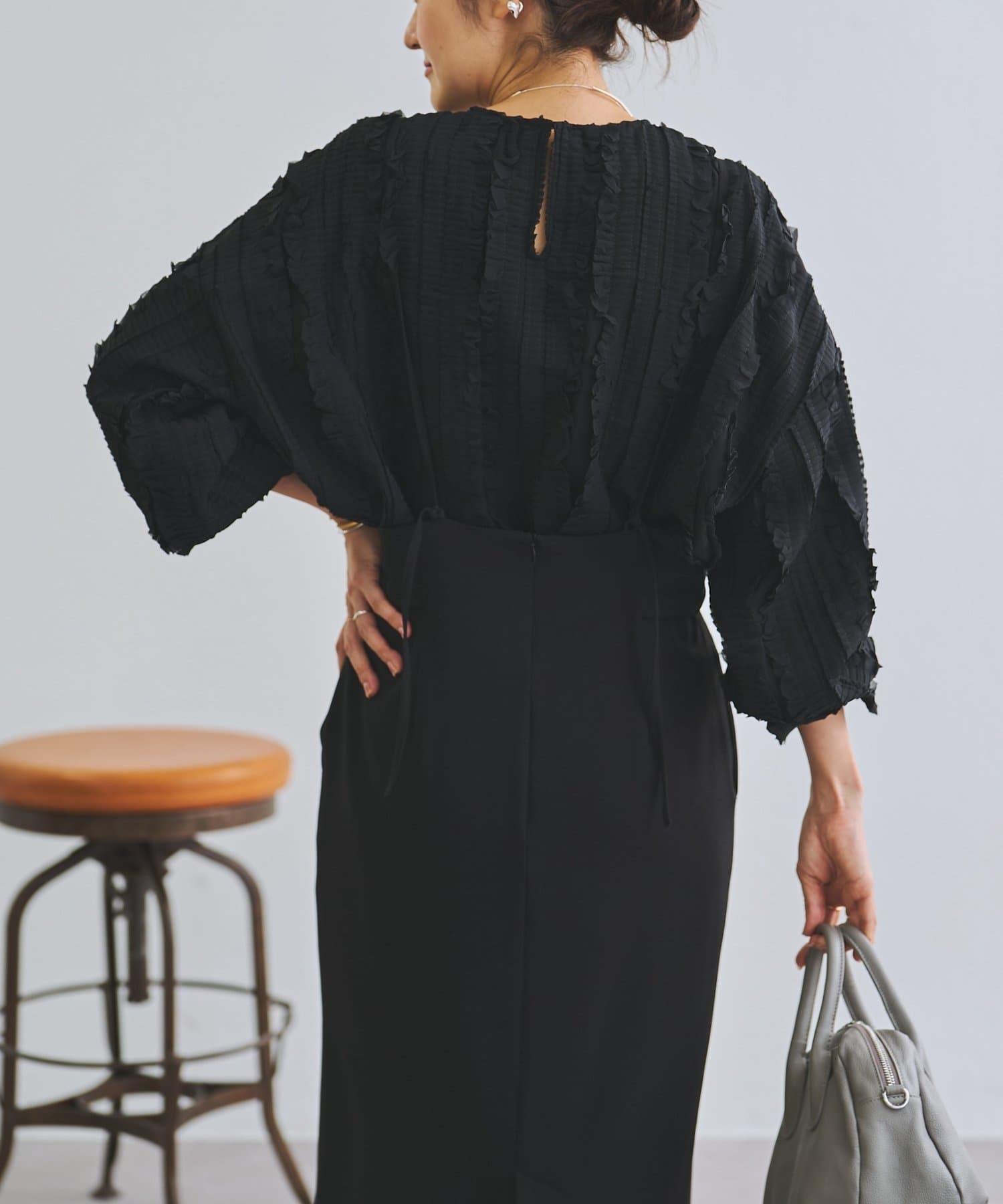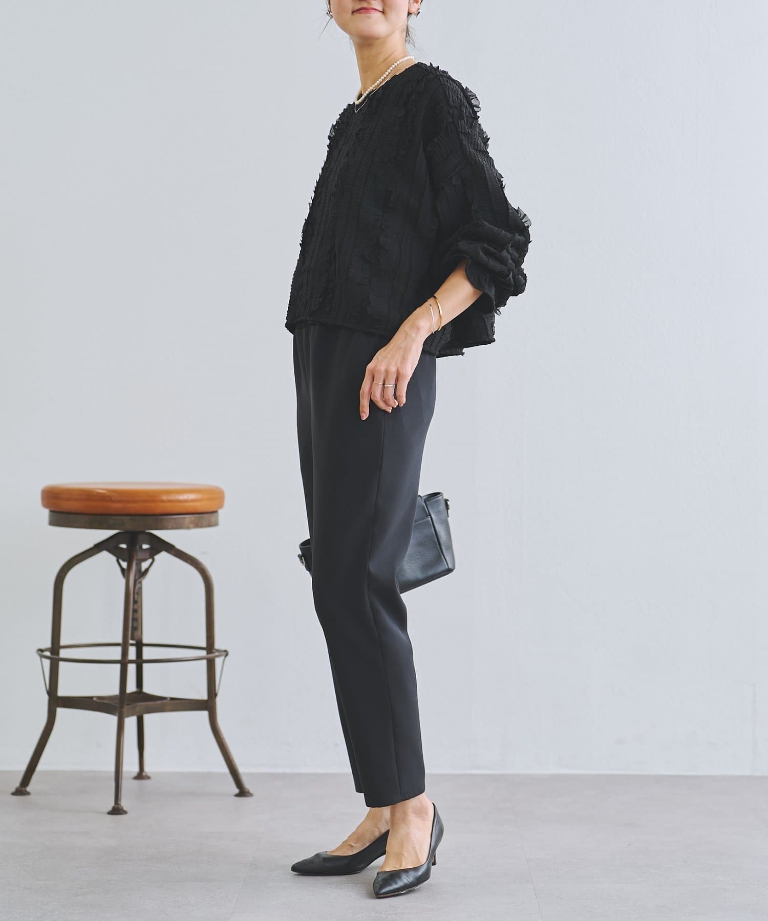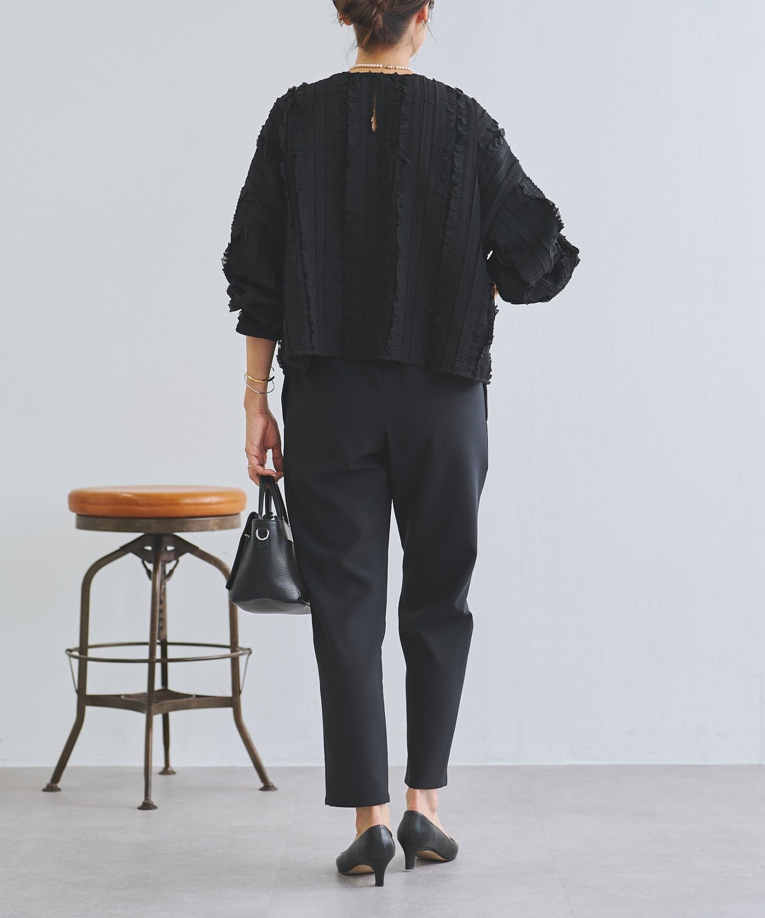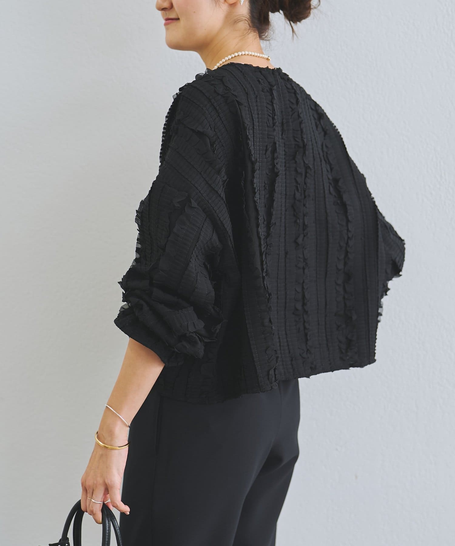 細かなプリーツとフリルを重ねた表情豊かなブラウス。
