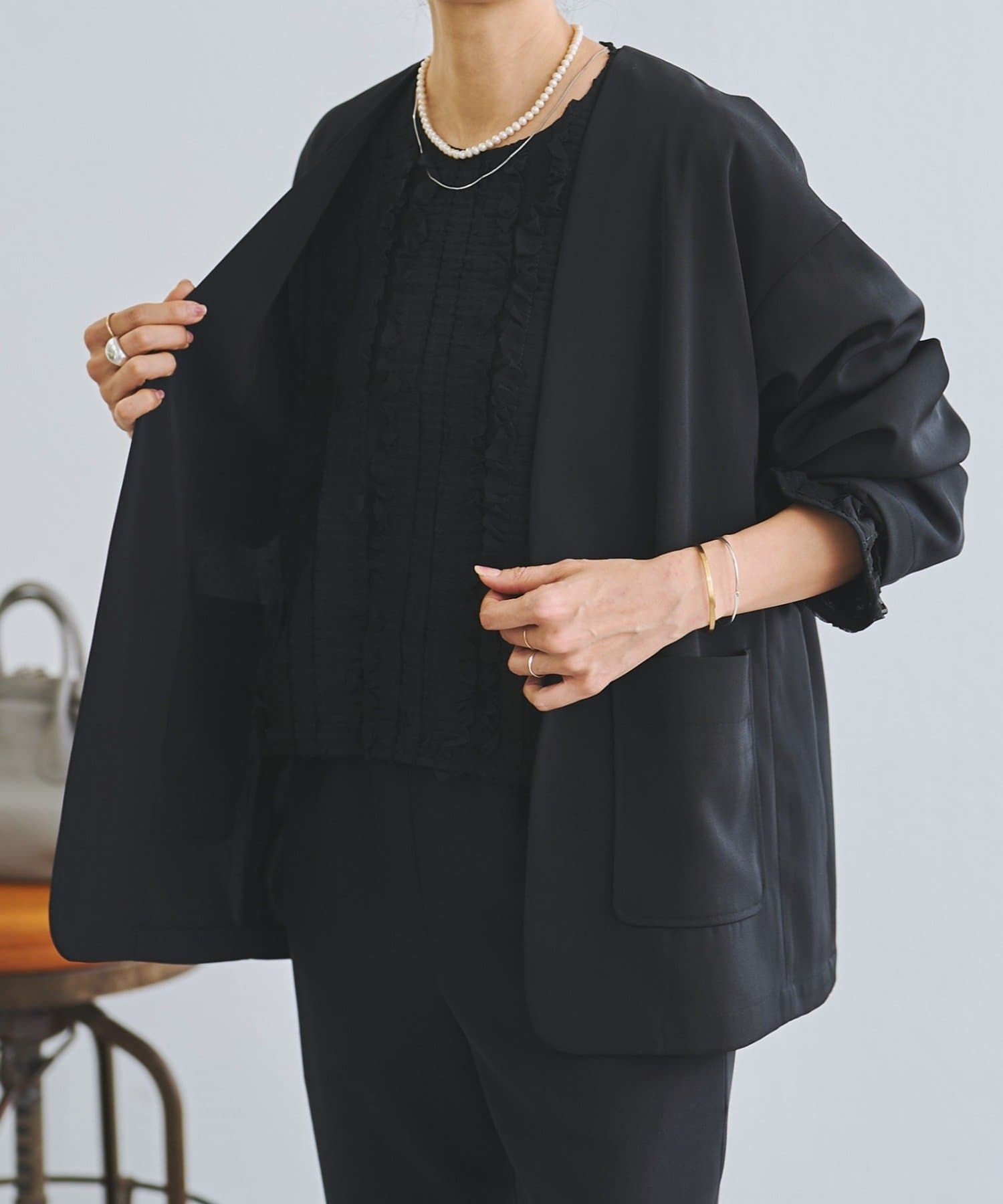 すっきりとした着丈で、ボトムスを選ばずバランスよく着用可能。
