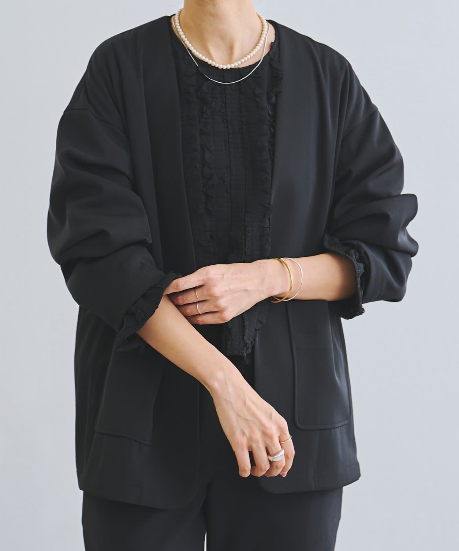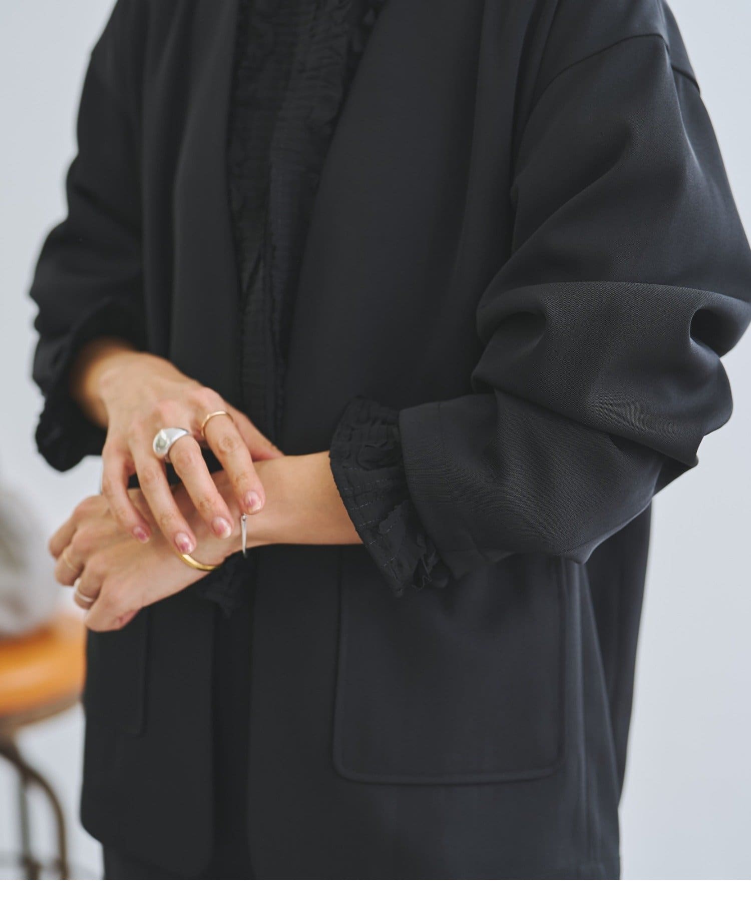 たくし上げやすく、着こなしに合わせて袖のボリューム感を調整できるため、パフスリーブのようなシルエットも楽しめます。