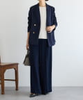 ネイビー×ゴールド、グレー×シルバーのダブルボタンと深みのあるカラーが大人の女性にふさわしいきちんと感をプラス。