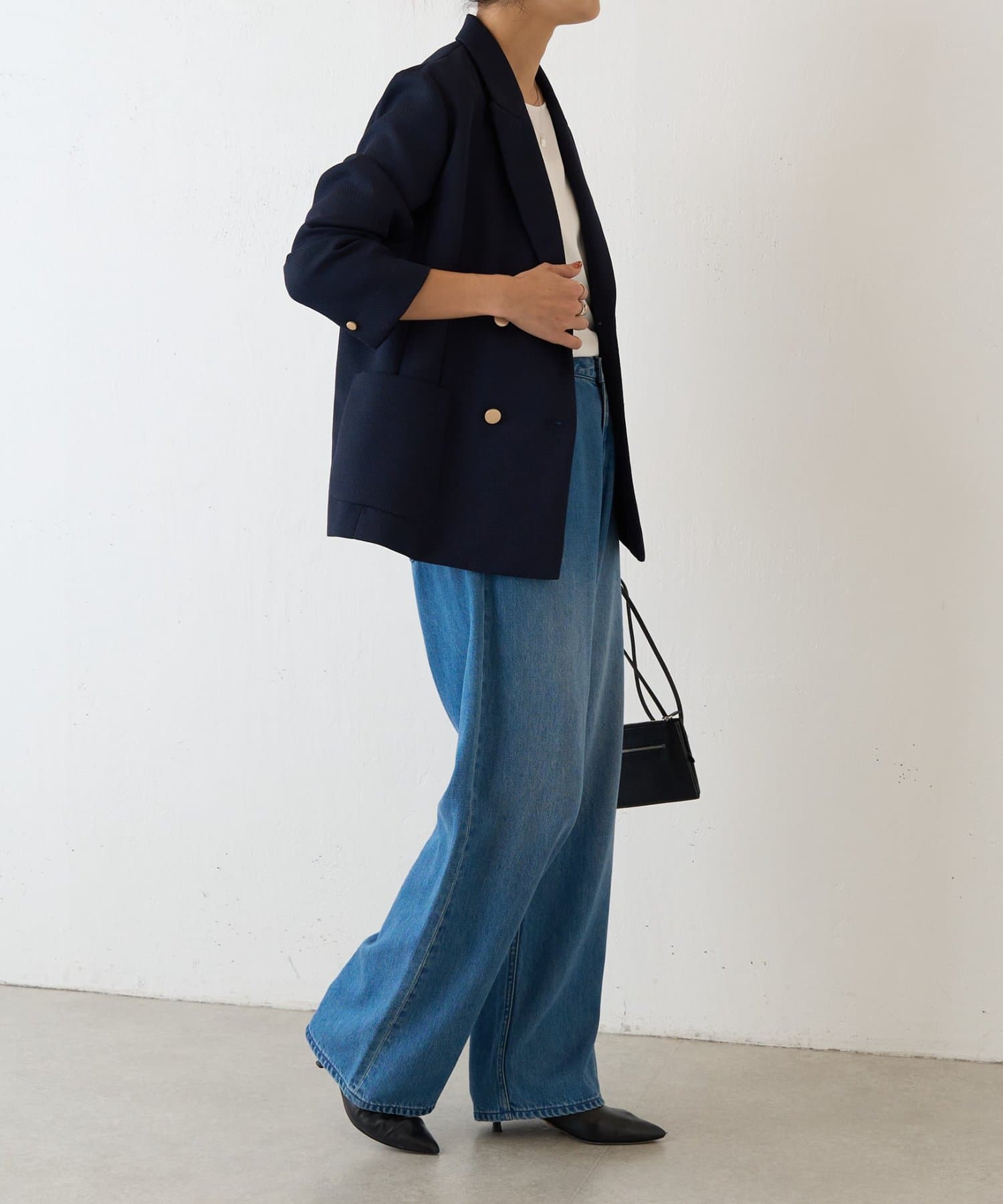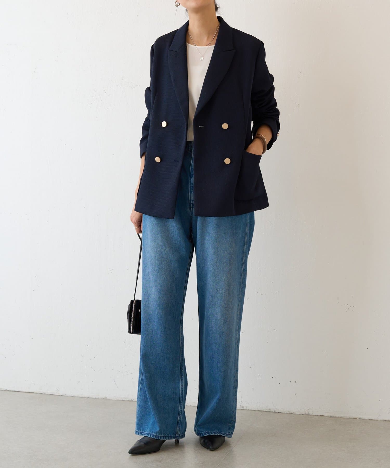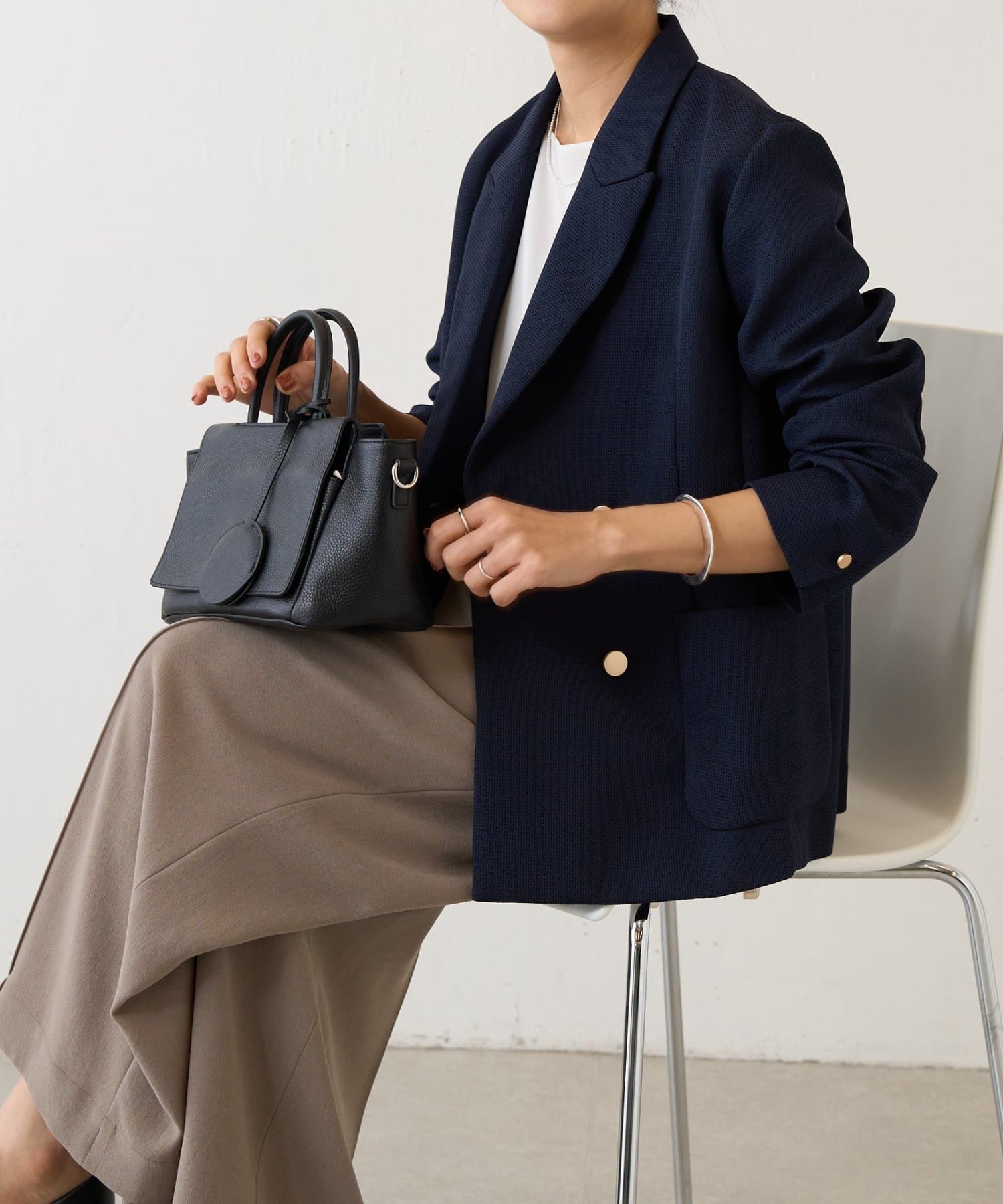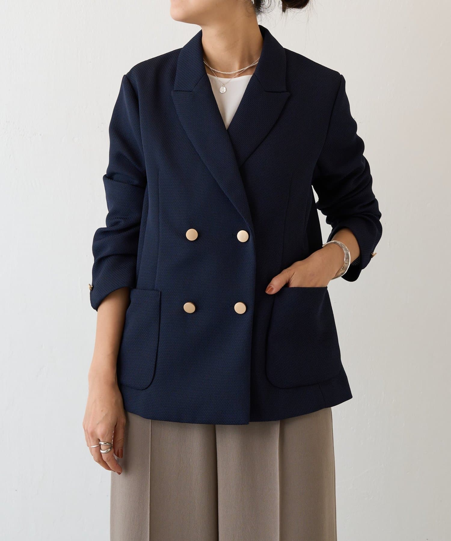 ネイビー×ゴールド、グレー×シルバーのダブルボタンと深みのあるカラーが大人の女性にふさわしいきちんと感をプラス。