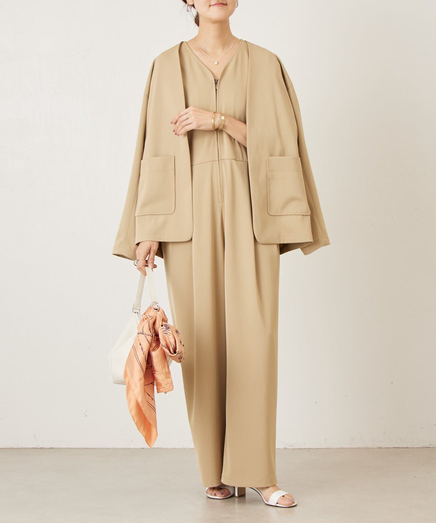 同素材のストレッチツイルオールインワンとセットアップも可能。
