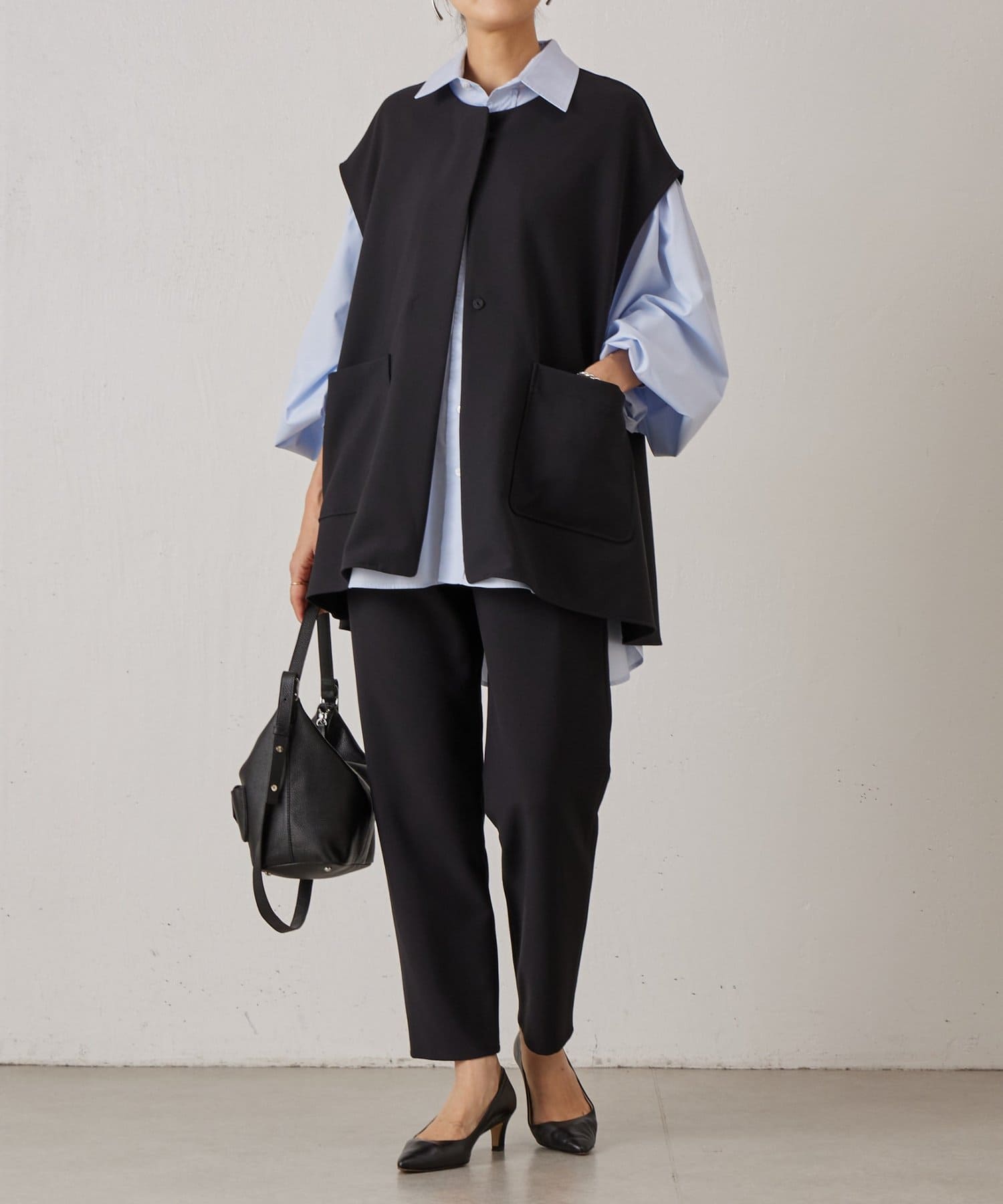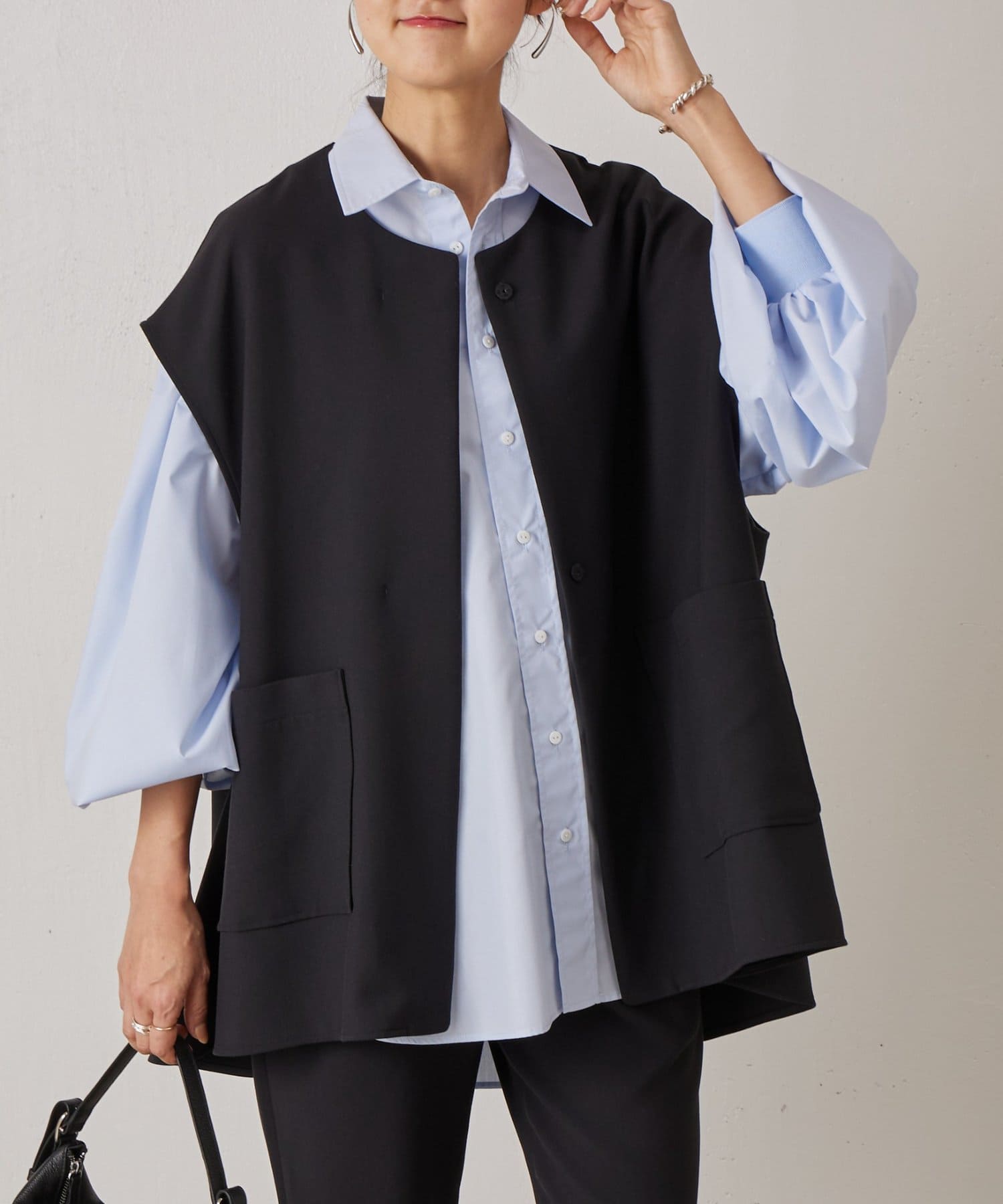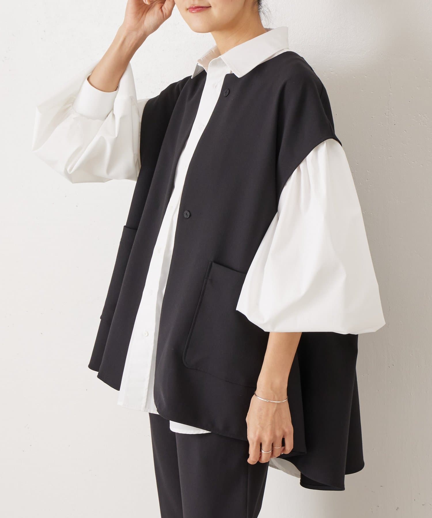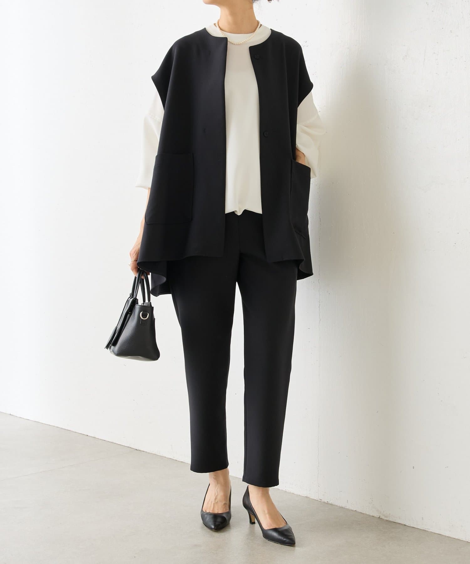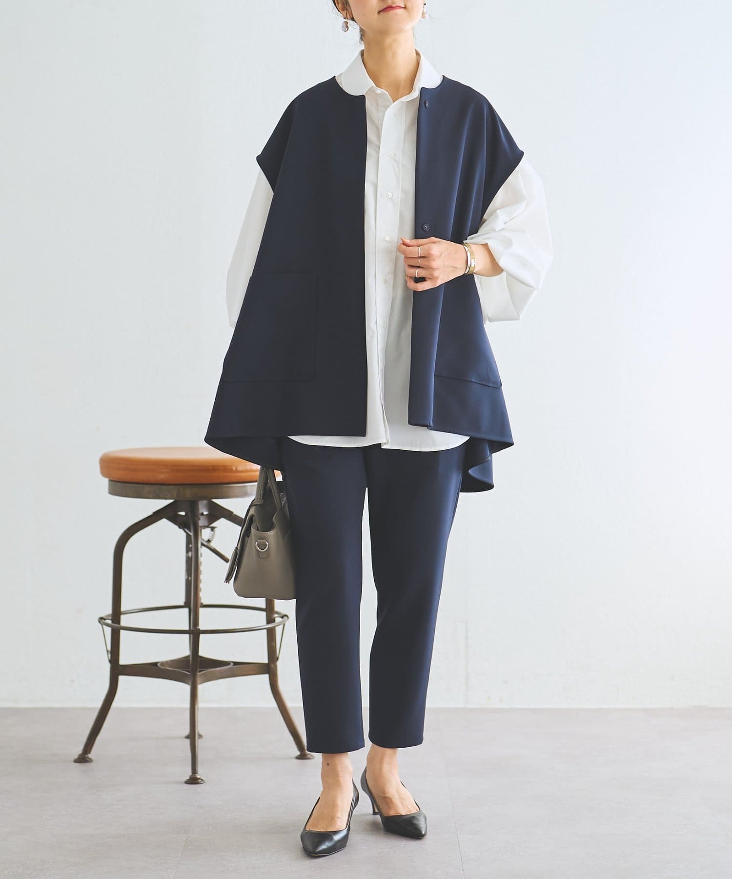 また、デニムやカジュアルなボトムと合わせた抜け感のあるスタイリングも楽しめ、ワードローブに一枚あると頼れる主役ジレです。