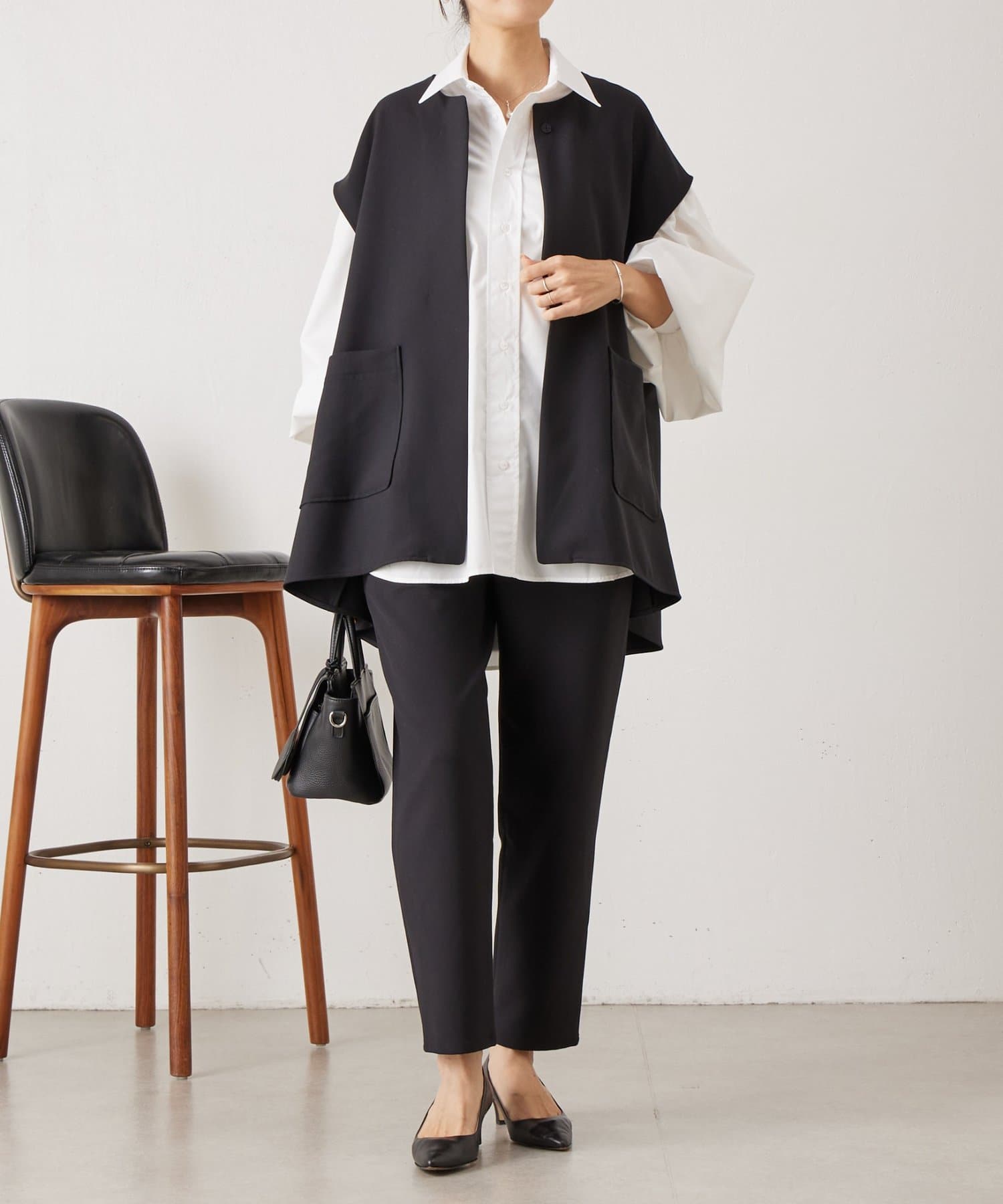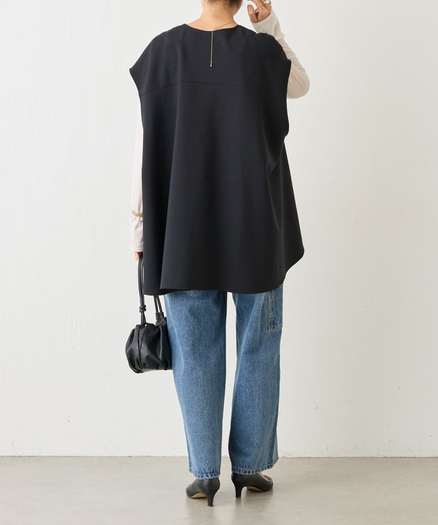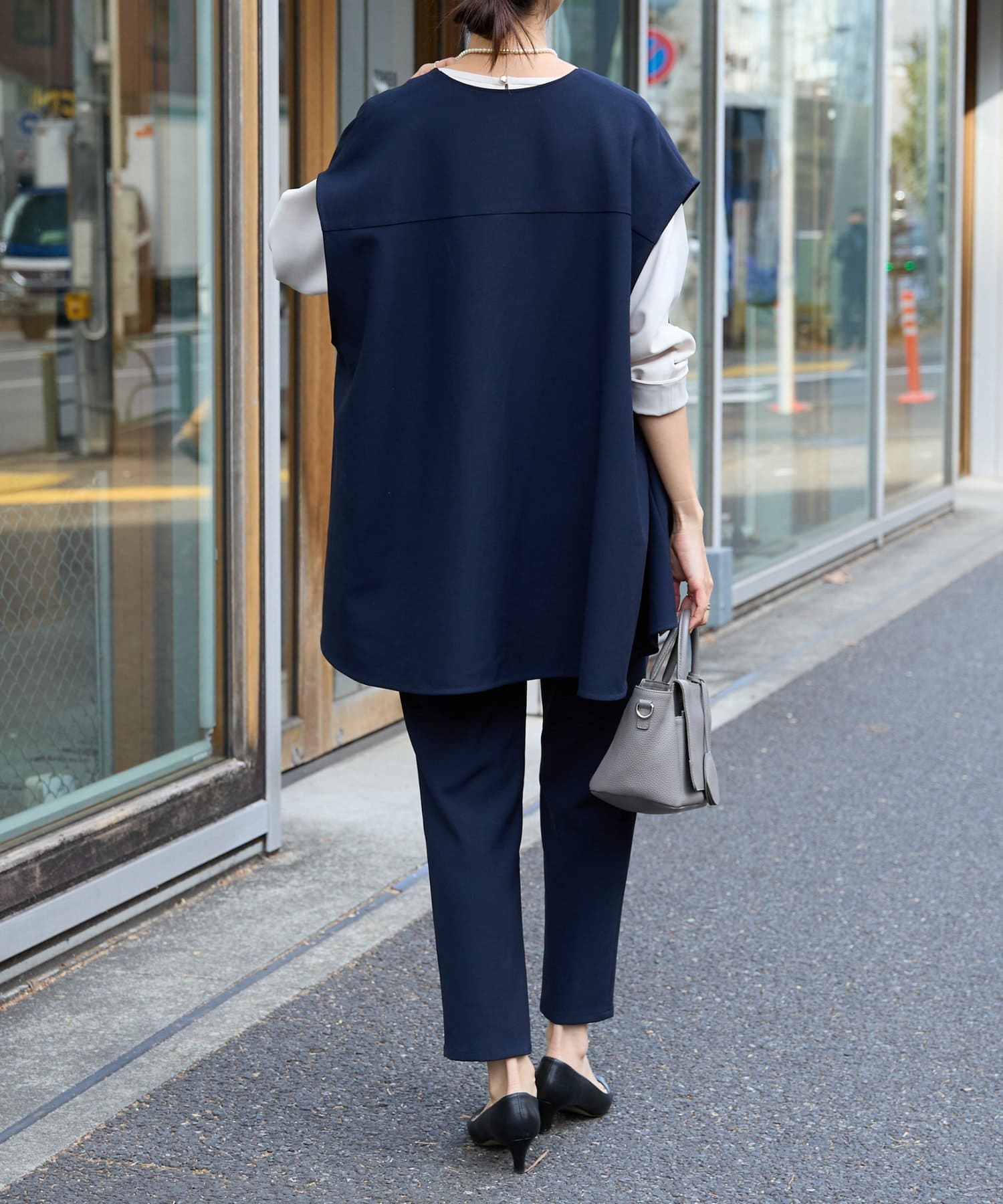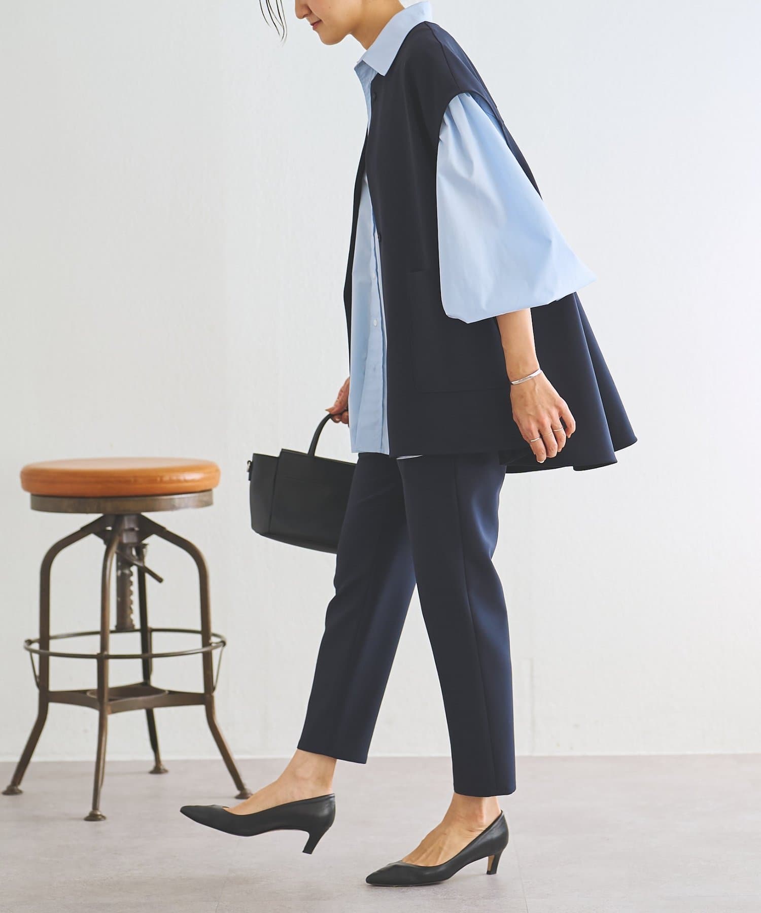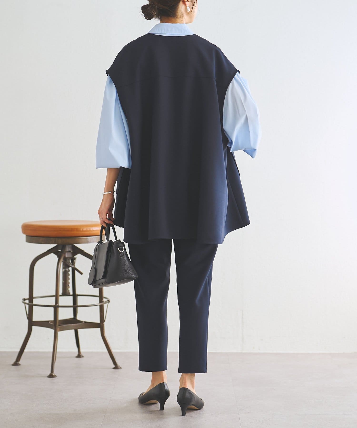 また、デニムやカジュアルなボトムと合わせた抜け感のあるスタイリングも楽しめ、ワードローブに一枚あると頼れる主役ジレです。