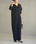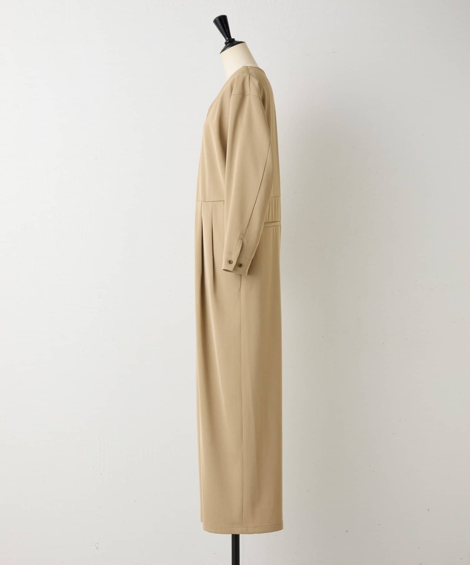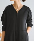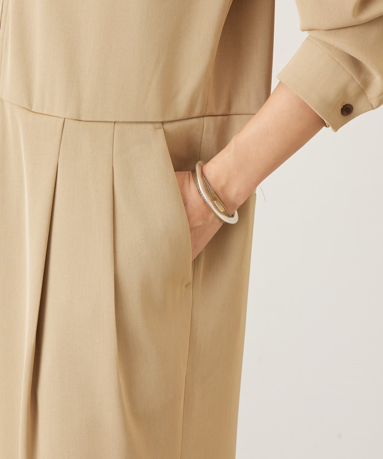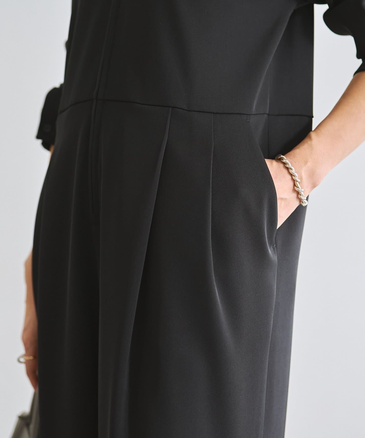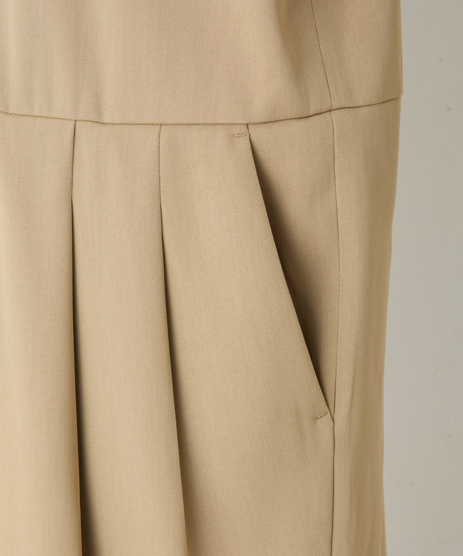 ウエスト切り替えの下にタックを入れることで、気になるお腹まわりをさりげなくカバーしつつ、縦のラインを強調。